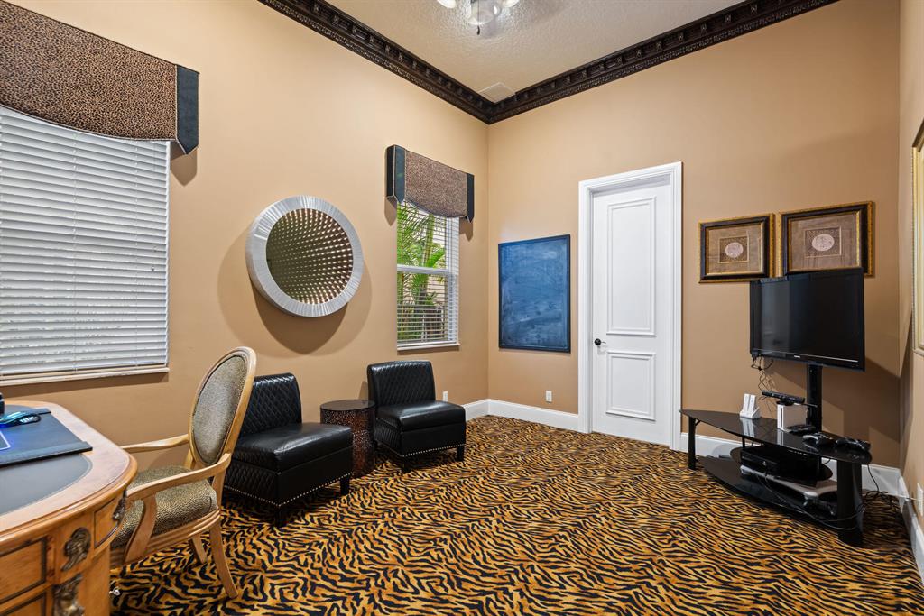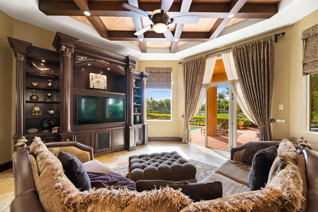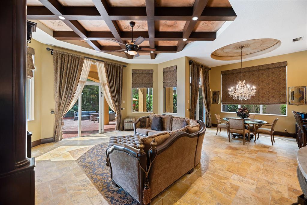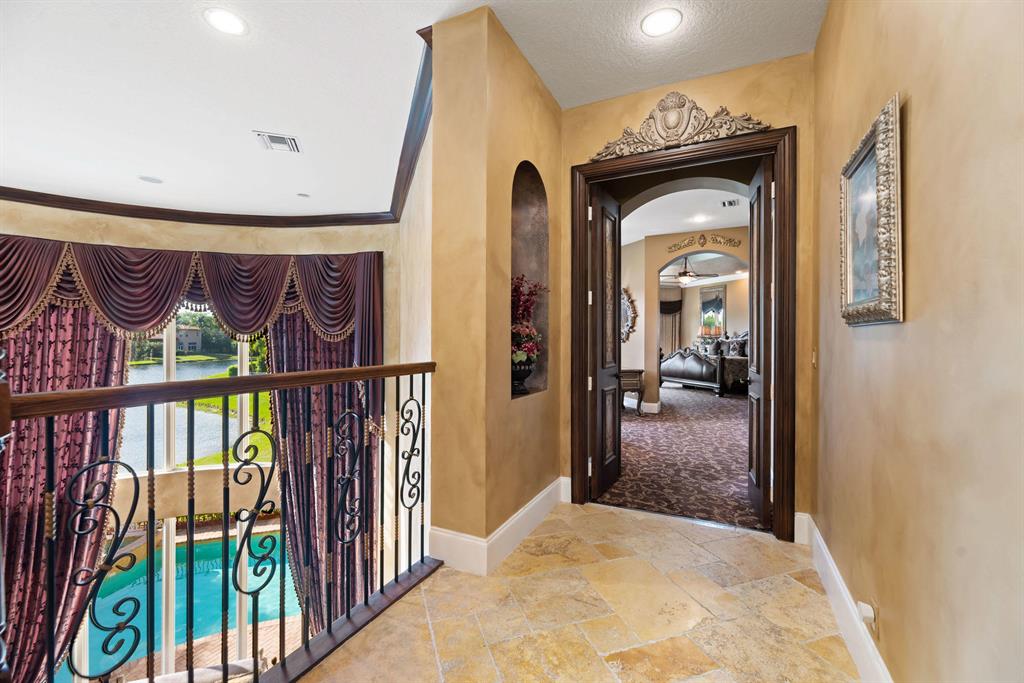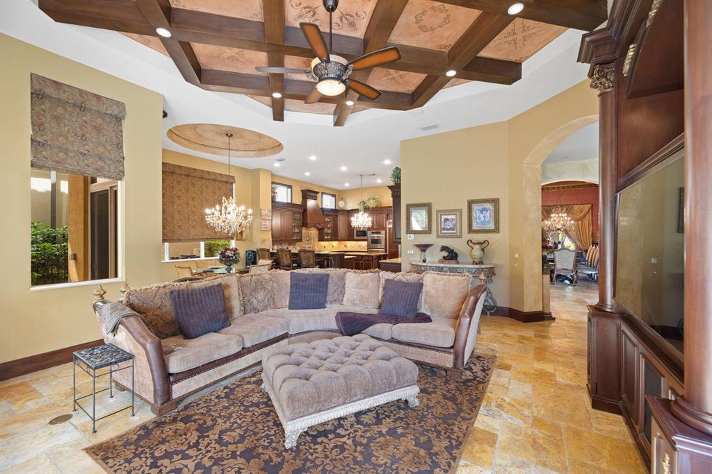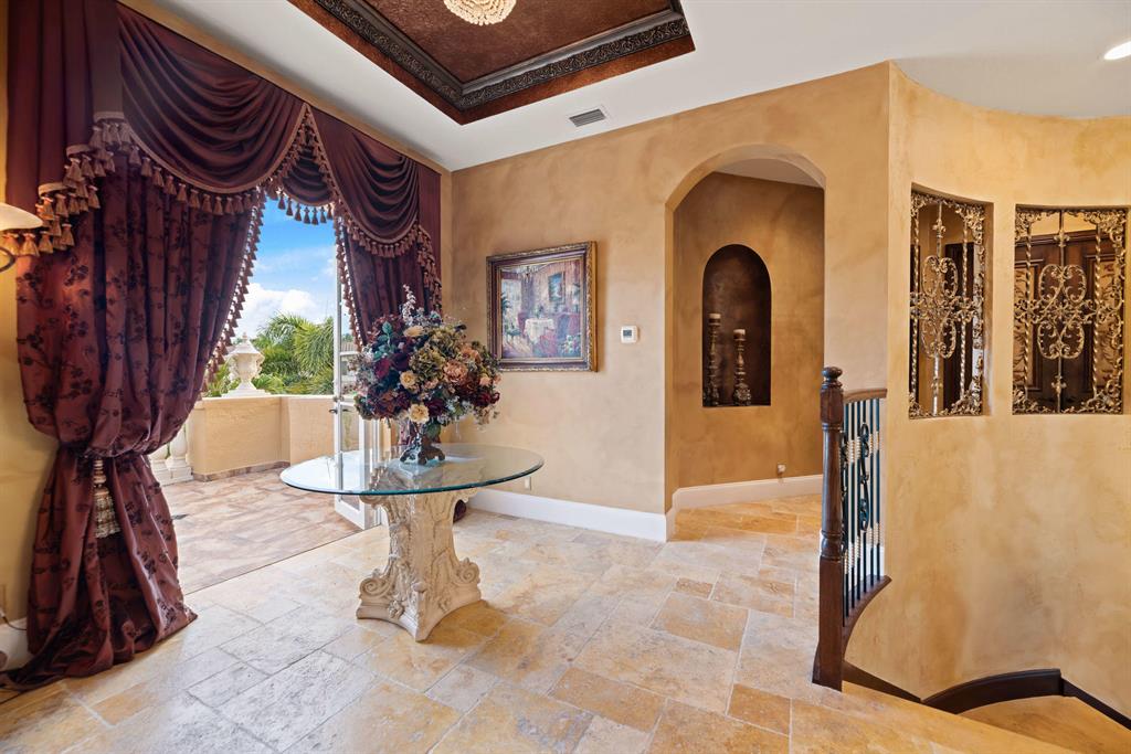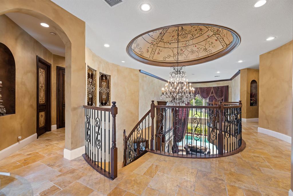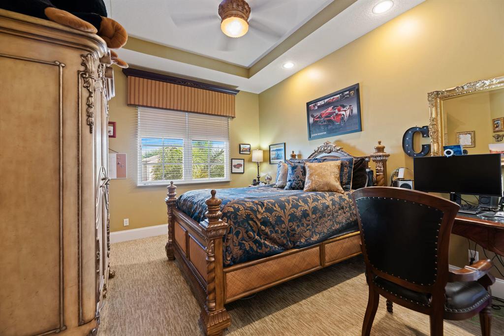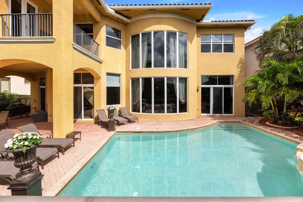 This exquisite waterfront estate awaits you. Situated in one of Boca Raton's most exclusive communities, The Oaks! Built by Gordon Homes in 2006 w/ a well-planned 8,113 total Sq Ft. floorplan and over 6,500 Sq Ft under air. 6 bedrooms + office + a home theatre & 6.2 baths. Upgrades include: Full hurricane impact glass protection, custom built-ins & finishes, Jerusalem marble floors throughout w/ the exception of the bedrooms which are carpeted, & stereo surround sound. Downstairs: 2 bedrooms + a stunning office w/ custom built-ins overlooking the tranquil setting of the beautiful pool & lake.Just off the spacious kitchen & formal dining, there's a beautiful wet bar w/ small SubZero fridge. Elevator ready! Upstairs, the spacious & elegant master suite with a separate sitting area, private