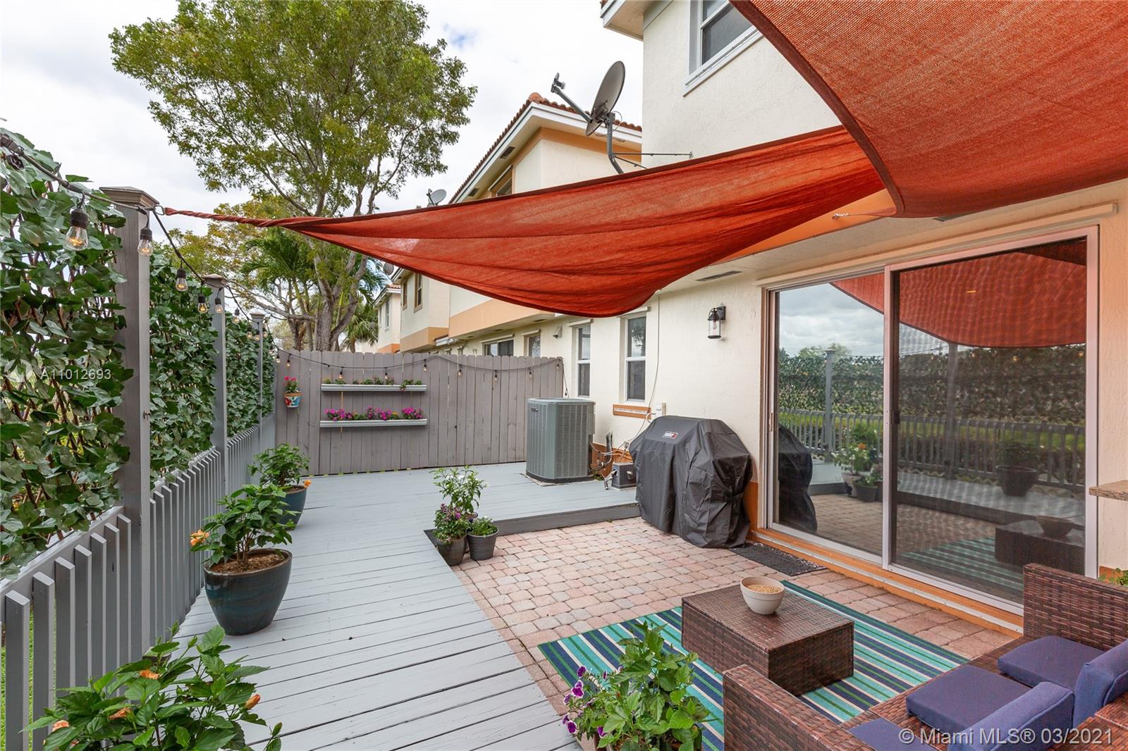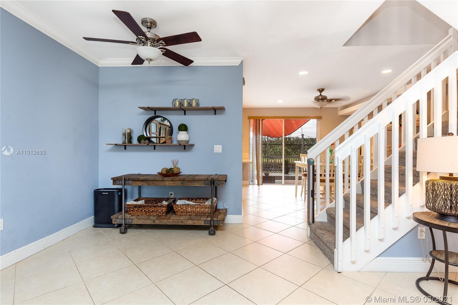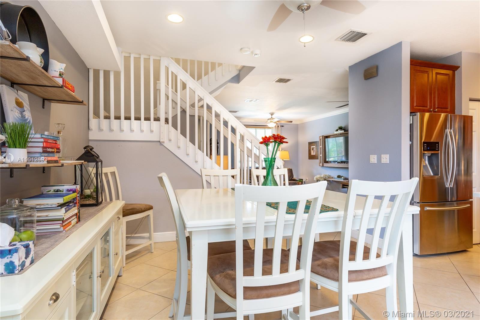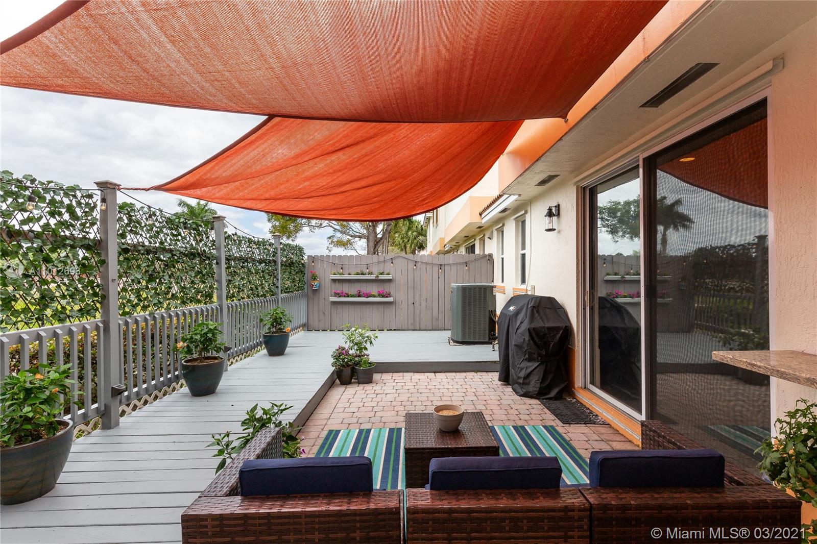 Beautiful 3 bedroom 2.5 bathroom townhouse in Davie! This home is in move in ready condition featuring high ceilings, charming private fenced in patio, tile & wood vinyl floors, updated kitchen with quartz countertops, SS appliances including a double oven & french door fridge, pantry, updated bathrooms, master bedroom with bathroom, dual sinks & walk in custom closets, laundry room with storage & laundry tub, large living & dining, attic, 1 car garage with work space built ins & rec room. The property is located in Davie and close to great schools, dining, shopping & entertainment. The home is priced to sell and easy to show.