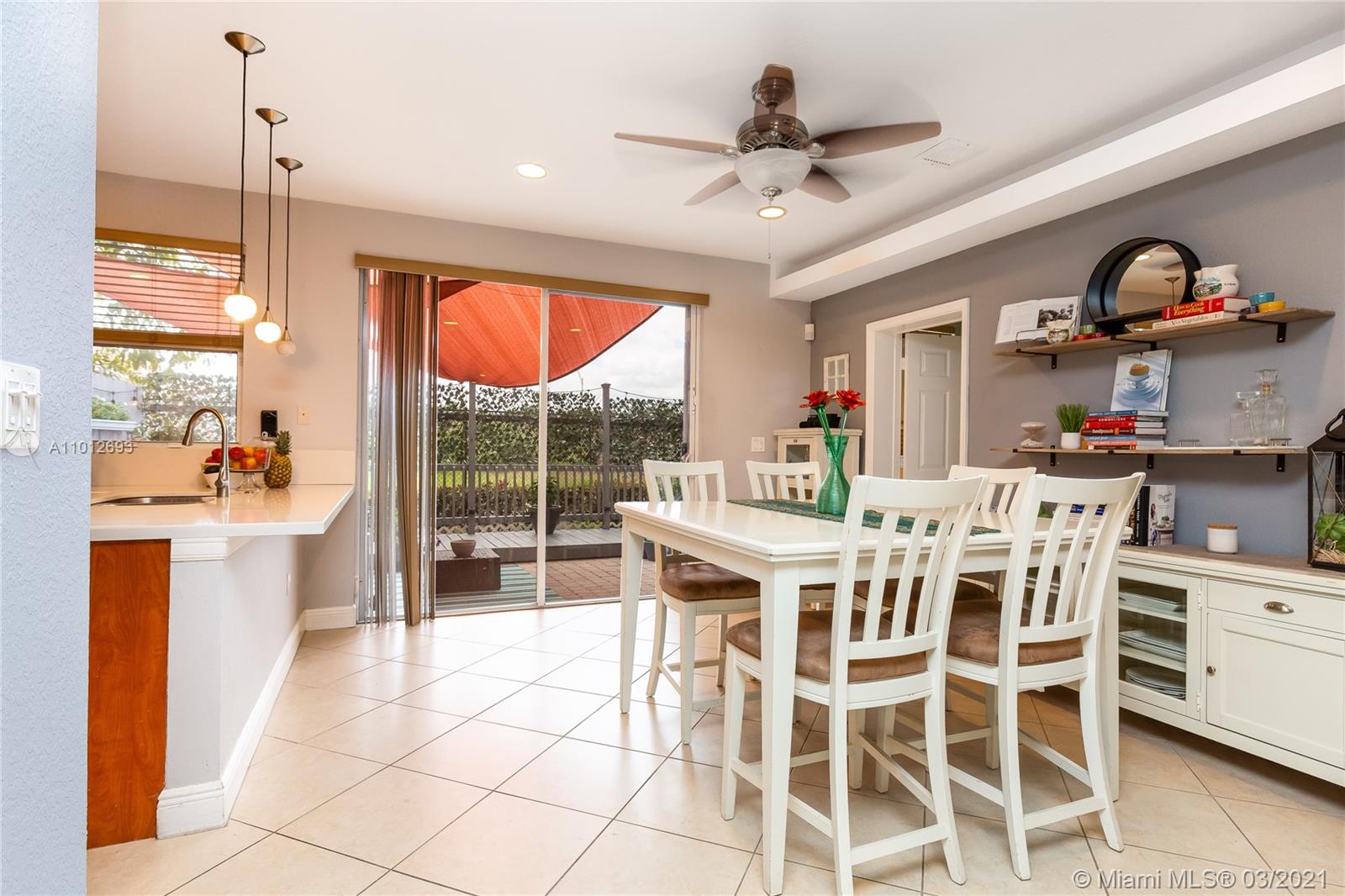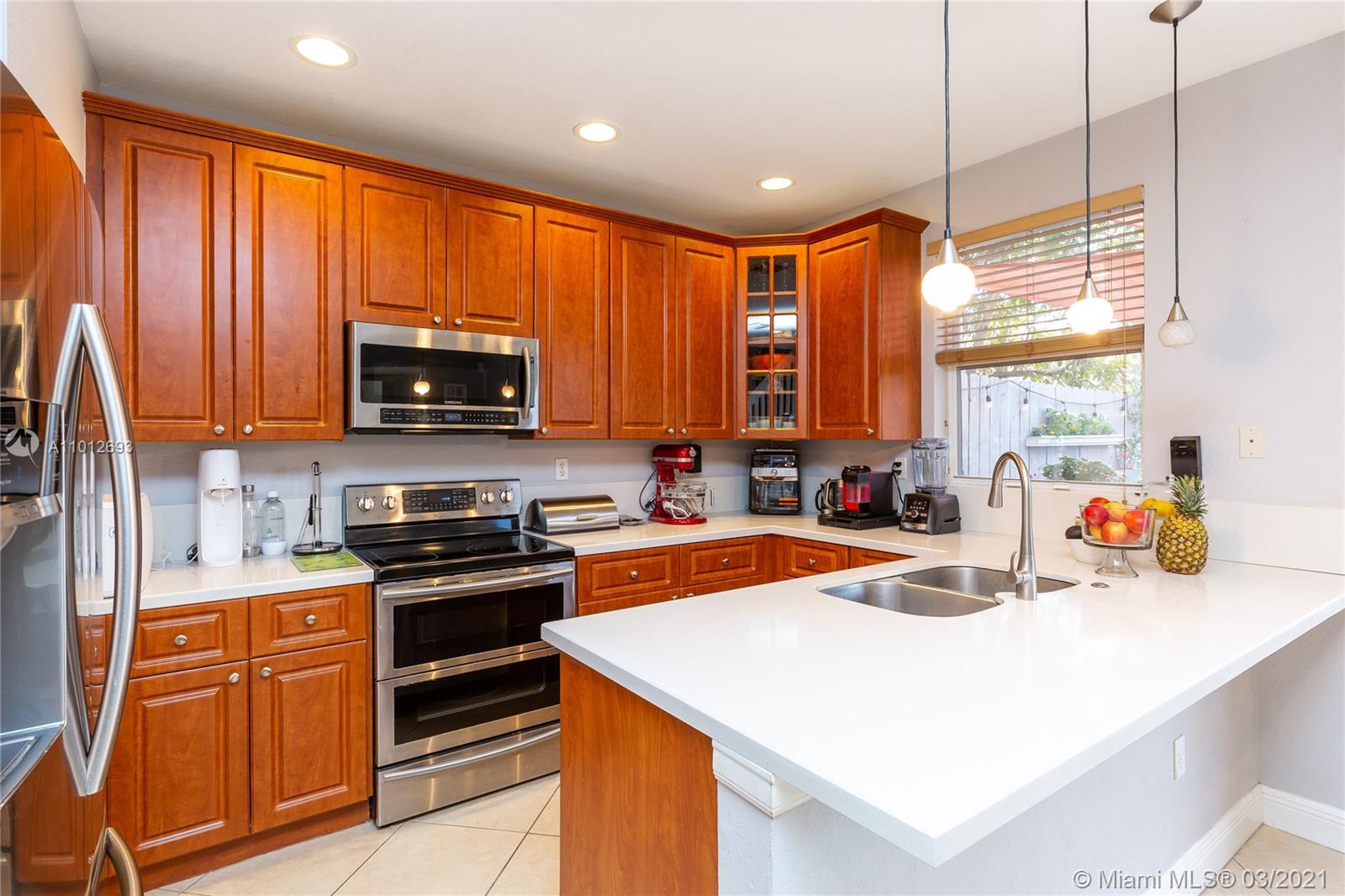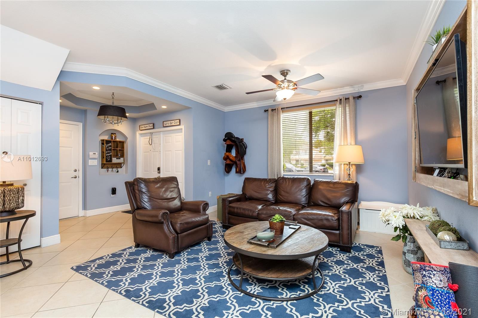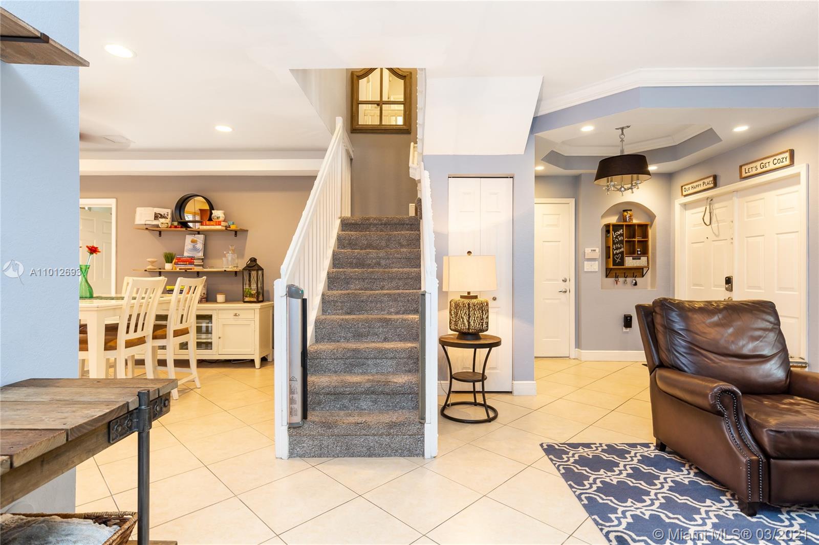 Beautiful 3 bedroom 2.5 bathroom townhouse in Davie! This home is in move in ready condition featuring high ceilings, charming private fenced in patio, tile & wood vinyl floors, updated kitchen with quartz countertops, SS appliances including a double oven & french door fridge, pantry, updated bathrooms, master bedroom with bathroom, dual sinks & walk in custom closets, laundry room with storage & laundry tub, large living & dining, attic, 1 car garage with work space built ins & rec room. The property is located in Davie and close to great schools, dining, shopping & entertainment. The home is priced to sell and easy to show.