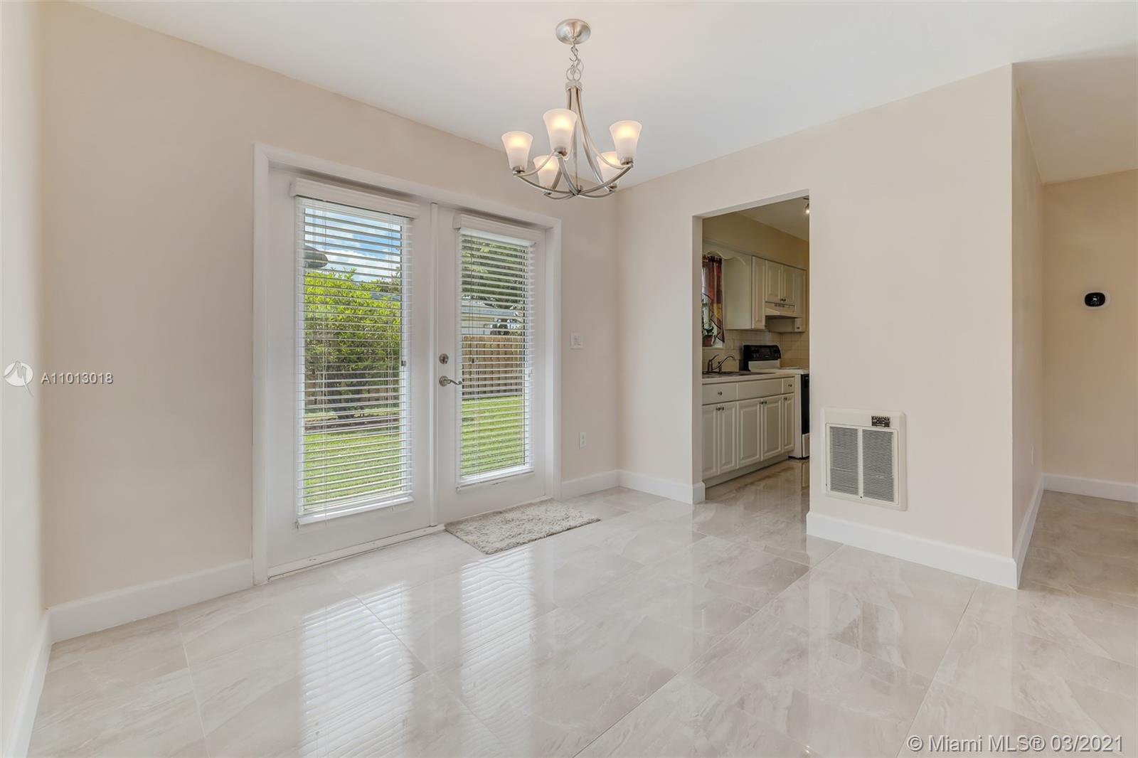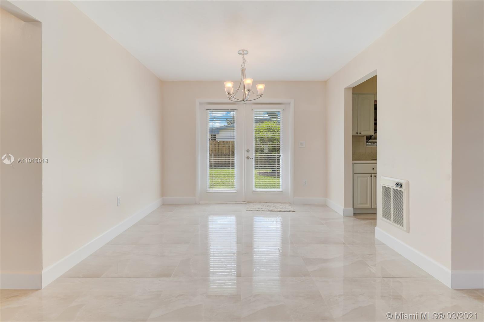 Beautiful starter home, 2 Bedrooms 1 Bath 1 car garage, corner lot, with a New Roof, New Porcelain Tile Throughout, Remodeled Bathroom, Updated Kitchen and freshly painted. Impact French doors that open to the back yard that has 6' wood privacy fence with plenty of room for family gatherings or add a pool.