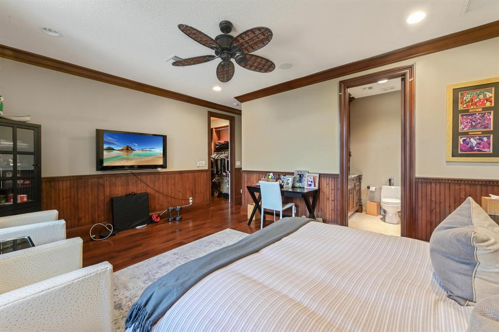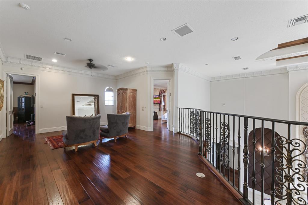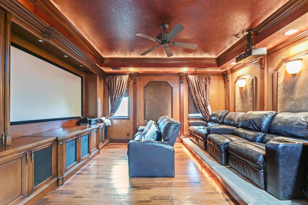 Stunning transitional inspired estate situated on prime corner lot! The desirable open floor plan features expansive living space along with 5 large bedrooms and 5 full baths/2 half baths plus office + media room. This home features beautiful travertine marble floors along with elegant hardwood. The oversized white chefs kitchen has been recently updated with large island and quartz counter tops. Enjoy your favorite movies from the top of the line theatre with custom seating and bar. This home features a full home generator and brand new impact windows are included. Step outside and enjoy the tranquil, private backyard with oversized pool and custom water feature. Amazing Opportunity! The oaks features a stunning newly renovated 25,000 square foot clubhouse with amazing amenities