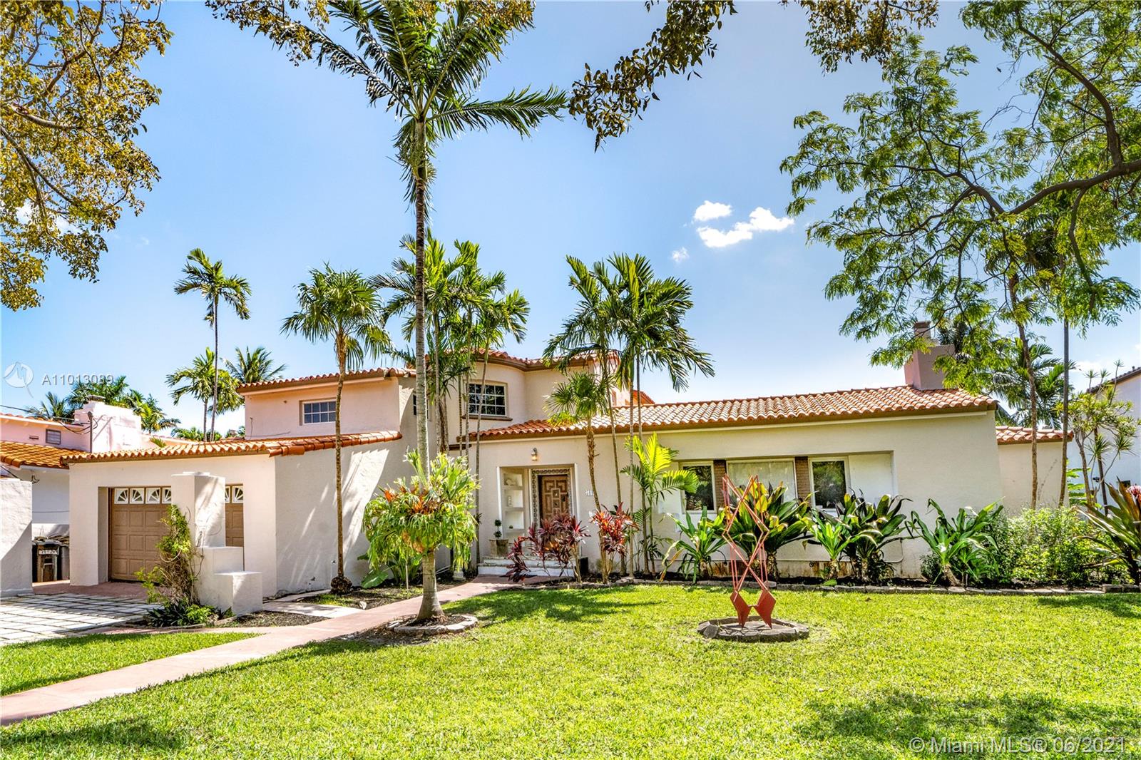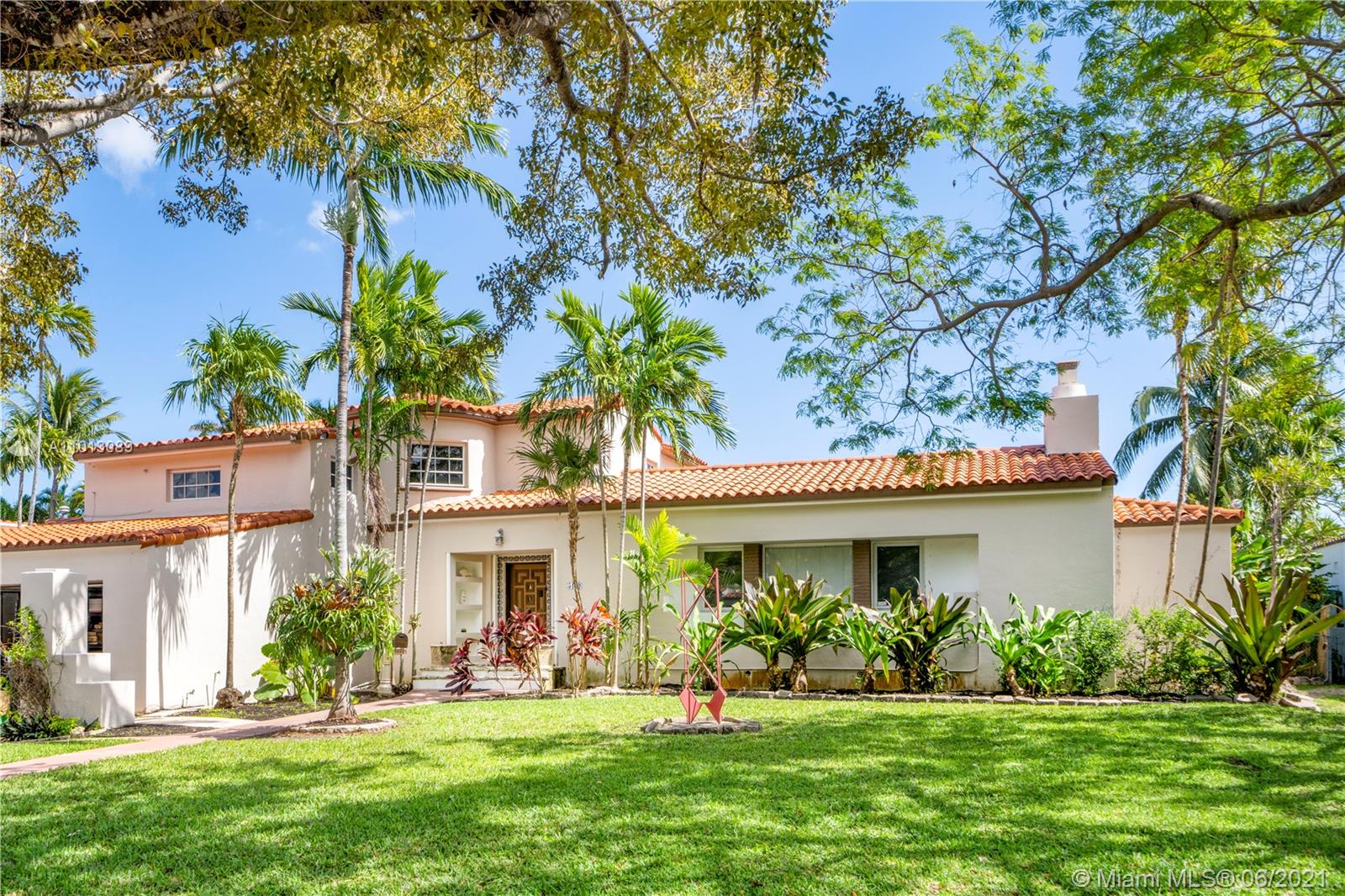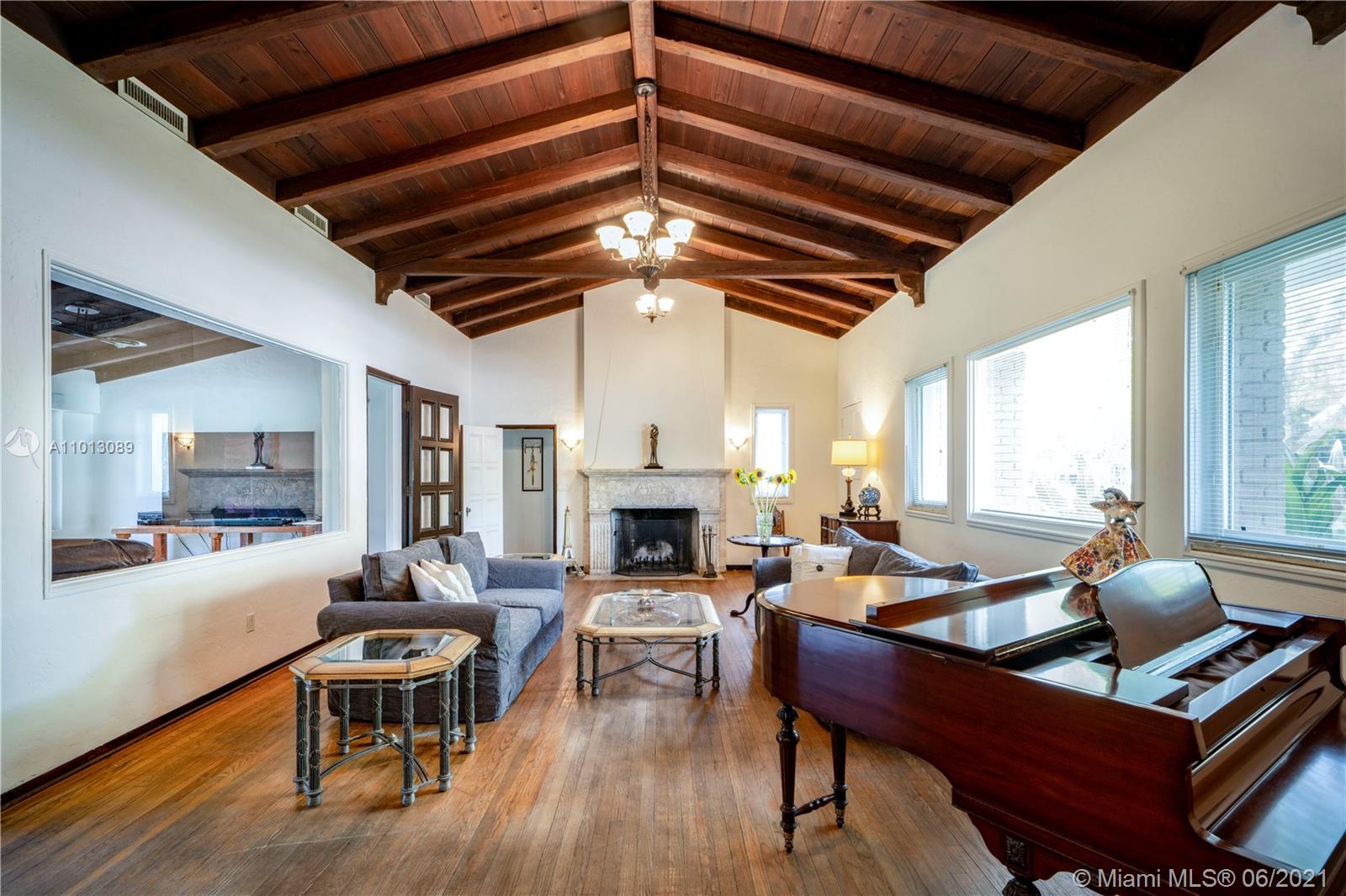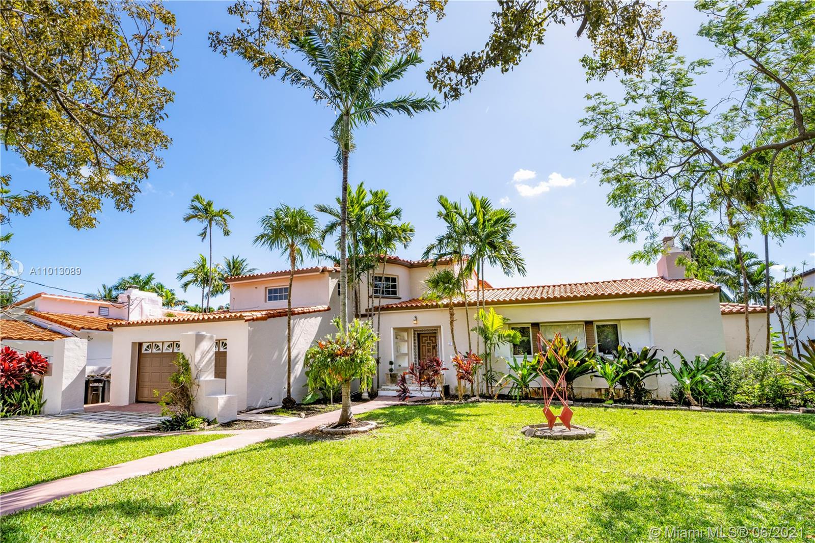 An iconic Mediterranean Revival residence by famed Miami architect Carlos B. Schoeppl. Proudly situated on an expansive double 15,600 SF lot in the heart of Miami Beach, this classic home flaunts superb craftsmanship & bright, spacious interiors. Appreciate the charm of an elegant rotunda staircase entry & grand living room w/ soaring cathedral ceilings & coral stone fireplace. Spacious gas kitchen complimented by huge pantry w/ double refrigerators. Main house boasts a friendly 3 bedroom up/2 down floor plan, with additional guest cottage offering more space. Surrounding grounds are a tropical paradise w/ lush landscaping, sprawling green space & patio/pergola. Nestled just off La Gorce Country Club, this address is a golden opportunity to restore/create your own Mid-Beach masterpiece.