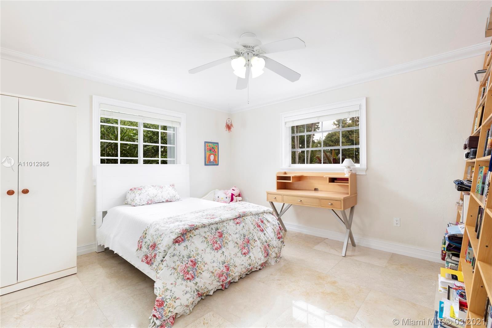 Best opportunity in Pinecrest under $1 million. Updated and move-in ready on a quiet one-way street. Marble floors, crown moldings and baseboards throughout. Recessed lighting. Large eat-in kitchen and adjacent family room. Formal dining room. Spacious master suite with walk-in closet and French doors that opens to the pool and terrace. Newer a/c. Laundry room. Great backyard, covered terrace and pool on a lushly landscaped 17,293 SF corner lot with beautiful oak and palm trees. 2-car garage. Municipal/city water. Circular driveway with pavers. Walk to Palmetto elementary & middle schools. **Showings by open house on Thursday March 18th and Friday March 19th from 11-2 with all offers due by 2pm Saturday March 20th.