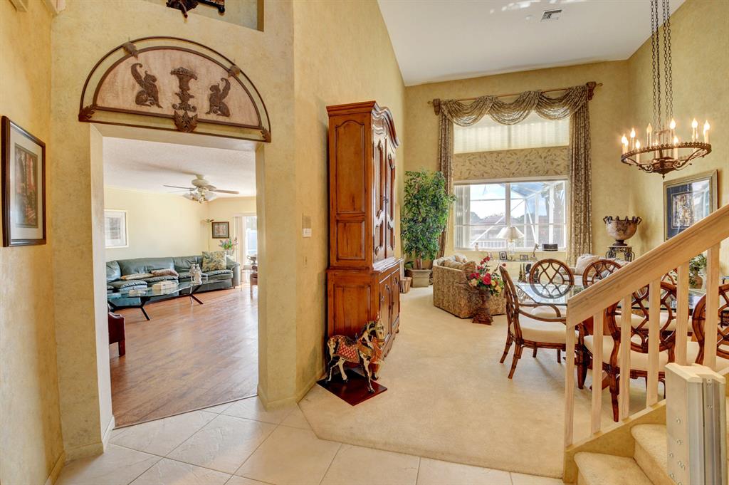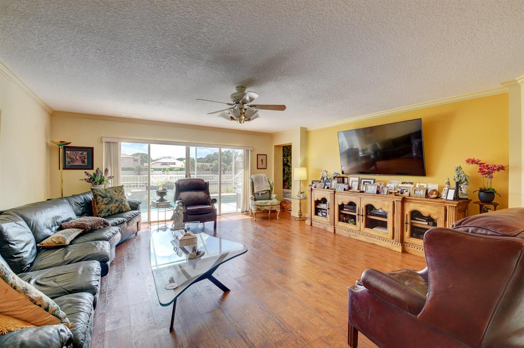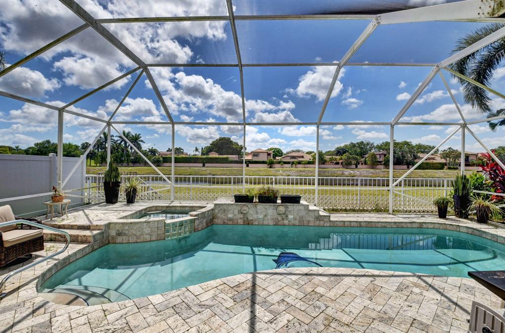 Two story single family home with 4 bedrooms, 3.5 baths and private pool! Great floor plan with the master bedroom downstairs and 3 bedrooms plus loft upstairs. Formal living and dining room plus a nice size family room off kitchen. Kitchen updated with granite counters, wood cabinets and stainless appliances. Master bath updated with raised tub, updated cabinetry and walk in shower. Laundry room has a large storage closet. Beautiful paver patio area with pool and spa, screen enclosed and canal views with southern exposure. Other features include accordion hurricane shutters, crown moldings, laminate floors in family room, knock down finish on walls and ceiling, water filtration system, plus private bath in 4th bedroom. Great community with subdivision pool.