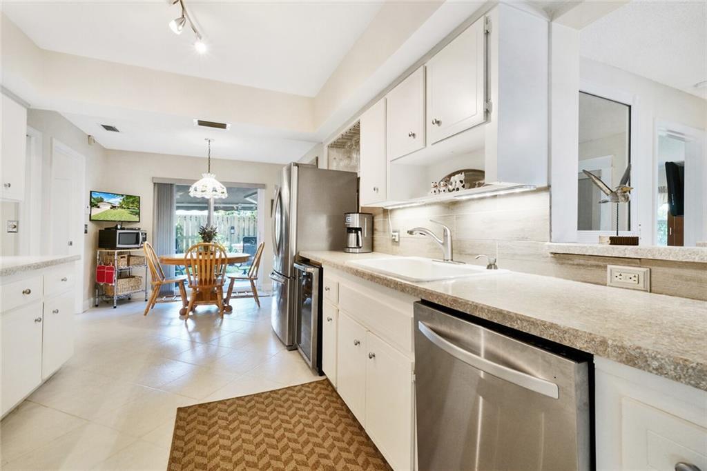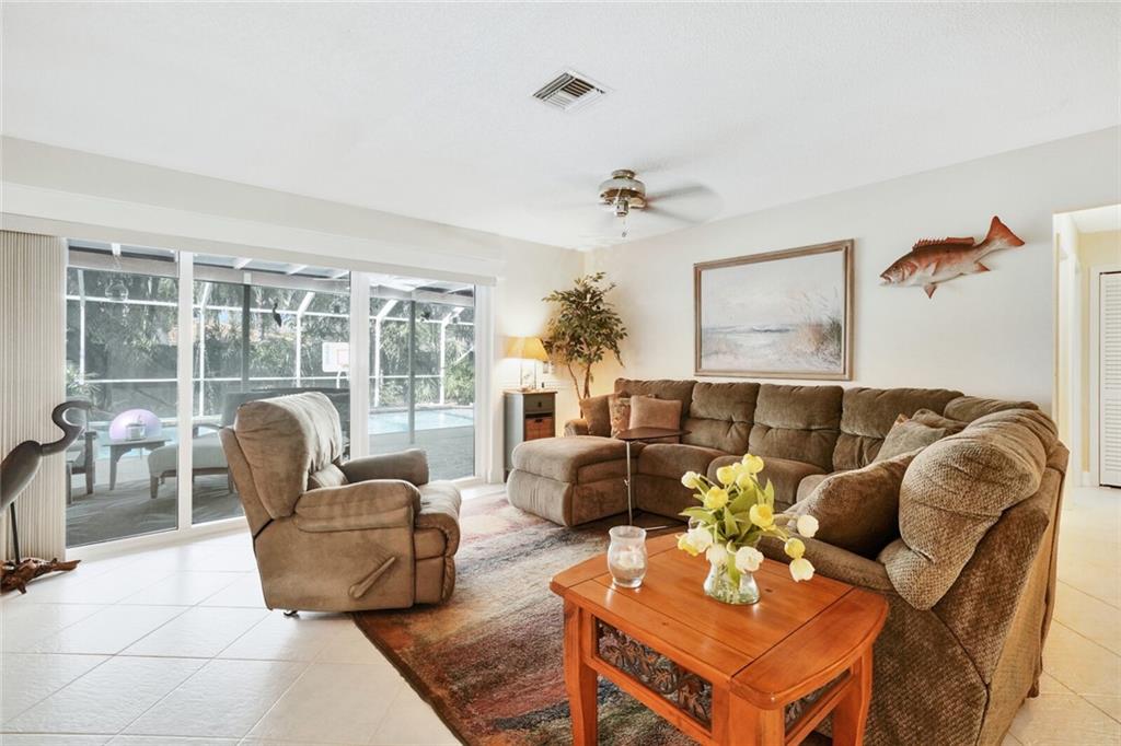 Amazing home in RED HOT Ramblewood neighborhood! Corner lot on over 1/3 acre, extra paver parking on the side for guests. Beautiful paver brick driveway leads to your impact-rated front door that lets in tons of natural light. Wide open floor plan for modern living. Built in wet-bar is great for entertaining. Split bedroom plan! Master bedroom features XL walk-in closet and built in reading nook w/ extra storage. Both bathrooms recently updated - 2nd bathroom is a convenient cabana bath. Screened in pool area in your very private backyard overlooks lush, mature, tropical landscaping. All IMPACT WINDOWS & DOORS including the garage door! Extra paver brick sitting area off the kitchen overlooks the fountain & is great for morning coffee or evening cocktails. Don't sleep on this one!