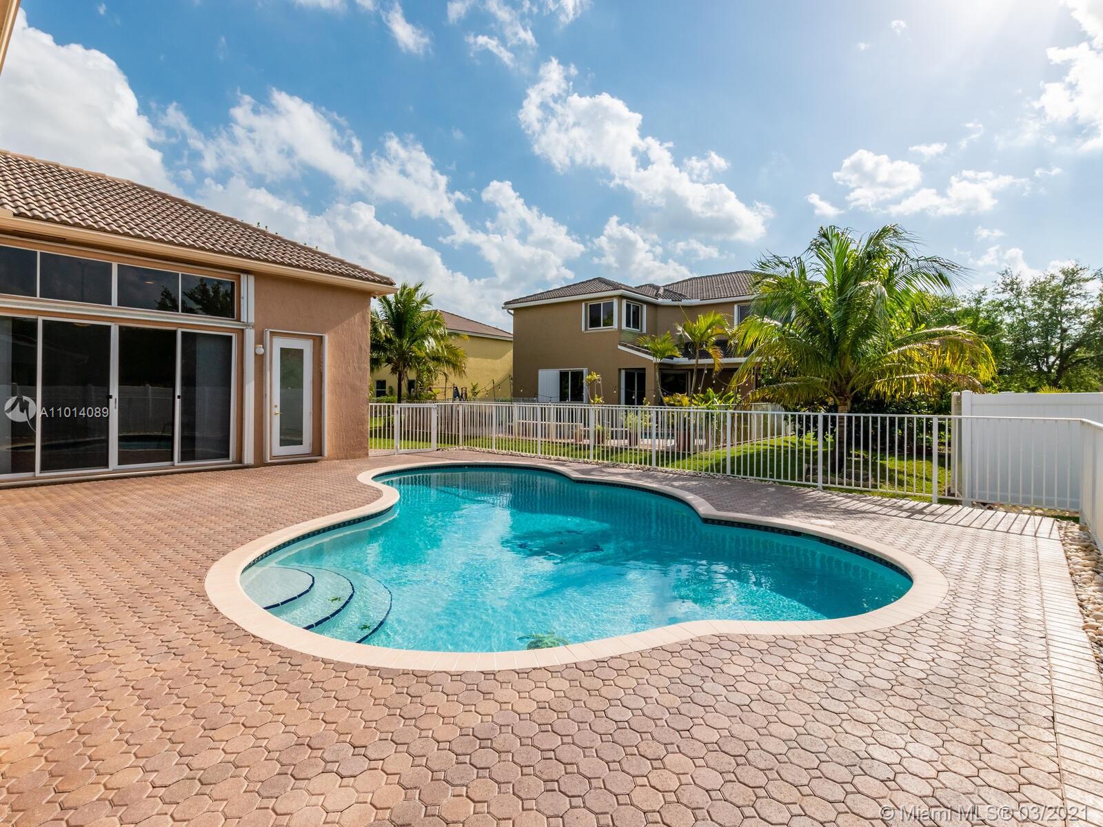 Welcome Home! This exquisite Estates of Pembroke Shores home is located in the heart of Pembroke Pines and boasts 4 bedrooms, 3 full baths and a 3-car garage. The kitchen is fit for a chef with an island and newer stainless-steel appliances. There is a new ac, new water heater, rain gutters, accordion shutters, custom closets in the master bedroom and garage, 7 exterior and 2 interior cameras and security system, and a manned guard gate brings the safety home. The covered patio along with pool makes it perfect for entertaining and enjoying the best of South Florida. The home has had a Four Point Pre-Inspection with Wind Mitigation by Max Home Inspection. Conveniently located near the Shoppes of Pembroke Gardens, Whole Foods, 1-75 and amazing schools. This home is ideal for any family.