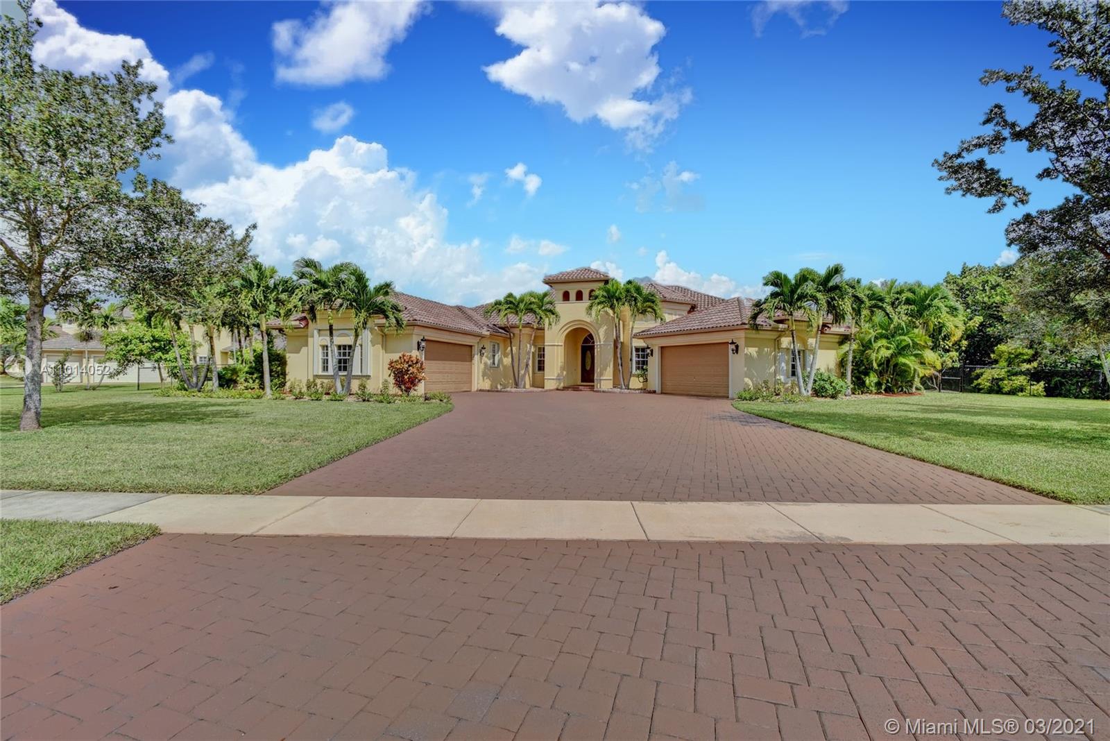 Sumptuous Lake Front State Home w one of kind Mediterranean design located in Rock Creek Ranches that offers the peaceful lifestyle that is unique to the township of Davie. This Gated Community of just only 79 homes that offers you the privacy and exclusivity you seek, with Impressive waterfall entry & lush landscaping. This home is one of the largest Del Mar III model that sits in a corner builder's acre lake front lot w pool & Spa. Features includes crown molding, 5 Bed + Den, 4 Bath, Master Suite/Gym & breakfast area w a Lavish Master Bath Roman Tub & Shower Wall. Gourmet kitchen w extractor hood.Beautiful wet bar & formal dining room w elegant columns.Covered Terrace w accordion shutters & Split Side 4 Car Garage This home is special & we invite you to experience it for yourself.