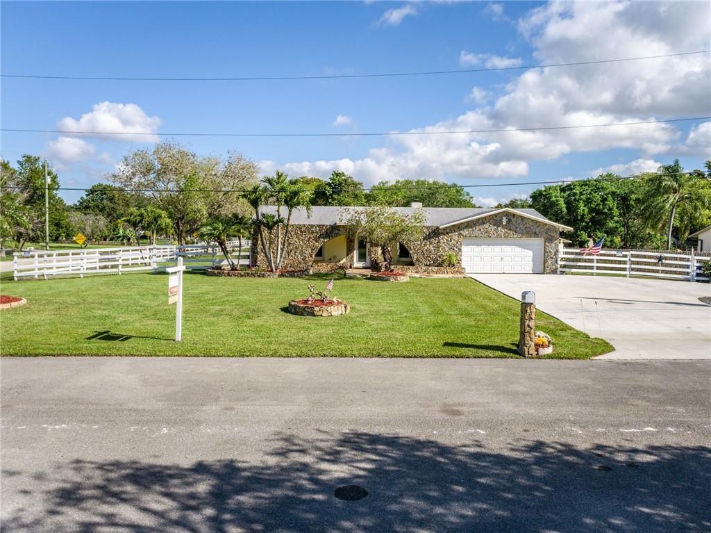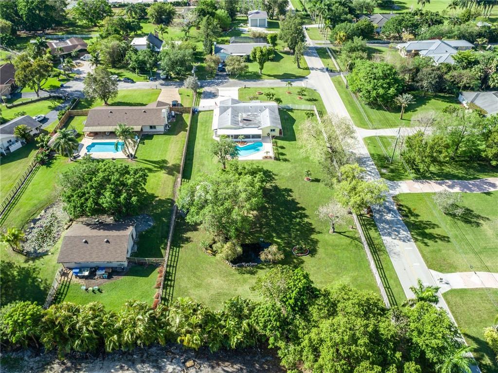 Impeccably-Kept Country Charmer in Southwest Ranches! Spacious 1-acre corner dry-lot host to serene pond, oak trees & beautiful green grounds. This 5BED/2.5BA home has been updated to include a 2-yr roof & a/c, impact windows/doors + accordions & newer kitchen w/S/S appl pkg, floating island, beveled-edge granite countertops & lg pantry. Home's family social area features a real wood-burning fireplace embedded in striking stonewall, exposed ceiling 12" wood beams (w/3" insulation) adds character to this large gathering area w/views to the pool/spa, garden & lovely grounds. Parquet wood floors & Cedar wood walls add warmth & tradition to this timeless ranch home. Deep well w/triple-filtered system grants crystal clear drinking water. Xtra lg sheds for storage. 10-car & RV Parking space.