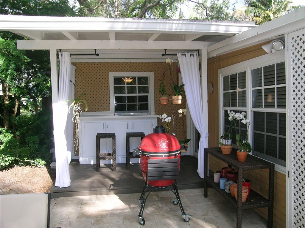 Key West meets Victoria Park! Feel the character the second you step on the property. Set behind lush tropical landscaping sits this 1940’s restored beauty filled with original detail and architectural detail including stone and wood floors, New roof, French doors, and to the roof line beamed ceilings. Look through to the big heated pool bordered by an abundance of mature gorgeous plantings assuring privacy. New kitchen, bath and all hurricane windows and doors. Attached garage. Best location