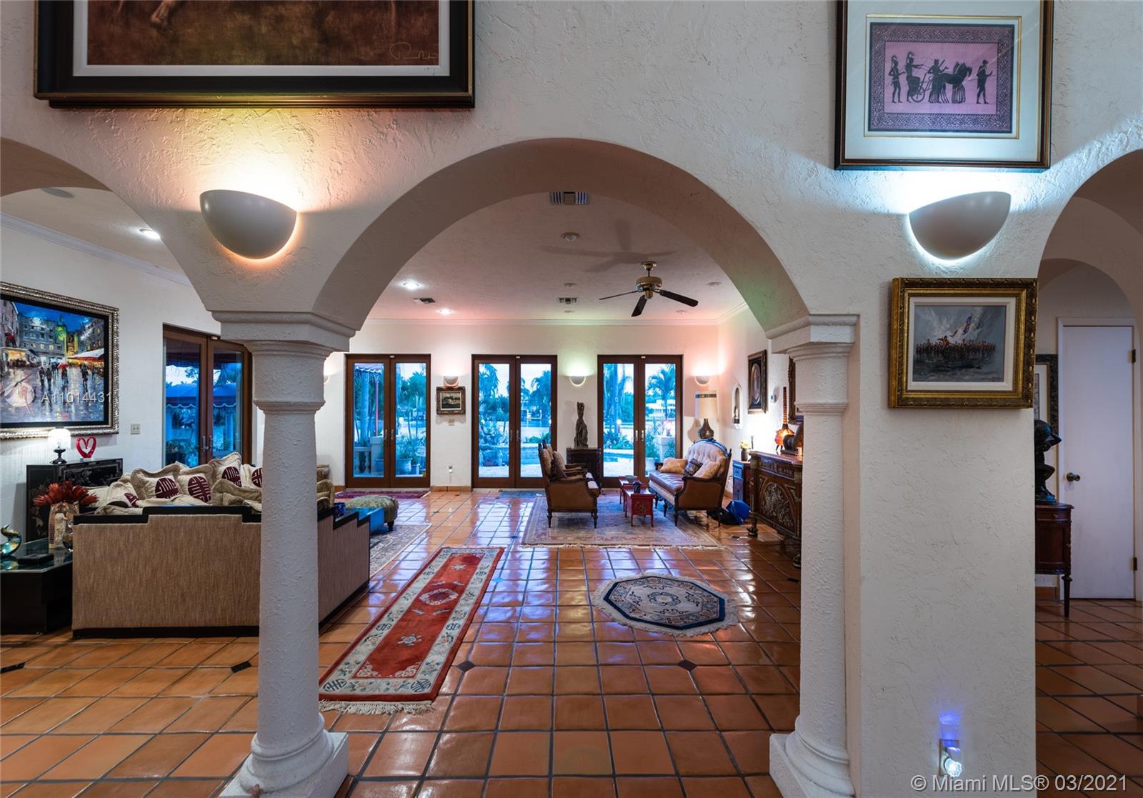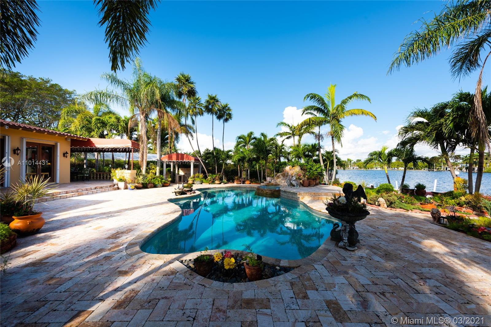 Dramatic Waterfront 4/4 5,000+ sf Mediterranean villa with wide water views and dock on large lot with resort-style swimming pool, spa and tennis court surrounded by tropical foliage in sought-after Hollywood Lakes neighborhood. A few short blocks from the beach and many shops, restaurants and nightlife. Home features dramatic soaring ceilings throughout massive living area with high French doors uniting interior with outdoor paradise. Lots of charm and character and many updates. Quality construction engineered to endure. Ideal to entertain with ample parking. Great for boating, jet ski, paddle board. Your own personal Florida paradise.