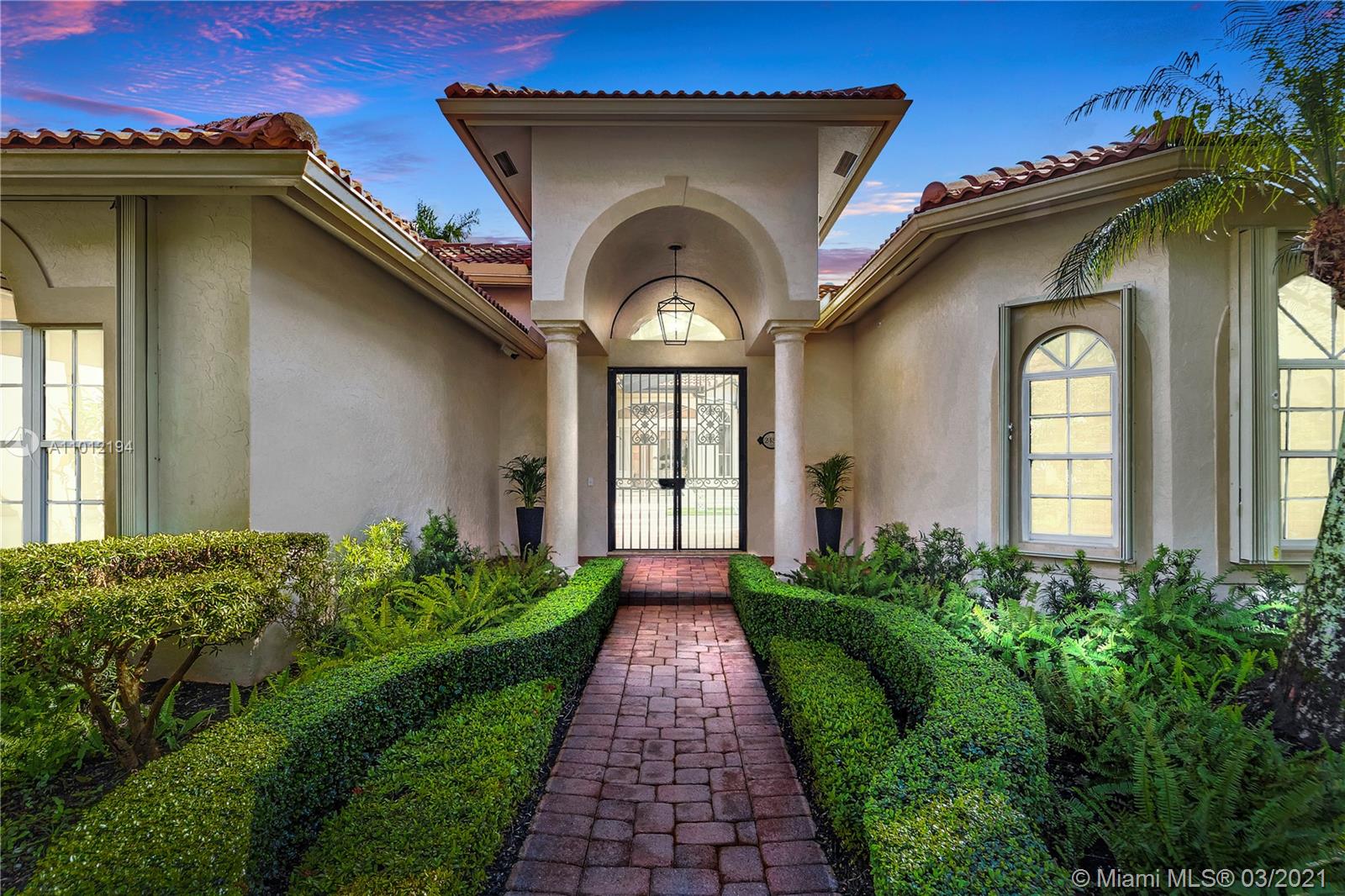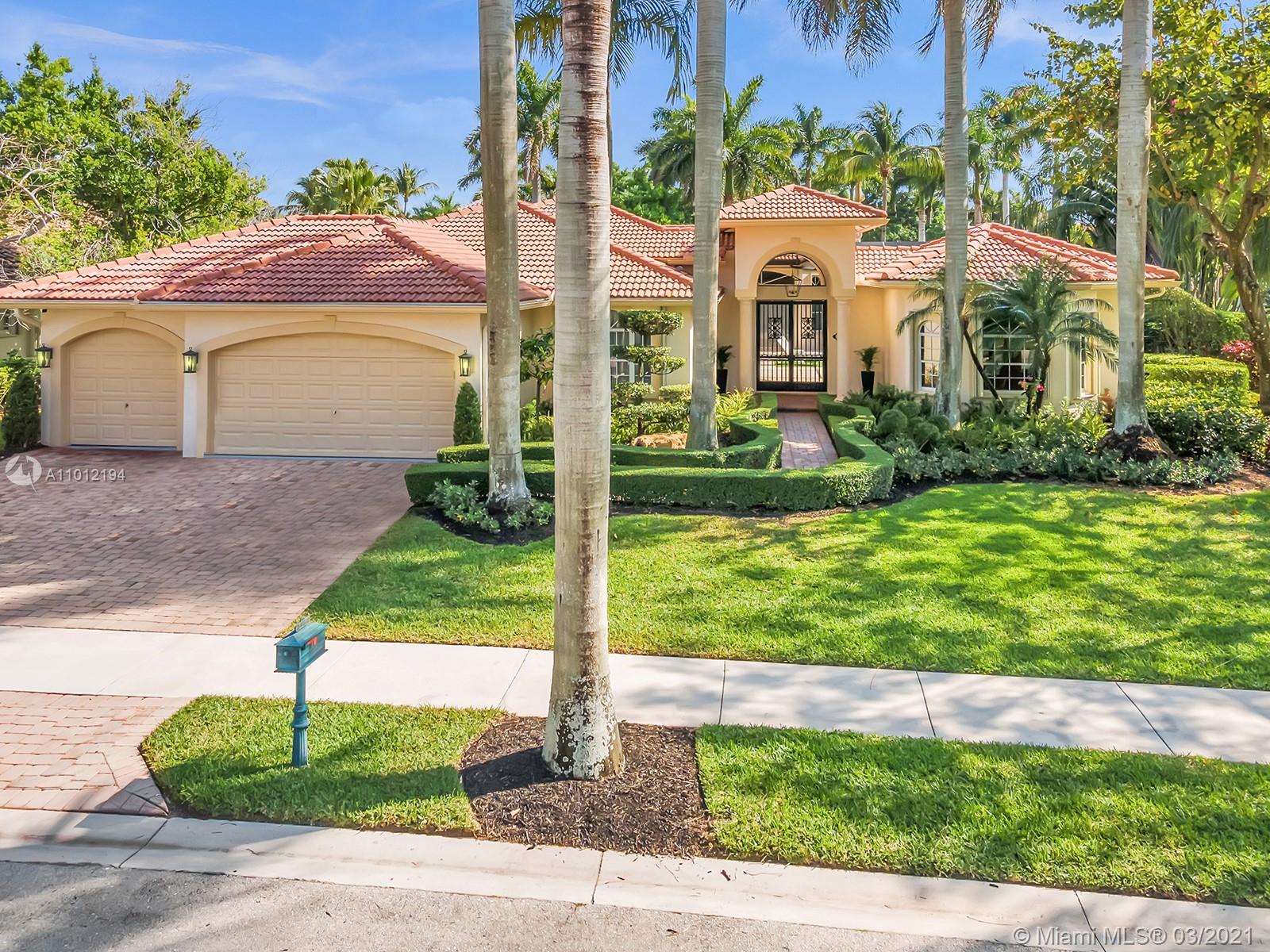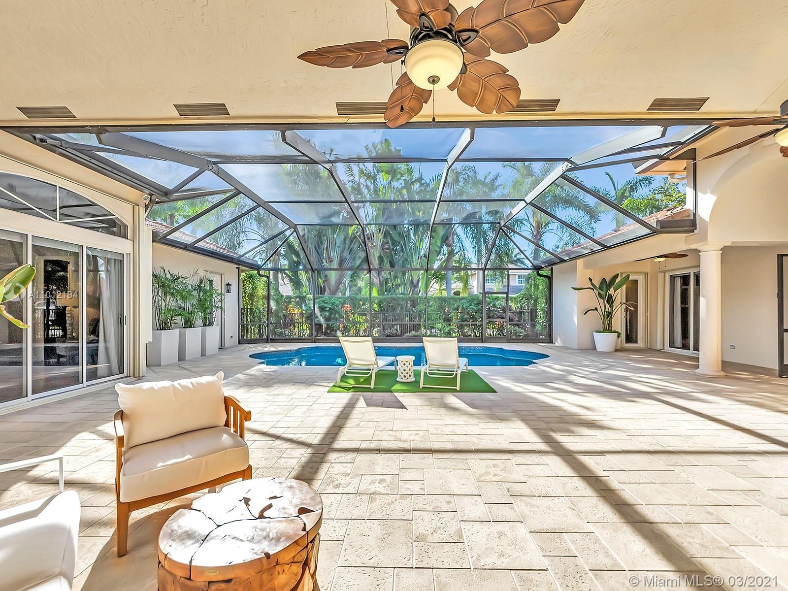 Absolutely Stunning! This custom courtyard home sits on a private corner lot of a cul de sac street and features 4BR/3.5BA in the main house plus 1BR/1BA in the guest house. Completely remodeled, updated and expanded chef's kitchen offers classic cabinets w/undermount lighting, top of the line appliances, Miele double ovens, 2 Miele dishwashers, quartz counters, large butler pantry w/beverage center and large storage area. Children's wing with social area. All bathrooms are tastefully updated. Large porcelain tile in living areas, wood flooring in bedrooms. The screened and heated pool with saline chlorination system is surrounded by spacious paver patio and lush landscaping, perfect for entertaining or just relaxing. Easy closing Accordion shutters. Paver driveway leads to 3 car garage.