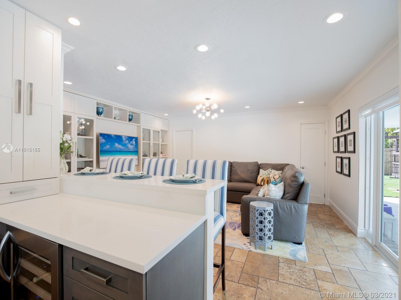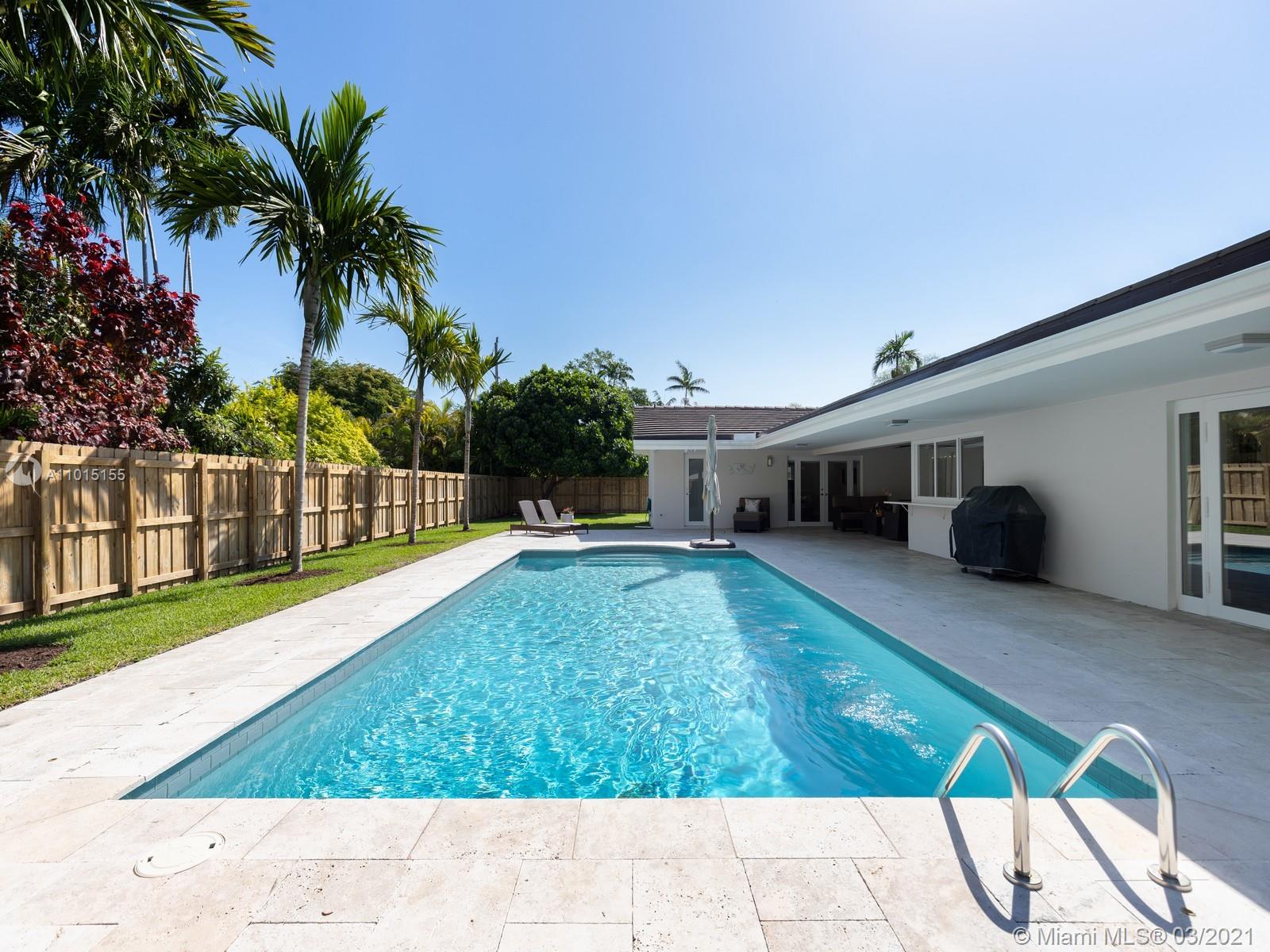 A timeless and renovated residence on a beautiful North Pinecrest street - this special home offers superb quality and modern features: recent new roof, impact glass windows - doors, updated plumbing, ACs and a custom gas kitchen. This 4br/3bath floor plan is the ideal layout for a family and offers a home office with custom built-ins. The kitchen windows open to a large covered terrace and a heated saline pool area where many afternoons will be enjoyed after bike rides on the low traffic street. Surround yourself with quality time by walking to nearby Pinecrest parks, tennis center, shopping and the adjacent expressways are perfect for those that commute. Home can be purchased with most of the furniture (separate purchase/request prices), making it a turn-key opportunity!