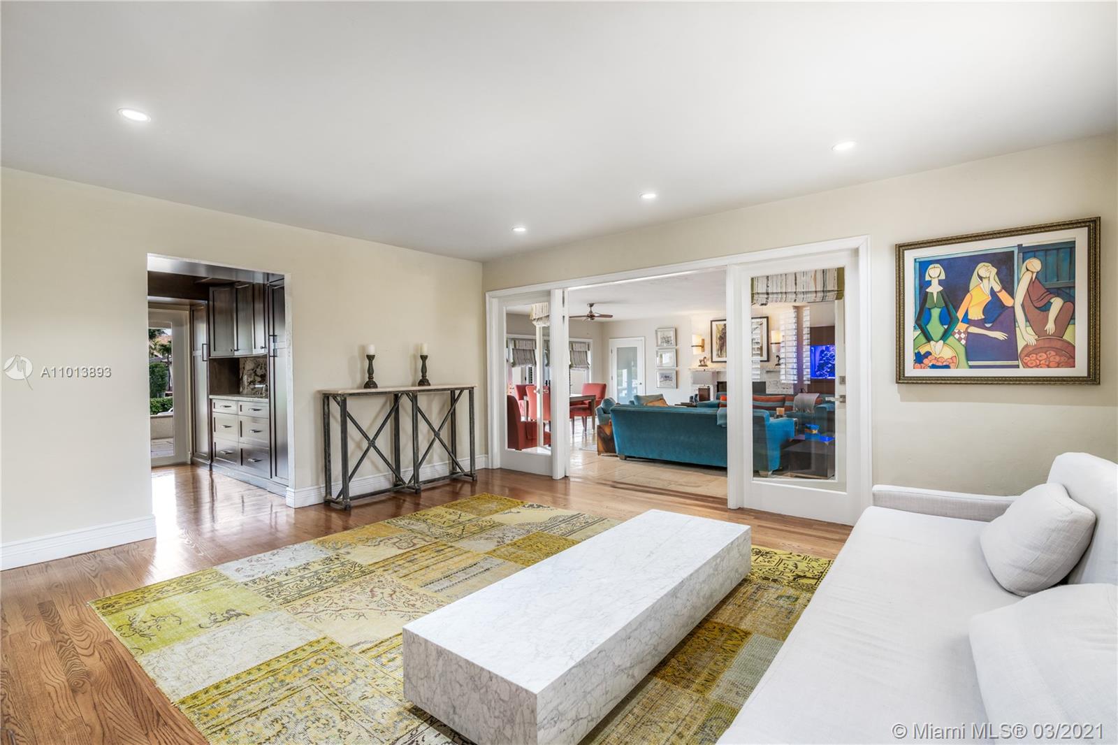 Impressive waterfront Gables by the Sea remodeled two-story home. Enjoy no bridges to Bay in this coveted guard-gated community. This home features 110’ waterfront w/seawall, boat davit, brick paver circular driveway, incredible walk-in glass encased temp-controlled wine cellar for 1000+/- bottles, hardwood floors upstairs and down, stunning neutral concrete tile & inviting fireplace in oversized Family room that overlooks the large covered terrace, pool and canal. Wide open covered terrace with Summer Kitchen equipped with top-of-the-line barbecues, mini-fridge and ice maker – perfect for entertaining and enjoying the bay breezes. Master suite + 2 bedrooms/1 bathroom are upstairs, & 1 en-suite bedroom is downstairs. Whole house generator. Home remodeled in 2014. Dock was redone Jan. 2021.