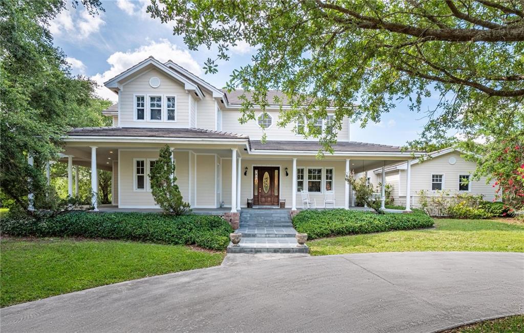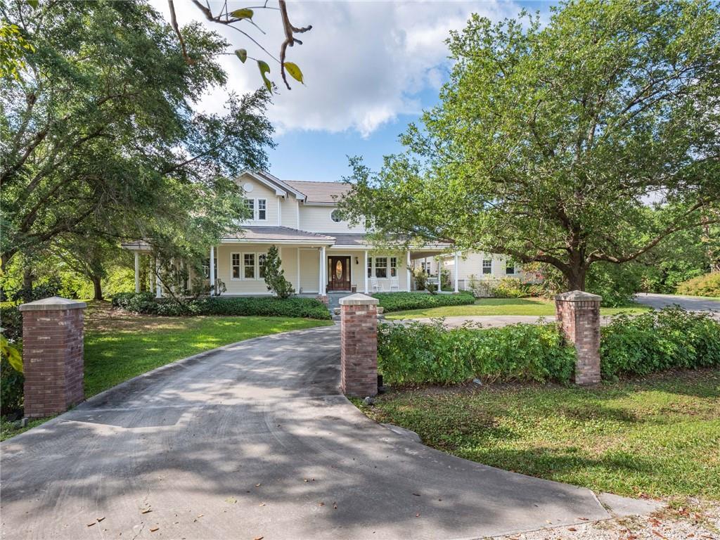Exquisite Southern Home w/Wrap-Around Porches on 2.5-Acre Private Estate in Sought-after Southwest Ranches! Warm & inviting curb appeal the moment you set your eyes upon this beautiful home set in a storybook garden array of Oaks/Pine trees, fruit trees & butterfly vegetation. Impeccably maintained spacious interior featuring shimmering wall-to-wall wood floors, accented by the finest of finishes in white panel doors, crown molding & touches of wainscot throughout. Picturesque views of the botanical gardens from every impact window & French door adorning this masterpiece home. Showcase Great Room w/tongue & groove wood ceiling & stone wood burning fireplace is the perfect setting for family gatherings overlooking the infinity pool w/waterfall, serene pond views & grabble walking path.