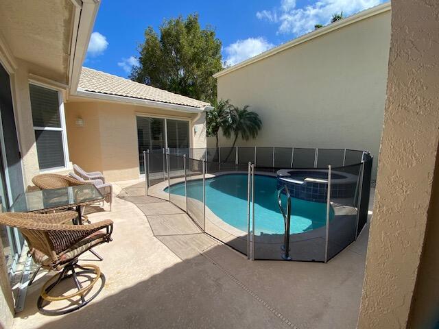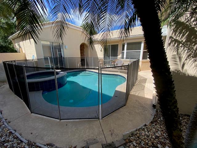 RARE SINGLE STORY 3/3 COURTYARD POOL HOME IN NICE ENCLAVE CONVENIENTLY LOCATED IN THE VILLAGES AREA OF WPB. THIS UNIQUE HOME OFFERS A COURTYARD ENTRY WITH A SEPARATE BEDROOM/BATH WITH SLIDERS TO THE POOL (PERFECT FOR HOME OFFICE, GUESTS, RENTAL, IN-LAW, ETC. AND THE MAIN HOUSE BOASTS 2 MORE BEDROOMS AND 2 FULL BATHS AND FAMILY ROOM. OPEN KITCHEN WITH BREAKFAST AREA AND FAMILY ROOM. THERE IS A 2 CAR ATTACHED GARAGE WITH DIRECT ENTRY INTO THE FAMILY ROOM. THE LARGE DINING / LIVING AREA OPENS UP TO A ADDITIONAL BACK PATIO AREA WITH GREEN SPACE! GREAT STARTER HOME, VACATION HOME, ETC. PLENTY OF OPTIONS FOR HOME / OFFICE. GOOD LOCATION - MINUTES TO MAJOR ROADS, WPB OUTLETS MALL W WHOLE FOODS, ETC,