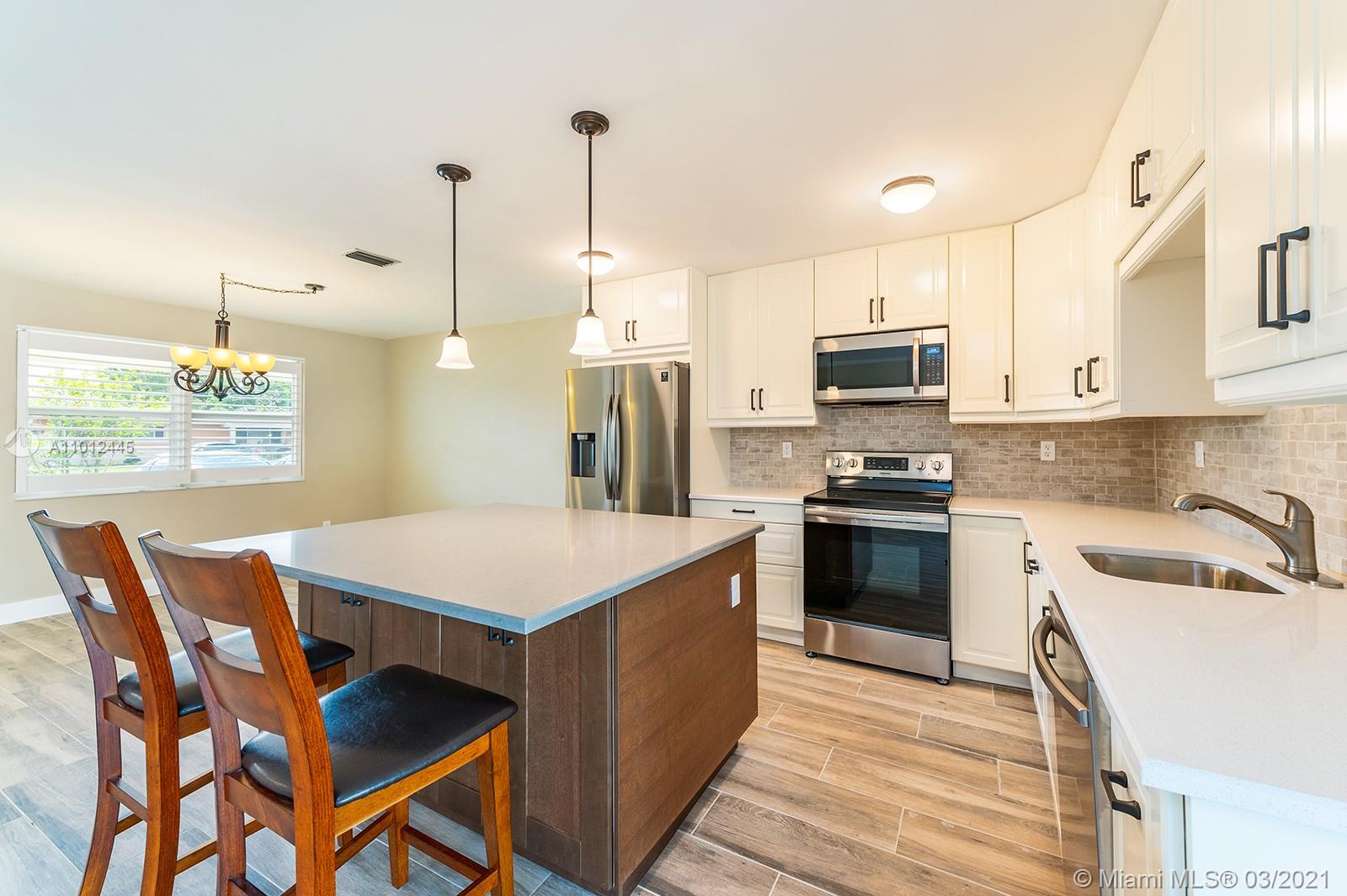 Completely remodeled home with over $60,000 worth of upgrades in Pembroke Pines! Come and see this turnkey home featuring an open layout with brand new tile wood flooring throughout the home. The kitchen has been redone to include new appliances, wood cabinets, quartz counters, and an eat-in island. This home has two full bedrooms with updated bathrooms and includes an extra den/office/room split from the other bedrooms for privacy. This is not where the updates stop, this home has a laundry list of new features including: new hurricane impact windows, new roof, newer A/C, new lighting, and a fresh coat of paint! The yard opens up to a brand new deck, perfect for entertaining and with plenty of avocados from the fruit tree! A circular driveway and garage complete this home. No work needed!