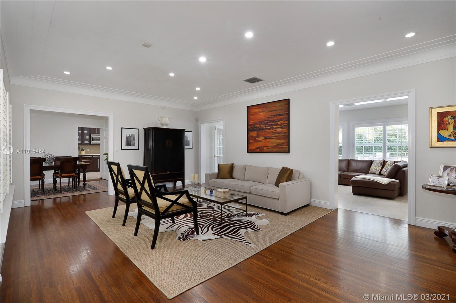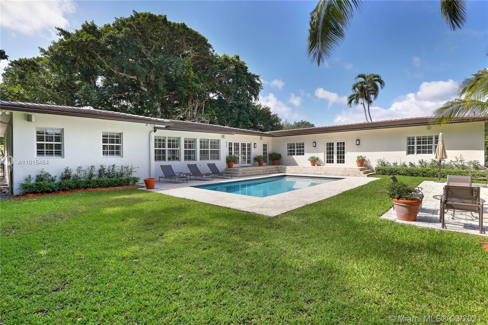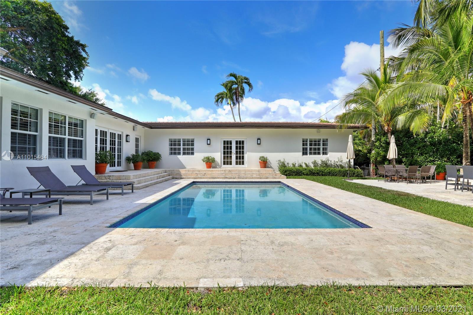Enjoy life in one of the finest neighborhoods in Coral Gables, The Golden Triangle, in this picture-perfect 4 BR, 4 BA 3,537 SF home on a pristine 12,200 SF lot! The circular Chicago brick driveway leads to the covered front porch, a perfect spot for rocking chairs! Inside find the formal liv & din rms, open kitchen w/ high-end appliances & casual dining area overlooking the yard, + ample fam rm. The split plan features primary suite w/ French doors to the pool, 2 walk-in closets, & lge bath w/ 2 sinks, tub & shower, + one BR/BA to one side, & 2 more BRs & BAs to the other. Outside find a beautiful summer kit overlooking the pool & ultra-private yard. Newer roof, all impact glass, plaster moldings, plantation shutters, wood & marble floors, & much more, this home is too good to be true!
