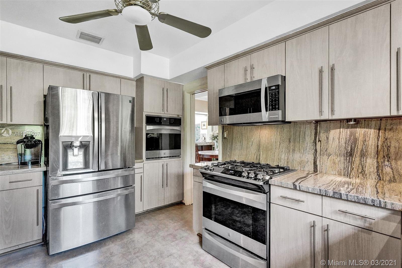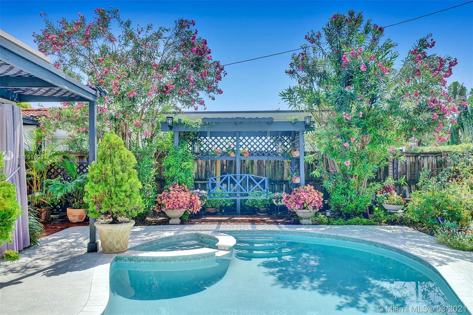 Enjoy your privacy and a fabulous backyard / tropical garden in this house located in a quiet street in a gated golf course community in Normandy Island and Miami Beach Just few blocks from shopping, dining, parks and public transit. The spacious kitchen has been upgraded with granite counters and stainless steel appliances, and dining and living areas are extremely spacious. All high impact windows. Florida room open through a fully fenced backyard with large patio, heated pool, Jacuzzi and a lush tropical garden. One-car attached garage and room for three more cars in the driveway.