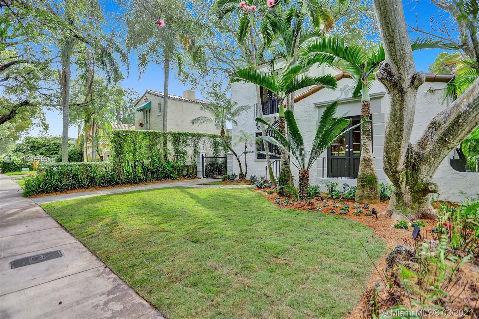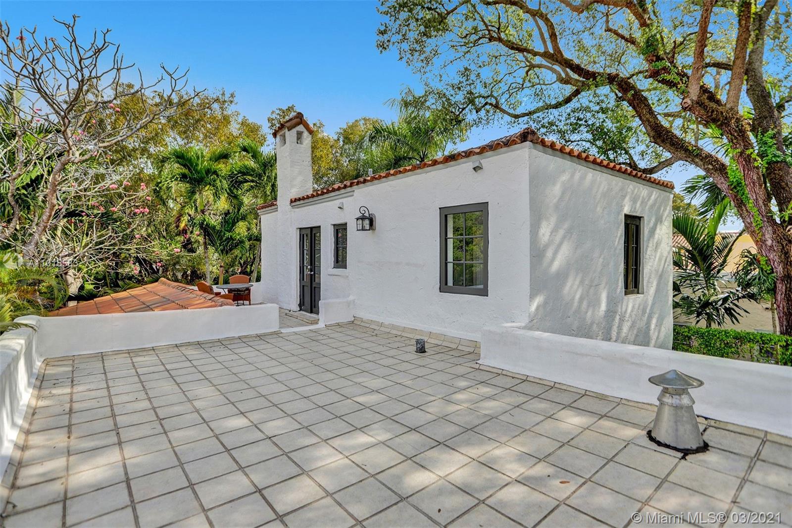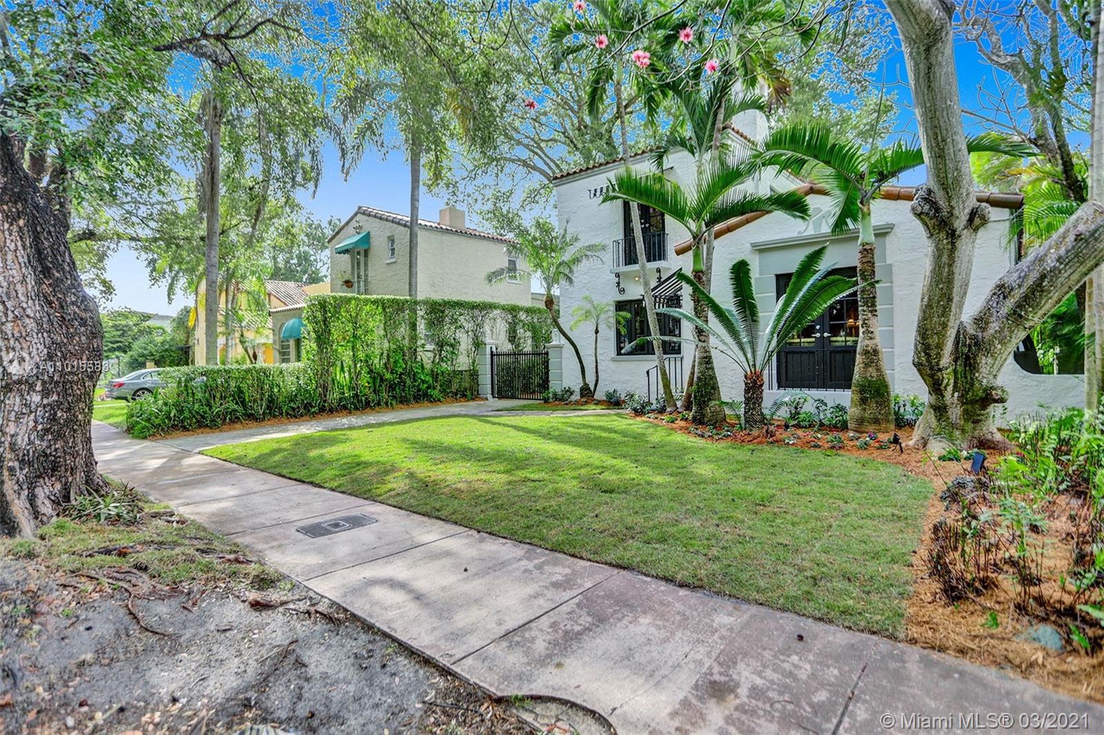 Built in 1923 by original Coral Gables architect Martin Luther Hampton, Jr., this elegant 2-story Spanish Colonial has been lovingly restored to its original charm. First floor features spacious formal living and dining rooms with original oak floors, two br, two full bths, and large new, Bosch-equipped eat-in kitchen that opens onto Cuban-tiled veranda and deep back yard with large pool. Second floor main room includes large walk-in closet (formerly a fourth bd, could double as nursery or office) Spa bath with Japanese-style enclosure with separate shower & soaking tub as well as private roof terrace. New impact doors and windows throughout, newly landscaped front and back yards. Located on beautiful tree canopied Alhambra Cr walking and biking distance to downtown Coral Gables
