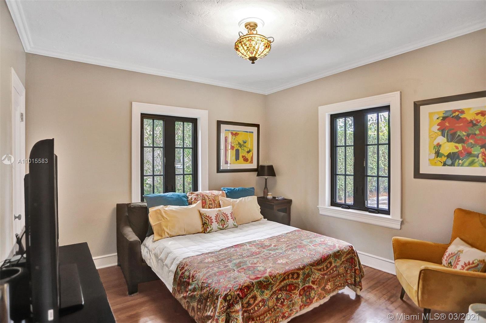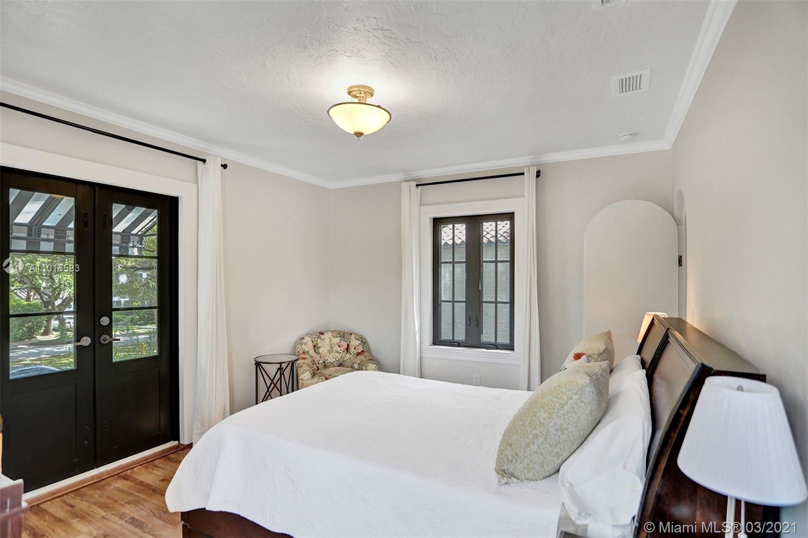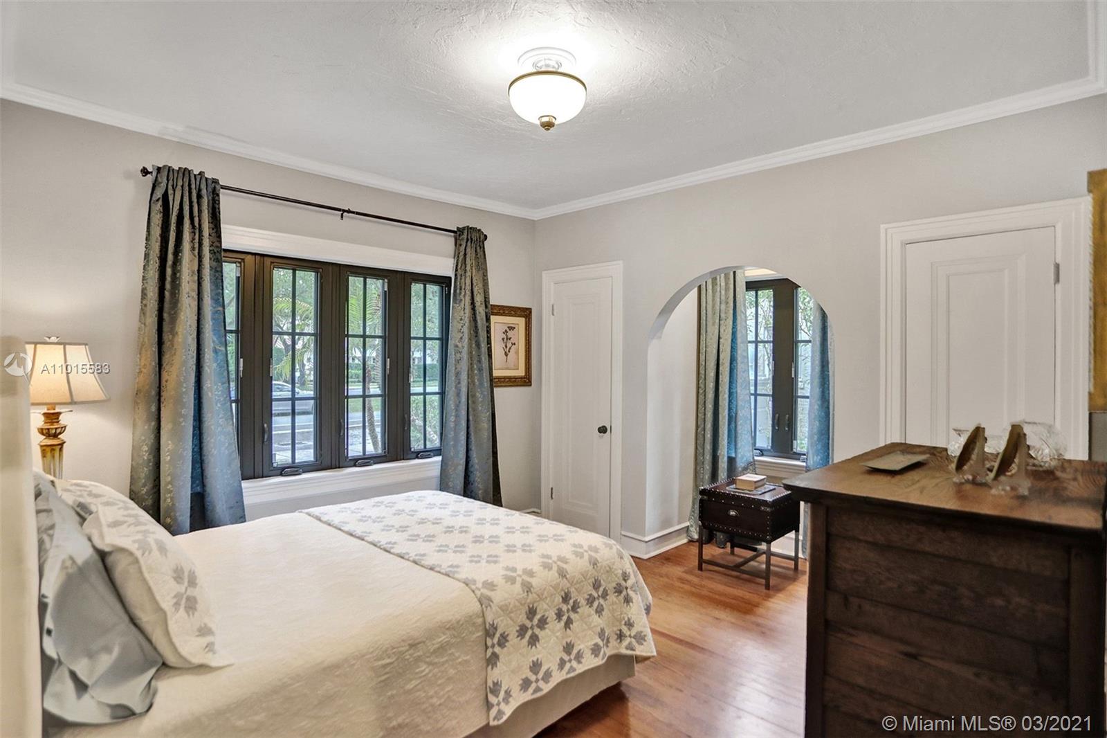 Built in 1923 by original Coral Gables architect Martin Luther Hampton, Jr., this elegant 2-story Spanish Colonial has been lovingly restored to its original charm. First floor features spacious formal living and dining rooms with original oak floors, two br, two full bths, and large new, Bosch-equipped eat-in kitchen that opens onto Cuban-tiled veranda and deep back yard with large pool. Second floor main room includes large walk-in closet (formerly a fourth bd, could double as nursery or office) Spa bath with Japanese-style enclosure with separate shower & soaking tub as well as private roof terrace. New impact doors and windows throughout, newly landscaped front and back yards. Located on beautiful tree canopied Alhambra Cr walking and biking distance to downtown Coral Gables