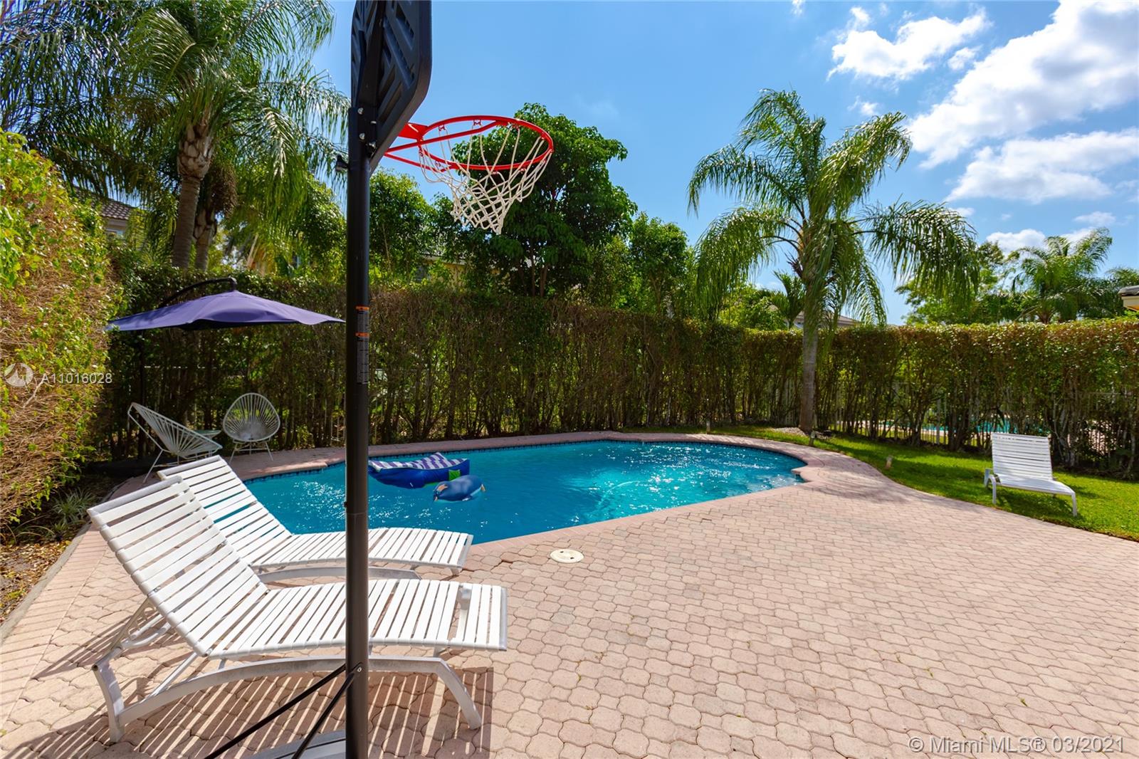 Enjoy this beautiful property in the most exclusive area of Weston with the best schools in the area. With a beautiful pool to enjoy with family and friends and a completely private garden. Home features impeccably maintained 5 BR, converted bonus room with newly renovated flooring. The home has ceilings and windows that allow natural sunlight to flood inside. The gourmet chef's kitchen features top of the line stainless steel appliances, double sinks, fully custom island, and granite-topped breakfast bar.