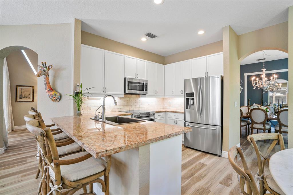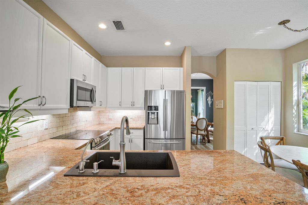 Rarely available 5 bed 3.5 bath home in a desirable Boca Raton Gated community. New Luxury Vinyl Flooring throughout main living space. Oversized master bedroom with large walk in closet all on main floor. White kitchen with granite counters and stainless appliances Kitchen with open great room looks out on your private yard and beautiful pool with a very spacious, oversized patio. Patio is completely screened in. Upstairs boasts 4 large bedrooms and 2 full bathrooms. Newly painted exterior, landscaping and great curb appeal. A-rated Boca schools. Can even walk or bike to Elementary and middle school. Manned Gated community, clubhouse, fitness center, tennis, basketball, community resort style pool.