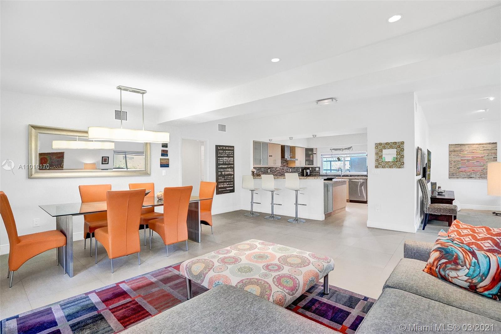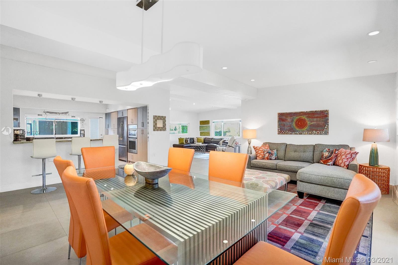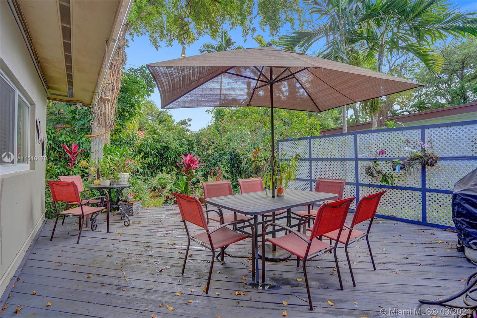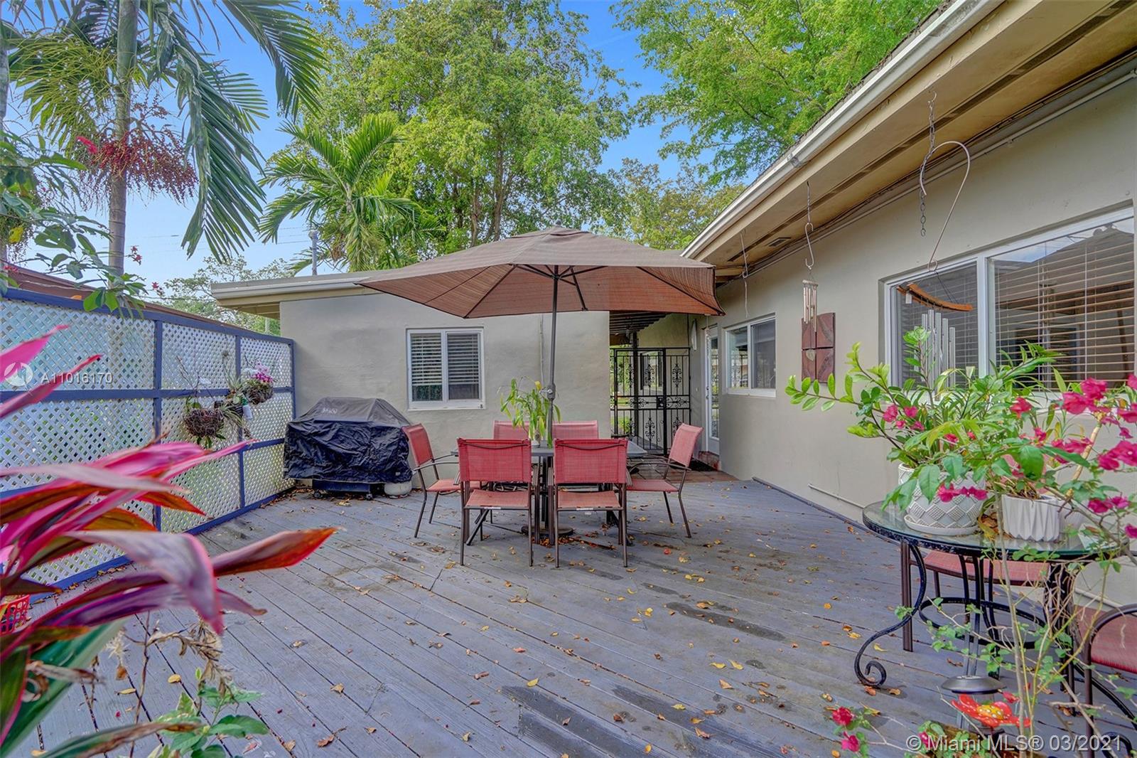 This lovely one-story home 3B/2B in the heart of the family-friendly Sky Lake is fully updated and move in ready. An inviting open-concept tiled floor plan perfect for entertaining. The spacious gourmet kitchen is a chef’s dream with a gas range, wall oven, plenty of storage, and stainless steel appliances. Large, all-impact windows throughout flood the space with natural light and provide energy efficiency and savings on your electrical bill. Outside, enjoy your morning coffee or spend the evening barbequing on the wooden deck, surrounded by a gorgeous garden filled with lush native plants and flowers. The carport and additional adjacent outdoor room present an opportunity to customize the home and add square footage in the form of a bonus room, a home office, or your dream master suite.