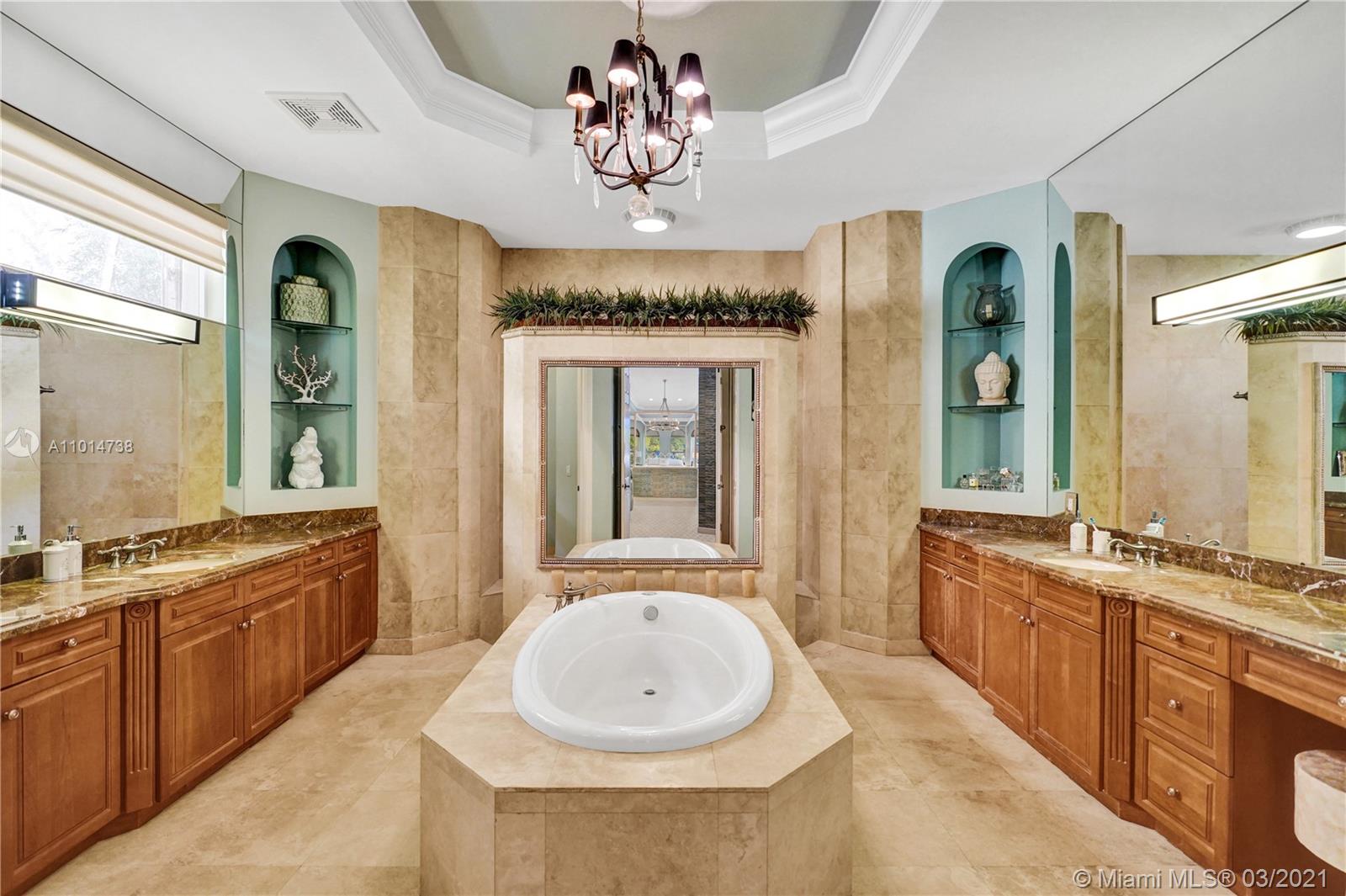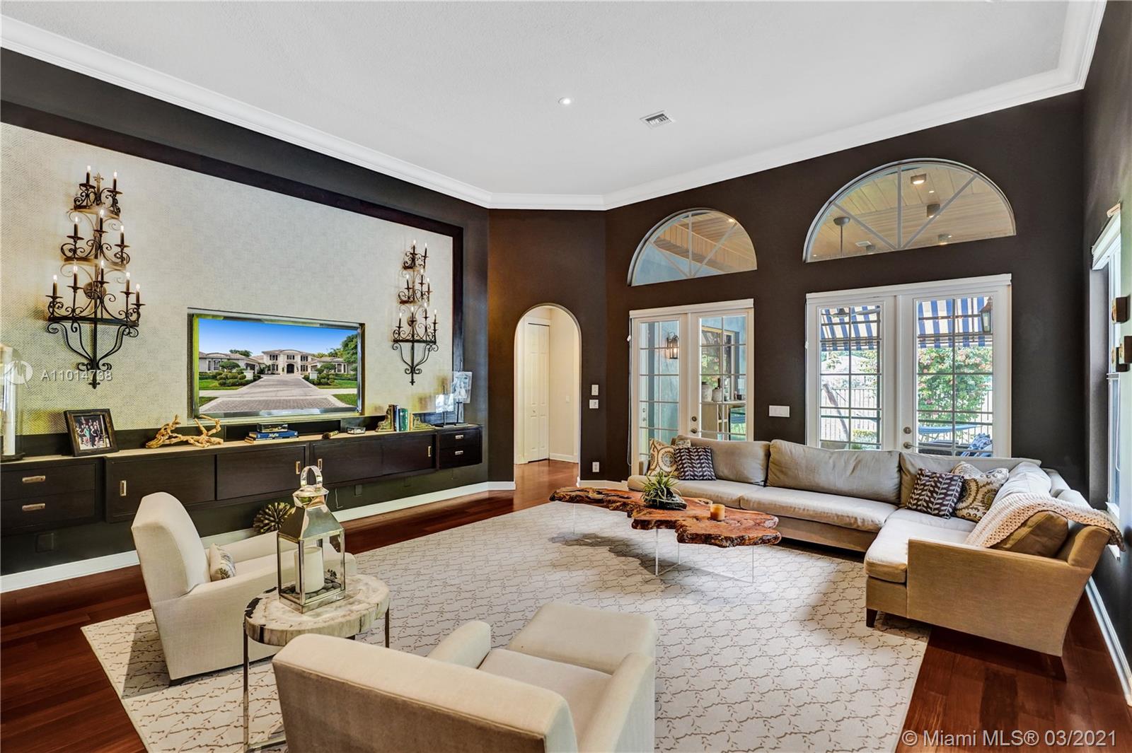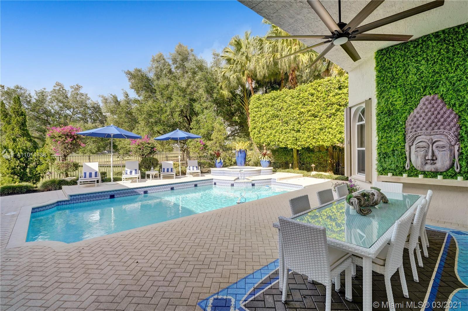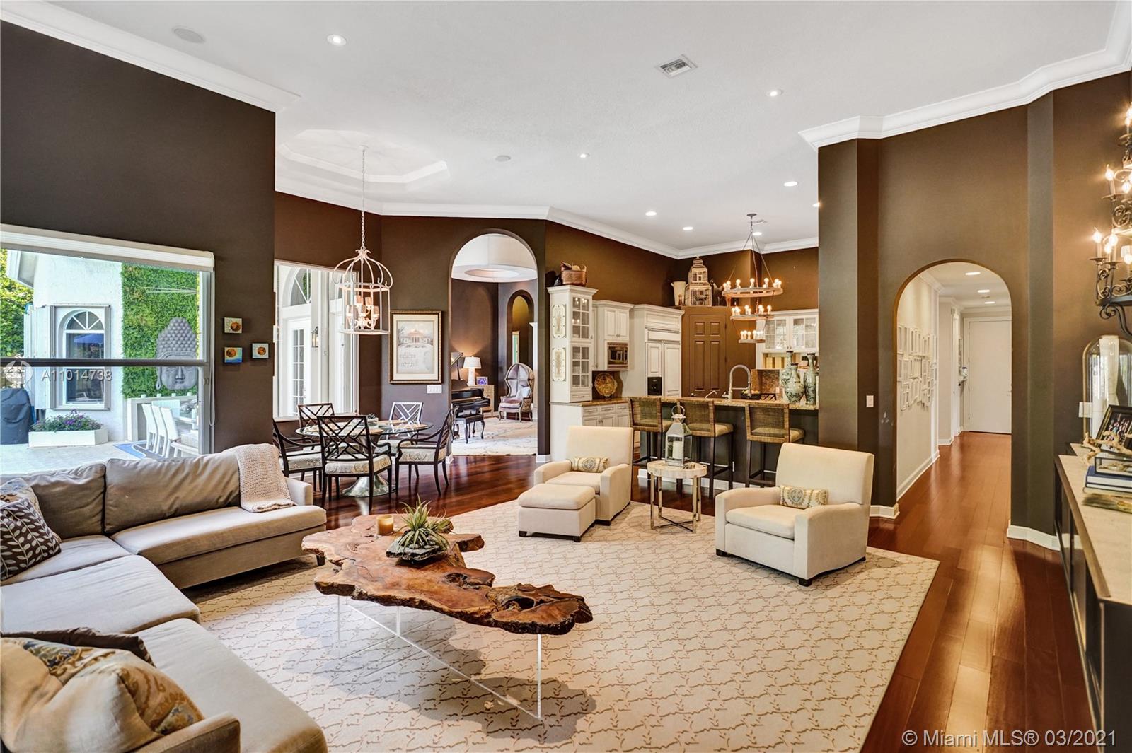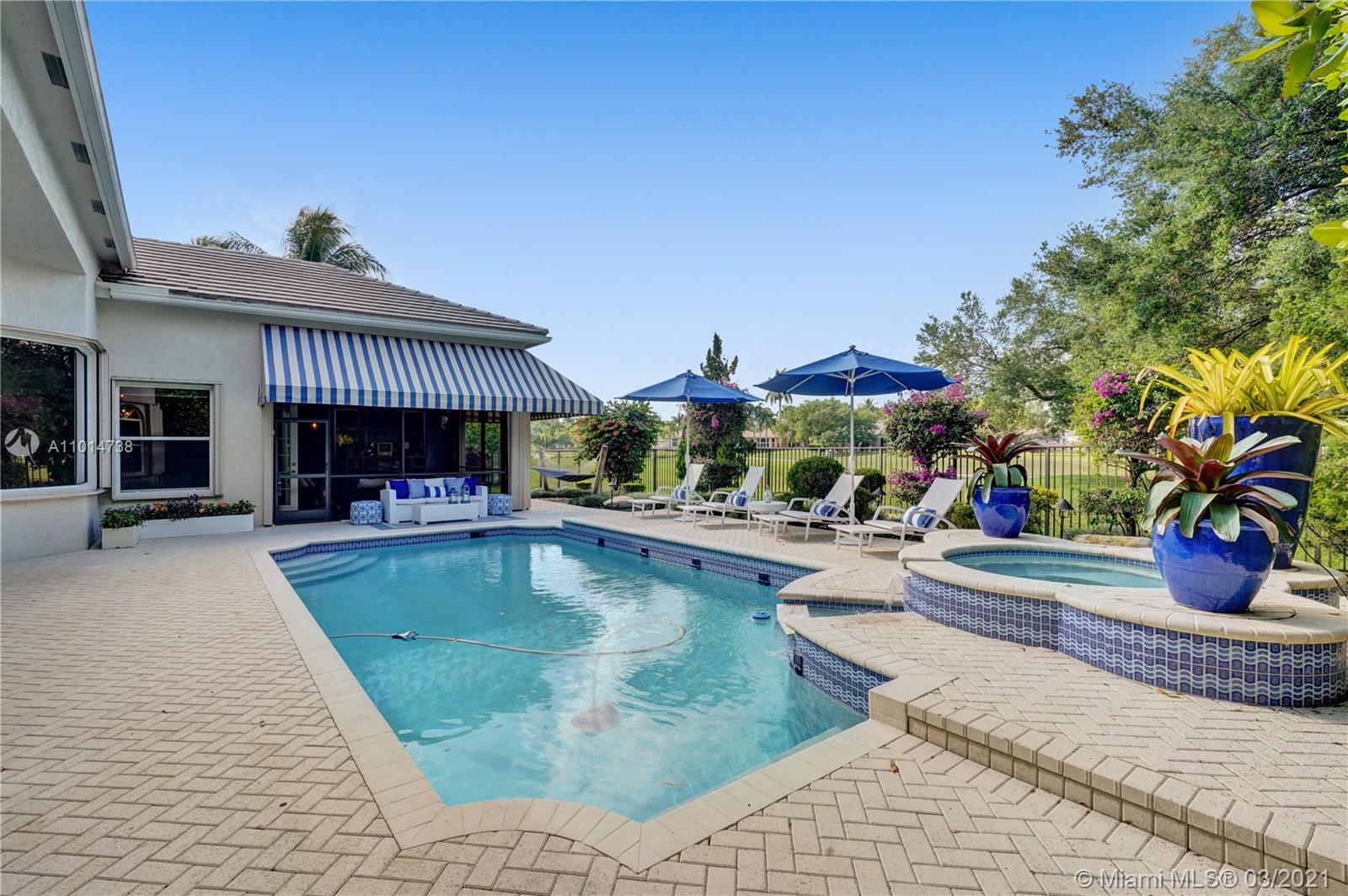One-of-a-kind residence located in the extremely desirable neighborhood of the Retreat in Weston Hills Country Club consisting of only 19 homesites. Stunning designer finishes & attention to detail throughout this one story, 6 bedroom, 4 1/2 bath home. Features include: spacious living areas with wood floors, formal living & dining rms, built-in bar, luxurious master suite with sitting area, amazing closets & spa-like master bath, gourmet kitchen with center island & walk-in pantry, the family room opens to the covered patio & flows seamlessly from interior to exterior. The tranquil backyard offers a heated pool, spa & picturesque golf course views. Complete with A/C filtration system, hurricane protection & 4 car garage. Original owners, first time on the market, meticulously maintained!