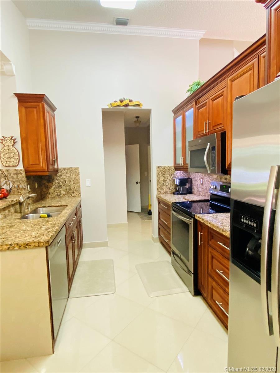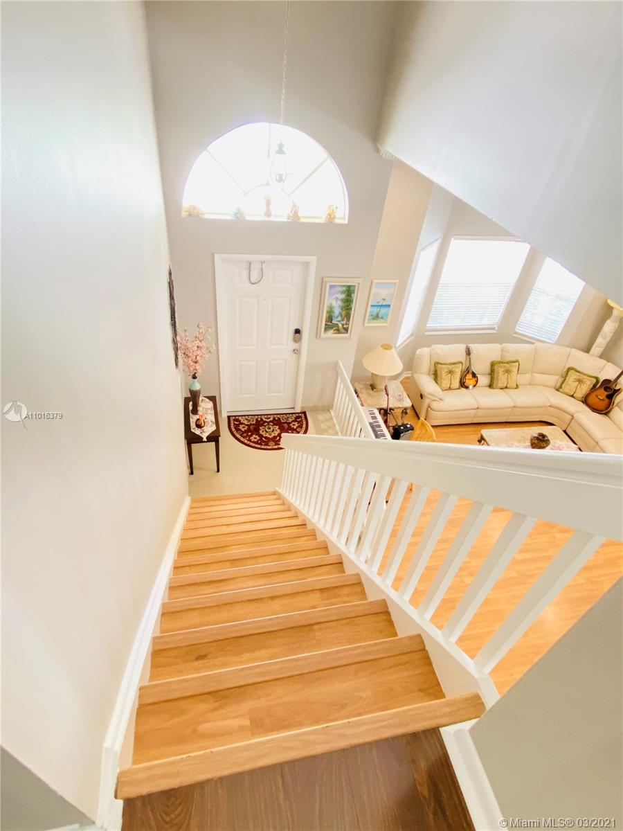 This impeccable and immaculately maintained 3/2.5 lakefront home boasts a newly remodeled kitchen, brand new AC, brand new exterior paint, new SS appliances, accordion hurricane shutters, central vacuum, porcelain and wood floors throughout. This home was used as a 2nd home for the past 18 years and was barely lived in. The beautiful backyard has a huge covered patio with plenty of room for a pool. Master bedroom is located on the 1st floor, two additional bedrooms and bathroom are located upstairs.