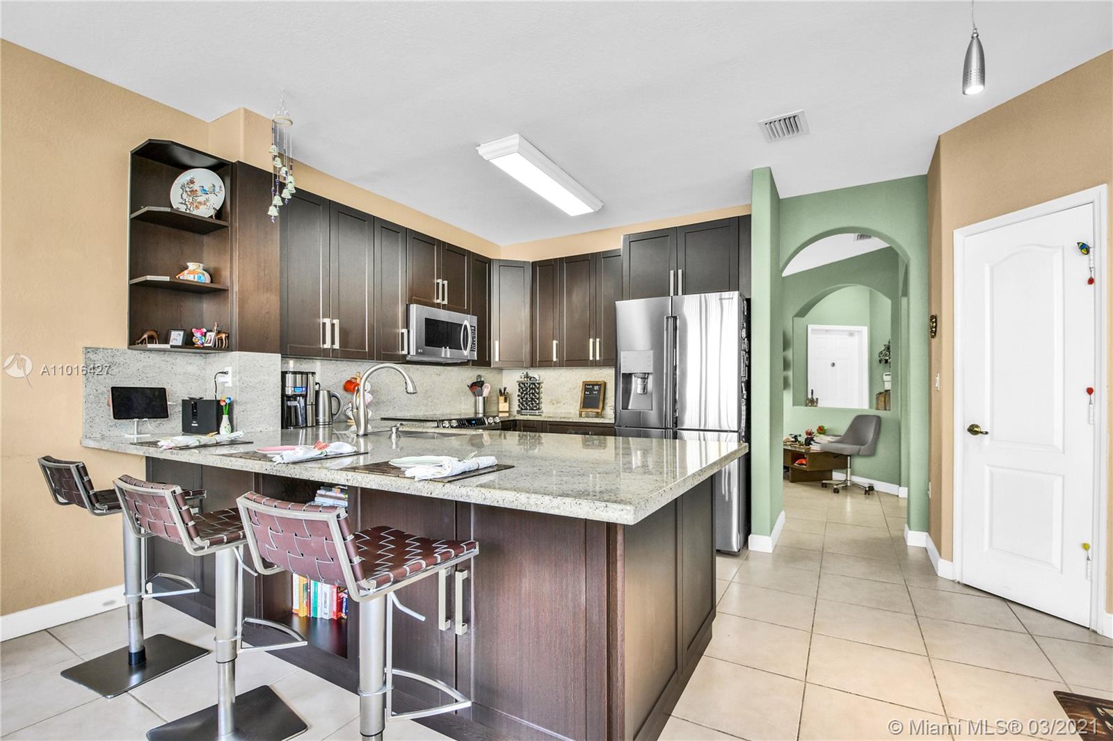 BEAUTIFUL AND SUBSTANTIALLY REMODELED home in a gated community with pool. You have to see the upgraded Granite and stainless steel KITCHEN, the enormous kitchen Island is fantastic for entertaining friends and family, high ceilings, abundant and natural light. Large bedrooms with carpet and walk in closets. Two full baths upstairs. Master bathroom with dual sink. Walking distance to schools, parks and supermarkets. Easy access to turnpike and main highways. Property is occupied by owners.