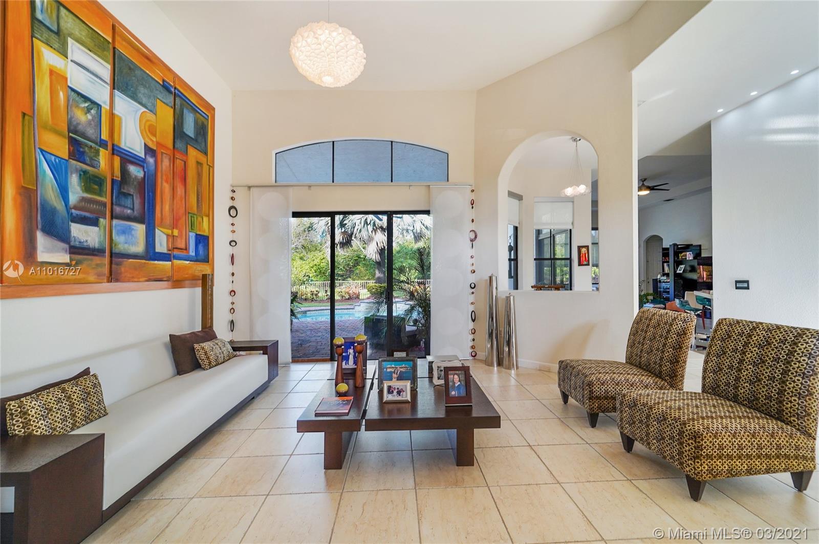 Gorgeously renovated home located within the highly sought out gated community of Harbor Lakes Estates. Double door entry opens into 13 foot high ceilings throughout the immense living area. A triple- split floor plan layout offers much needed privacy. A fully remodeled gourmet kitchen with island and beautiful modern Quartz counter top. Spectacular fenced in outdoor living area with a free form pool and lush tropical landscaping, ideal for entertaining friends and family. Spacious 3 car garage. Porcelain tile throughout. Master bathroom with separate spa tub and shower. Low HOA fees.