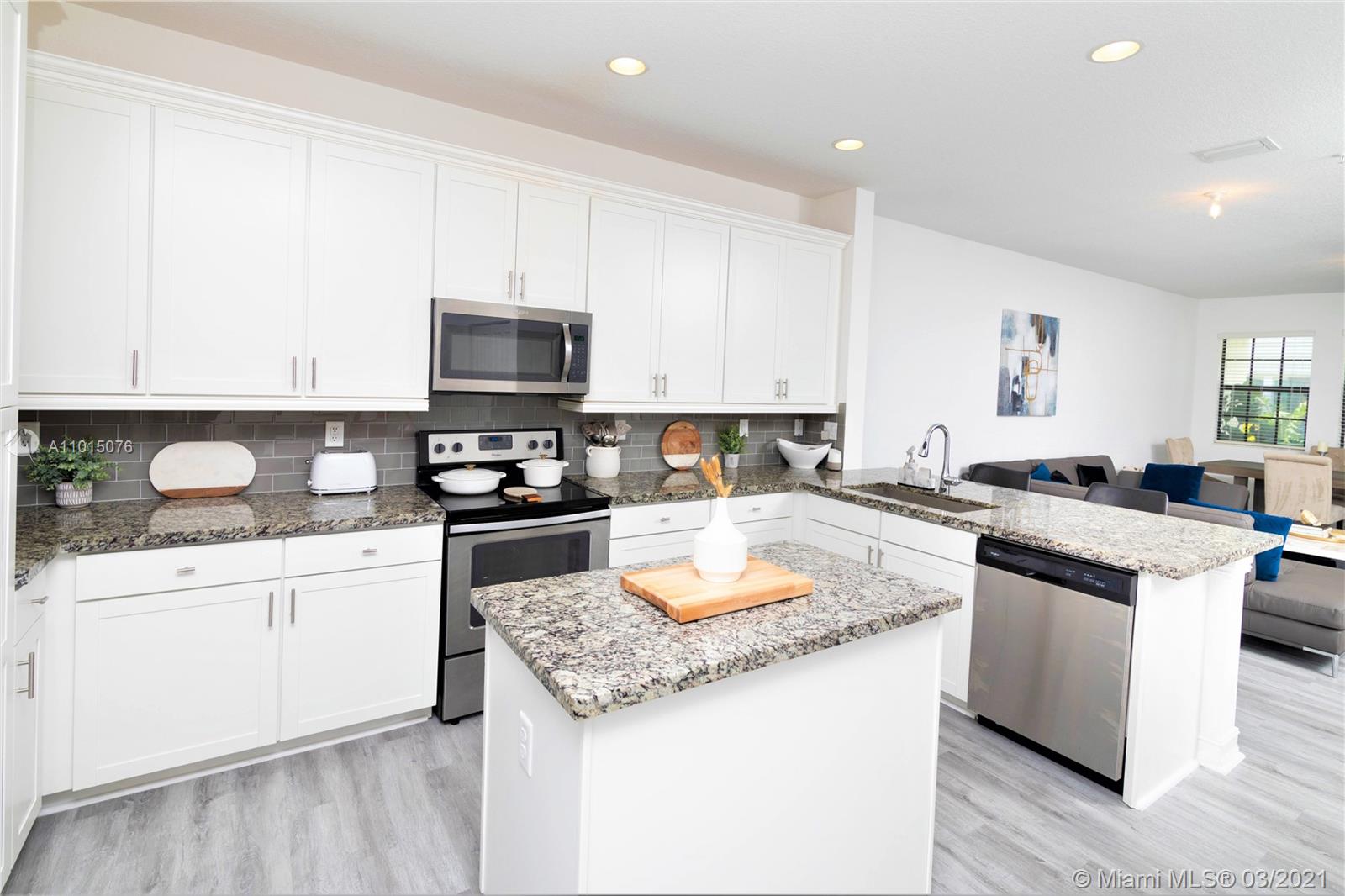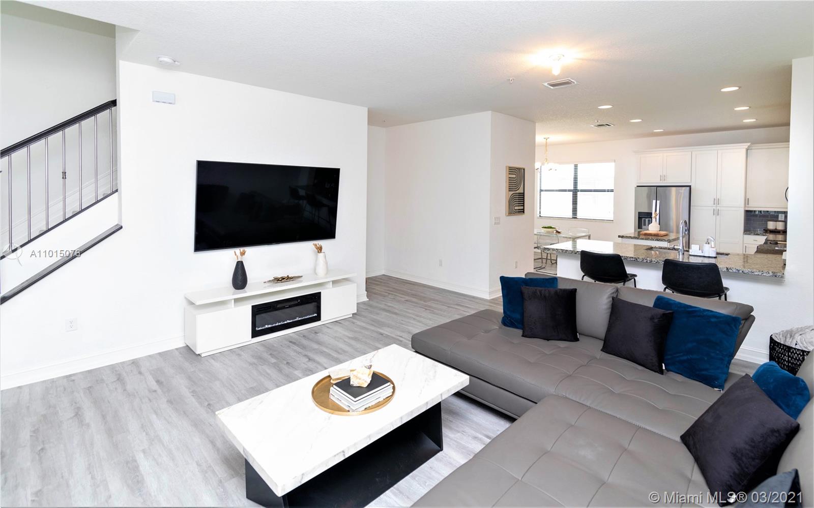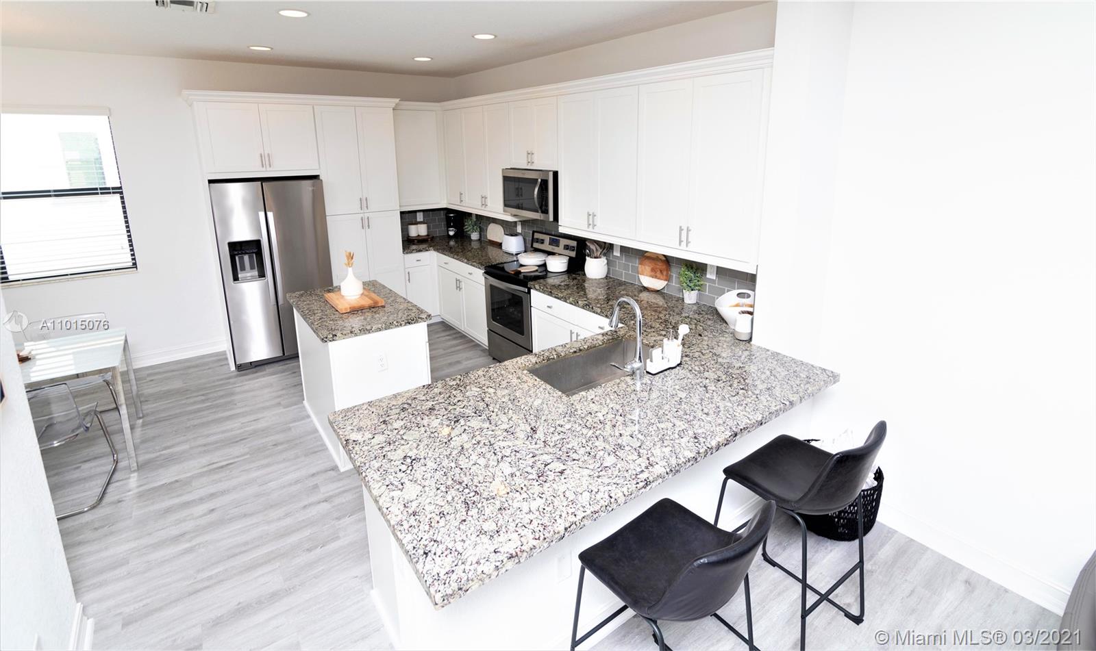 TYPE ADDRESS ON YOUTUBE FOR VIDEO Enjoy this modern stylish 2019 CONSTRUCTION townhome located in Raintree. This beautiful townhome is only 2 years old with original owner. Designed for those with an eye for style, this three-story modern masterpiece features 3 beds, 3 1/2 bath. Every bedroom has an on suite bathroom. Highly upgraded & offers an elegant & relaxed atmosphere. Almost 2,000 square feet of living area features galore: kitchen with quartz countertops, wood cabinets, stainless steel appliances, a cooking isle ideal for entertainment, a large pantry, impact windows, new modern flooring throughout, endless upgrades everywhere! RainTree offers a clubhouse, heated resort-style pool, fitness center, playground, and much more.