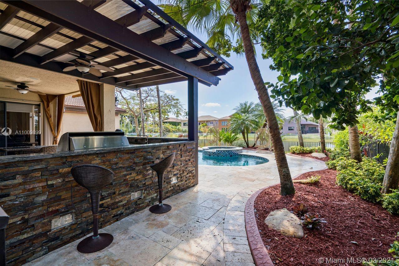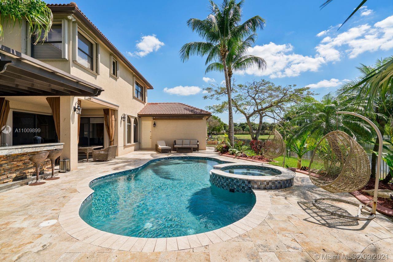 One of a kind 5 bedroom 4.5 bathroom lakefront, smart home in the highly sought after gated community of Sunset Lakes. Property is perfectly situated on a cul de sac and features stunningly high ceilings, a home theatre/media room, 325 gallon salt water aquarium, 3 car garage, full outdoor summer kitchen under a custom built gazebo, lush landscaping, full house gas generator w/ a 250 gallon under ground gas tank, accordion shutters, walk in closet in master bedroom, custom closets, bamboo flooring on second floor and custom wood work throughout interior of home. Pool has recently been resurfaced, property also has a well water sprinkler system. Great amenities and wonderful location close to excellent schools, shopping and restaurants.