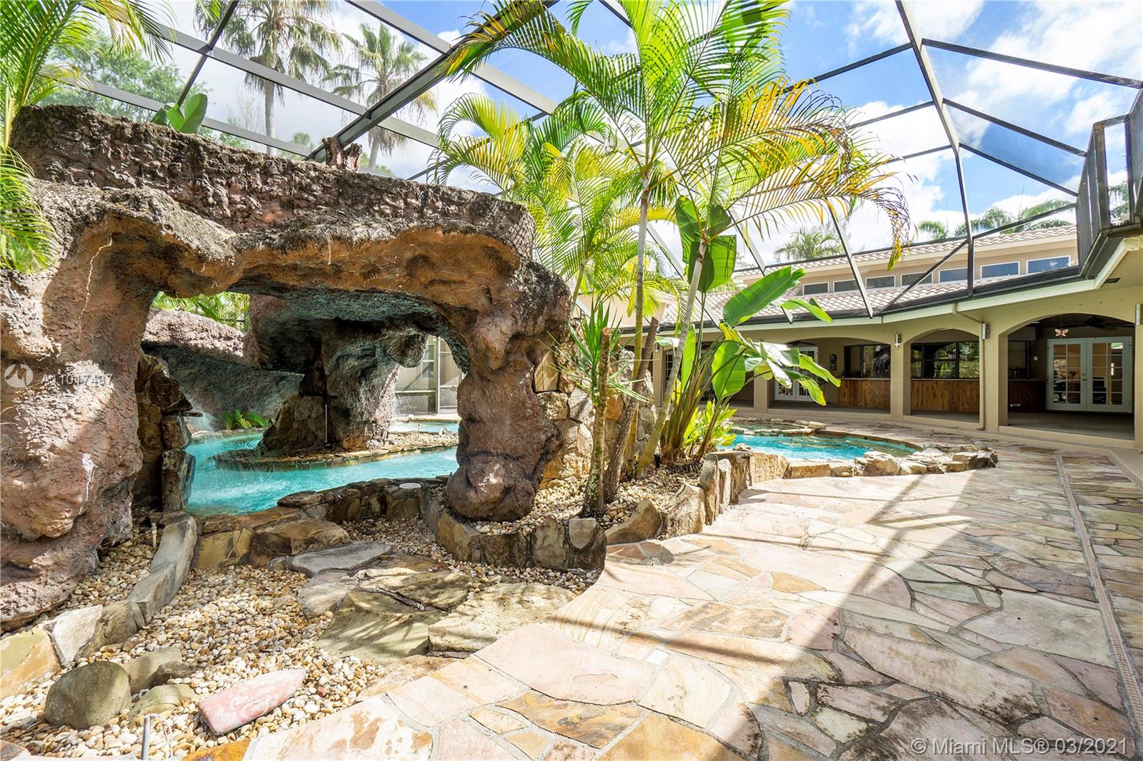 SPECTACULAR ESTATE HOME SITUATED ON 1+ ACRE IN THE PRESTIGIOUS WHISPERING WOODS. THIS TROPICAL GROTTO POOL HOME FEATURES OVER 7800 SQFT 1 STORY, 5+ BEDS 6+ BATHS, THEATER ROOM, SAUNA, 2 PLAYROOMS, OFFICE SPACE, CIRCULAR PAVER DRIVEWAY, VAULTED CEILINGS W/ RECESSED LIGHTS, FORMAL DINING/LIVING ROOM, FAMILY ROOM, EAT IN KITCHEN W/ GRANITE, WALL OVEN AND COOKTOP STOVE, CABANA BATHROOM, SPACIOUS MASTER SUITE WITH HIS/HER WALK IN CLOSET, DUAL SINKS AND WALK IN SHOWER.