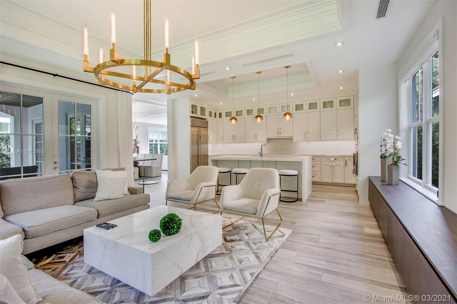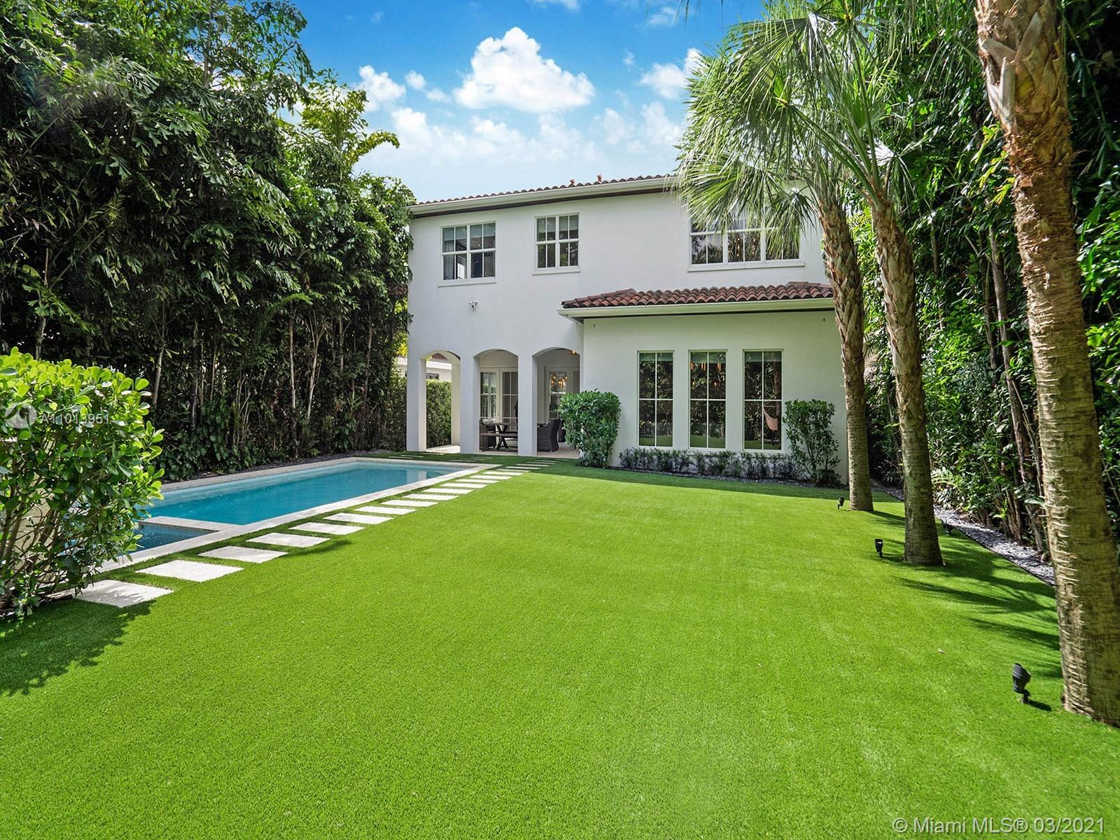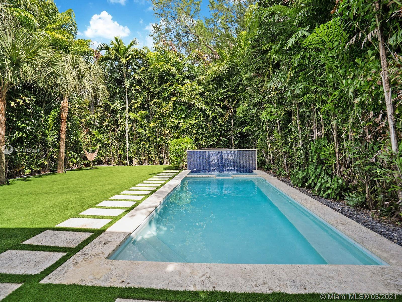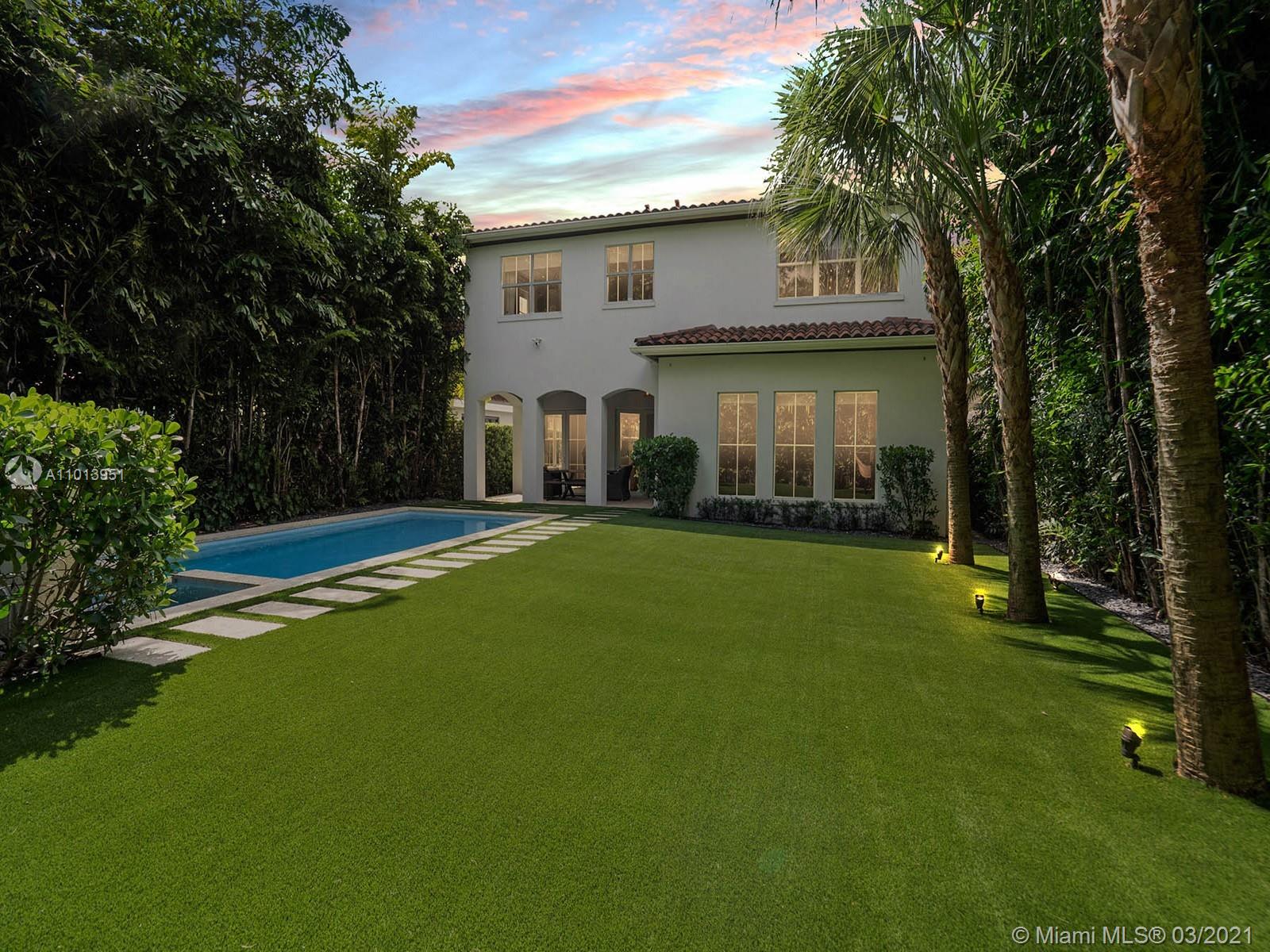 Immaculate and impeccable describes every inch of this turnkey Coral Gables newer construction residence. The contemporary eat-in kitchen opens to the sunlit family room with custom built-ins. Formal dining and living room open to the covered outdoor Veranda that creates a lovely setting for dining and entertaining alfresco. All four bedrooms and laundry room upstairs with space for your home office. Heated swimming pool with waterfall feature completes the pristine private yard reminiscent of a fairy tale. Perfect for picnics and play the green grounds are encompassed by dozens of mature Caryota palm trees. Gorgeous Gables tree lined street lined with sidewalks for a morning stroll or bike ride. Fall in love with this home in the charming City Beautiful.