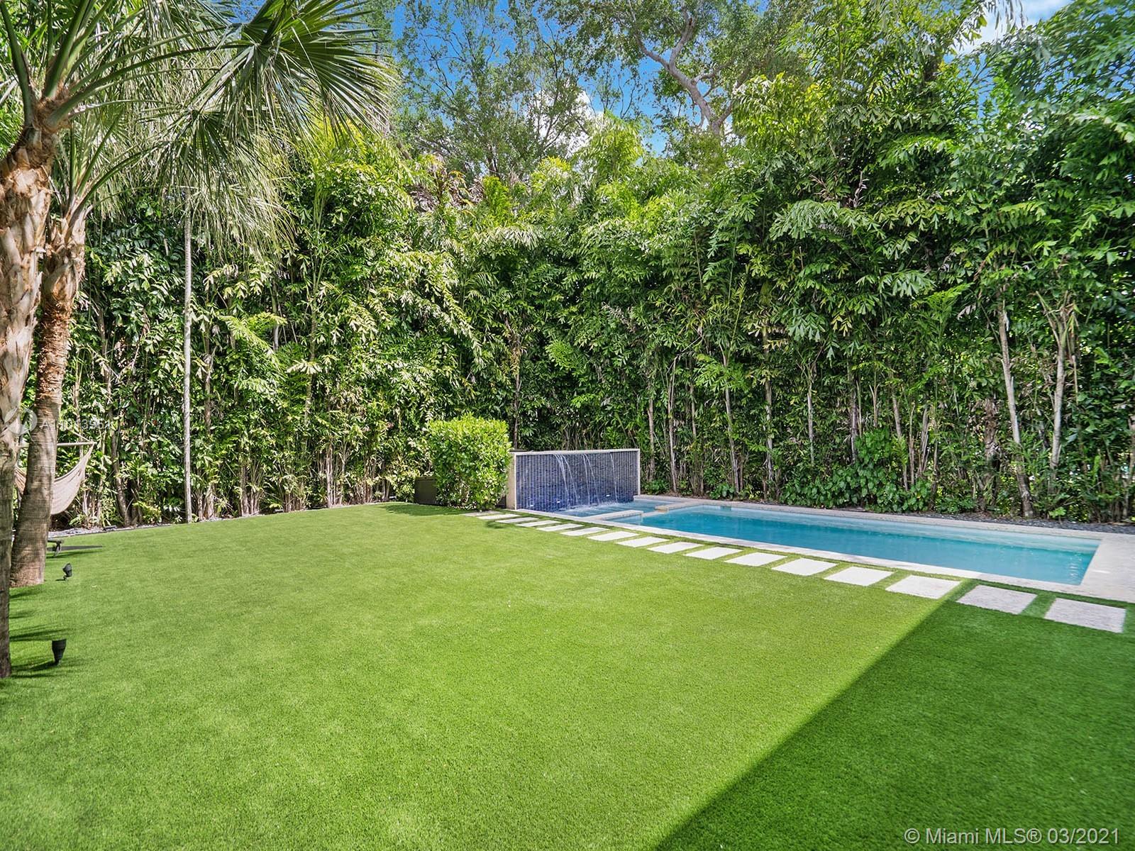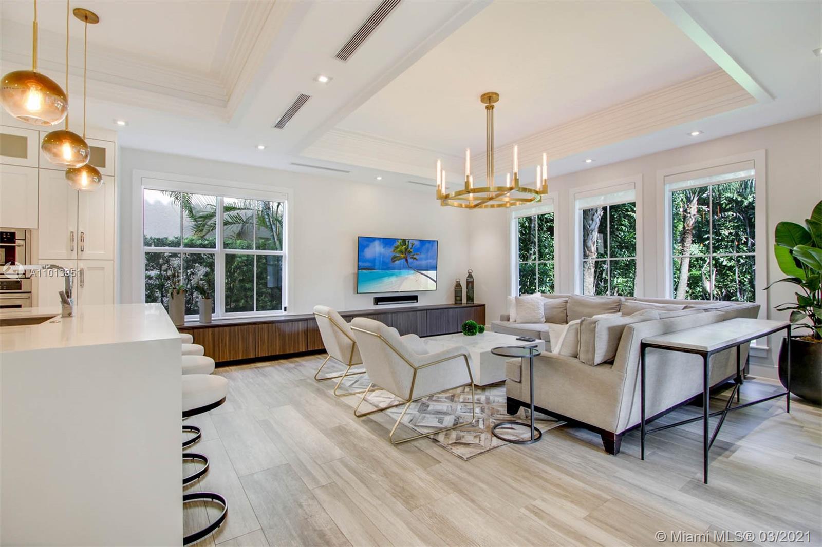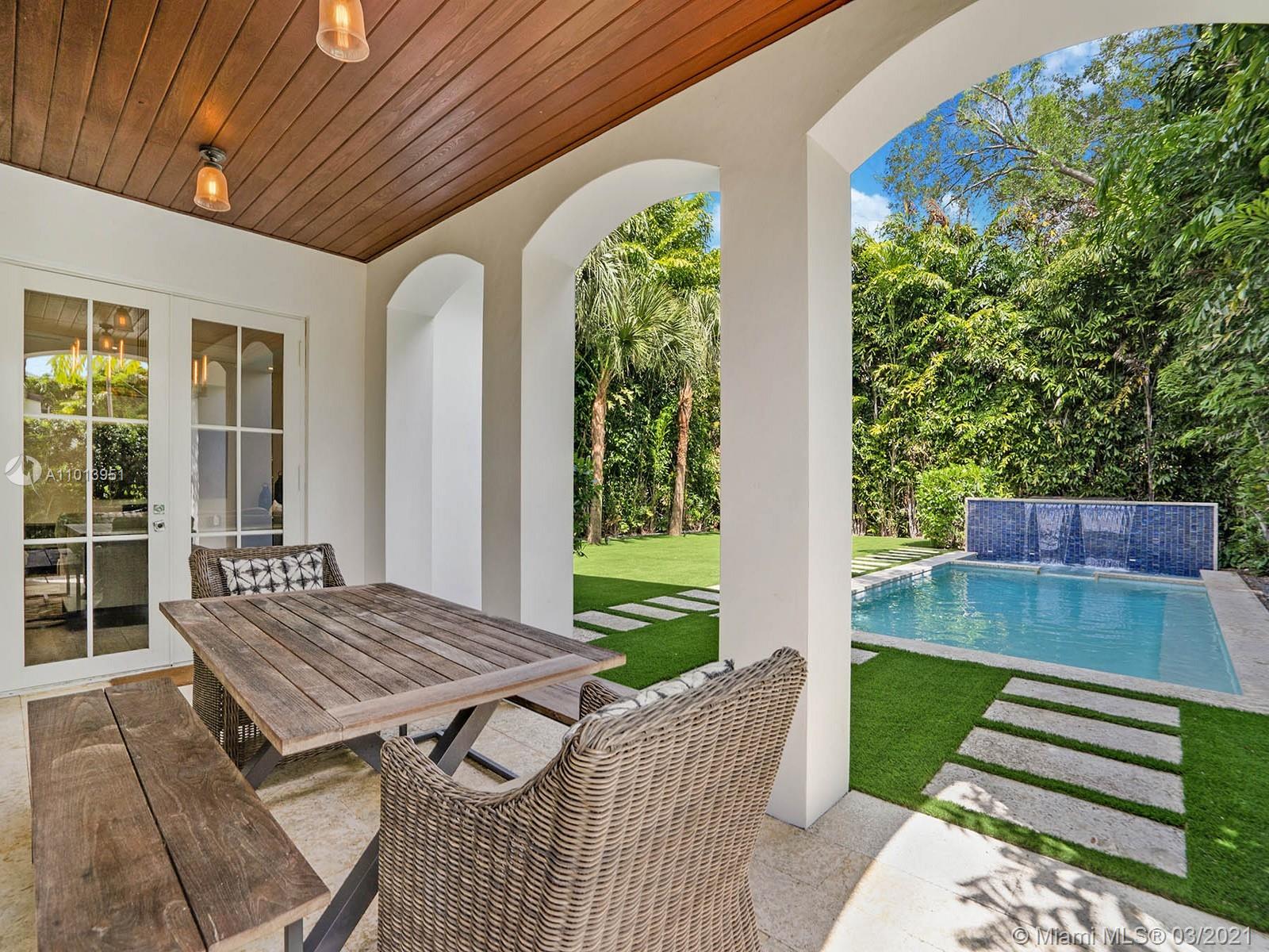 Immaculate and impeccable describes every inch of this turnkey Coral Gables newer construction residence. The contemporary eat-in kitchen opens to the sunlit family room with custom built-ins. Formal dining and living room open to the covered outdoor Veranda that creates a lovely setting for dining and entertaining alfresco. All four bedrooms and laundry room upstairs with space for your home office. Heated swimming pool with waterfall feature completes the pristine private yard reminiscent of a fairy tale. Perfect for picnics and play the green grounds are encompassed by dozens of mature Caryota palm trees. Gorgeous Gables tree lined street lined with sidewalks for a morning stroll or bike ride. Fall in love with this home in the charming City Beautiful.