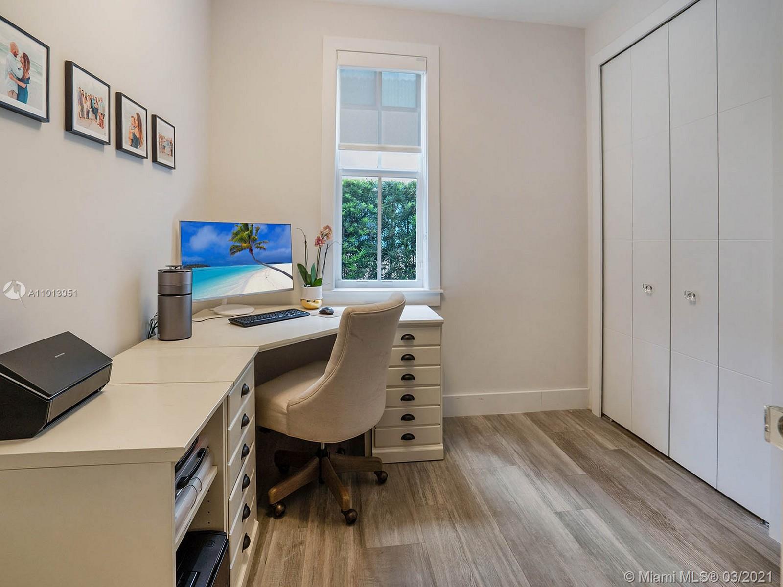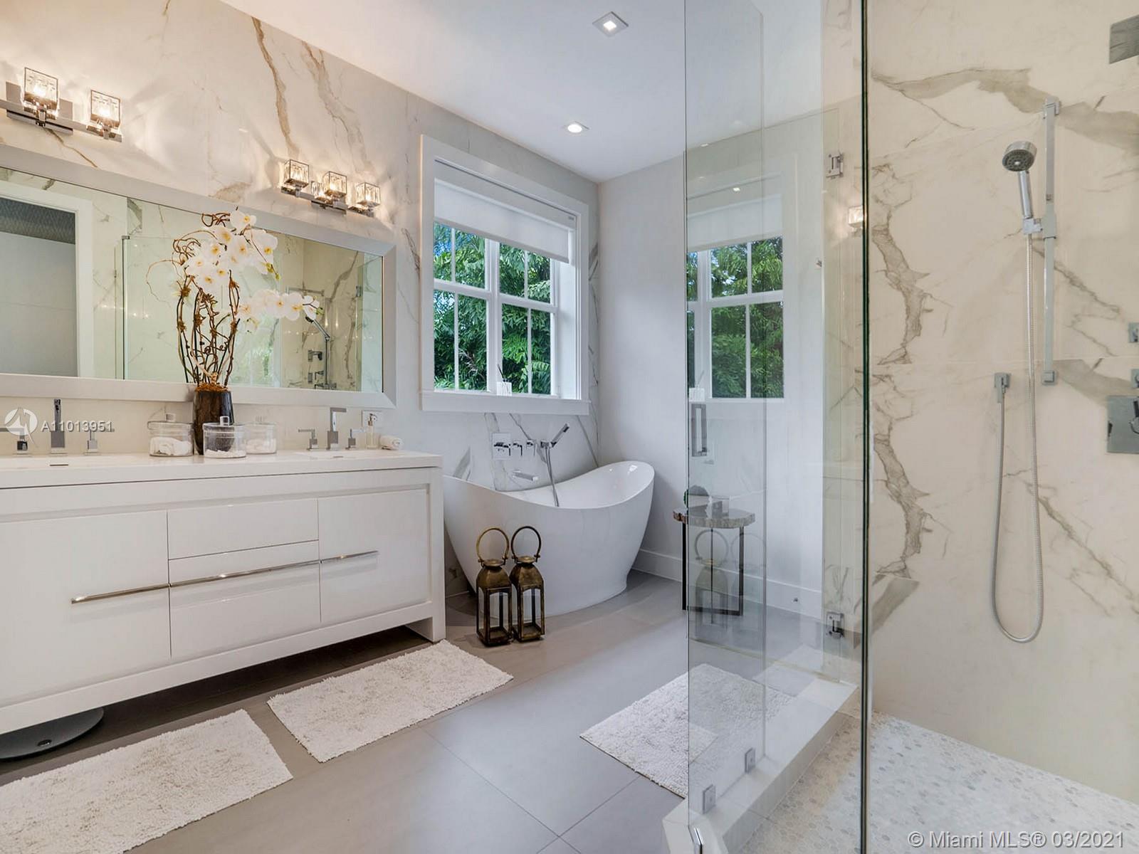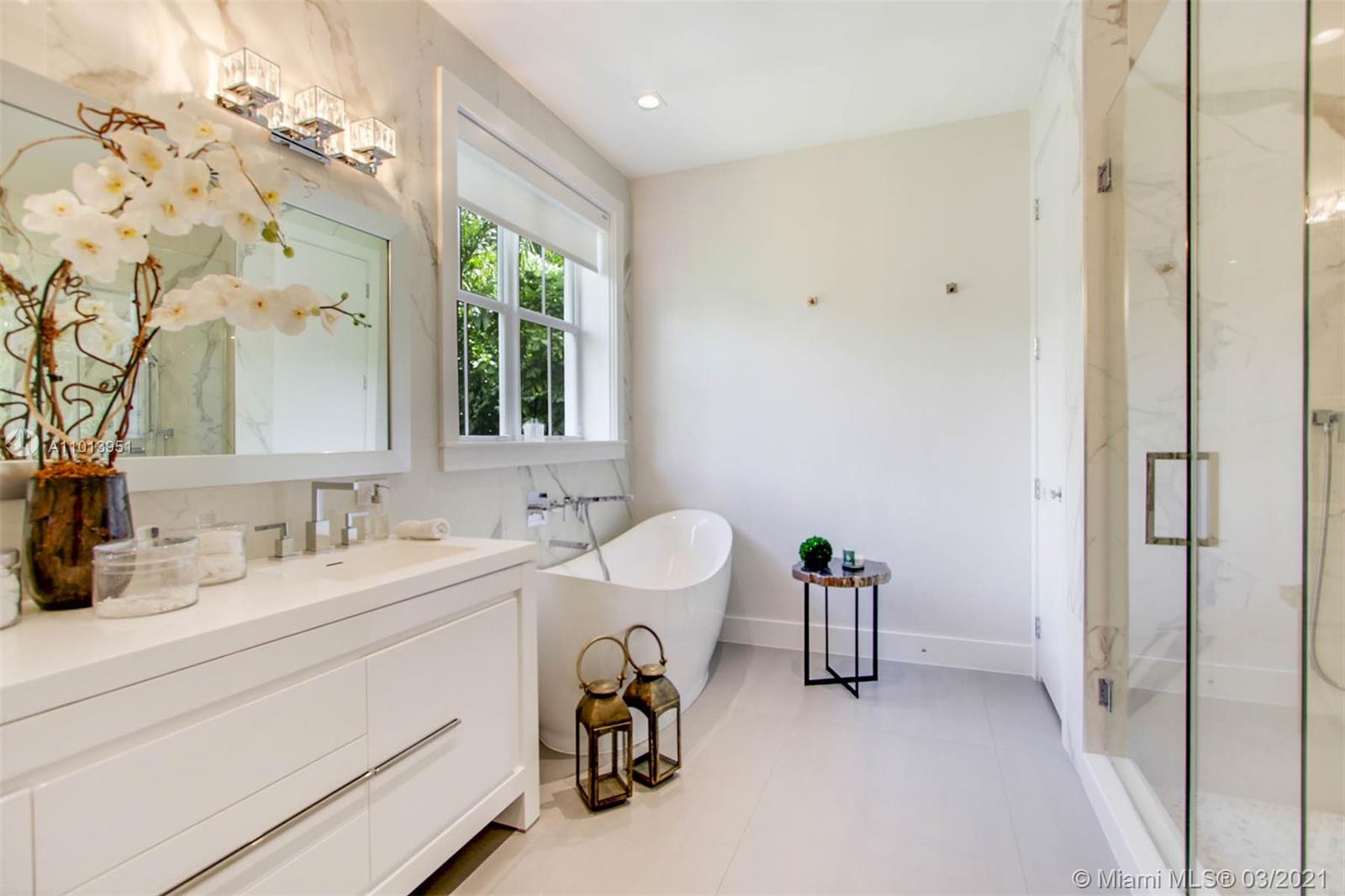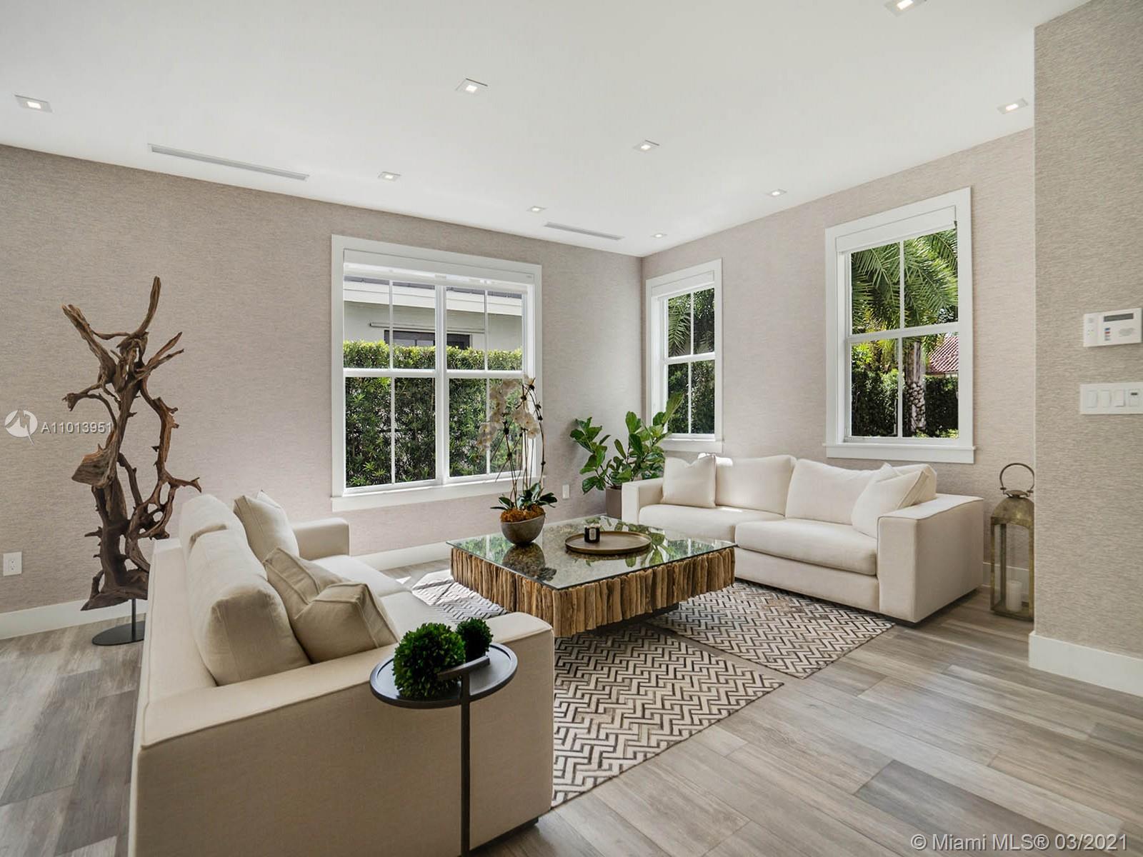Immaculate and impeccable describes every inch of this turnkey Coral Gables newer construction residence. The contemporary eat-in kitchen opens to the sunlit family room with custom built-ins. Formal dining and living room open to the covered outdoor Veranda that creates a lovely setting for dining and entertaining alfresco. All four bedrooms and laundry room upstairs with space for your home office. Heated swimming pool with waterfall feature completes the pristine private yard reminiscent of a fairy tale. Perfect for picnics and play the green grounds are encompassed by dozens of mature Caryota palm trees. Gorgeous Gables tree lined street lined with sidewalks for a morning stroll or bike ride. Fall in love with this home in the charming City Beautiful.