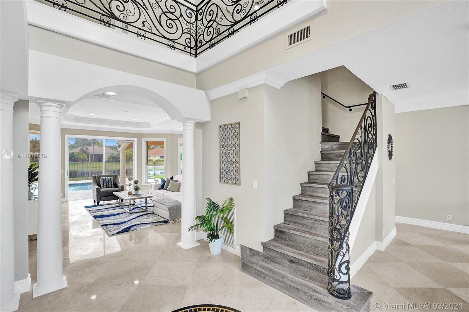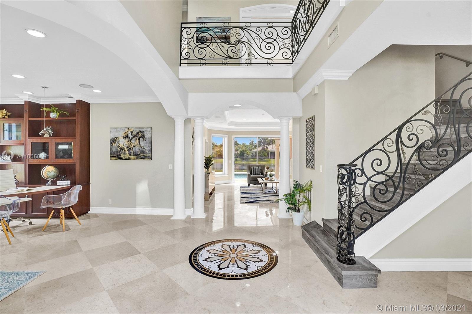 First time on the market. MEADOWOOD AT WESTON HILLS with a BRAND NEW ROOF 2020. RENOVATED 5BD+OFFICE/PLAYROOM/4BATH/2CAR GARAGE. Enjoy long water views from your fully fenced yard with pool, spa and patio. Gleaming marble floors flow throughout the first level with a full bed/bath down. Remodeled kitchen with granite countertops and Stainless steel appliances. Wrought-iron stairs lead to the second floor with all new flooring. The Master bedroom has an additional sitting room perfect as a nursery, office, or den. Brand NEW paint throughout the entire home. NEW Bedroom Floors, Full Accordions Shutters.