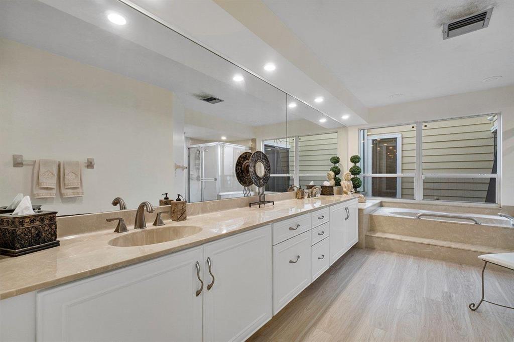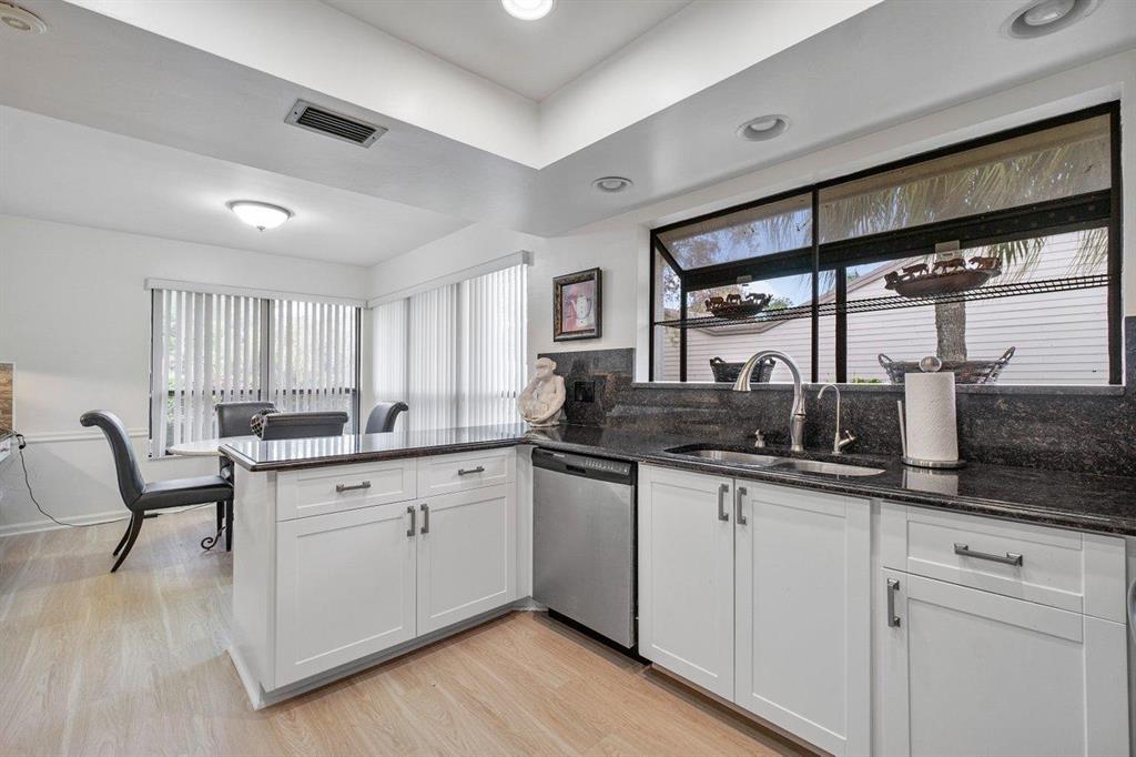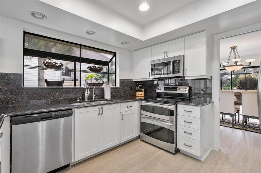 Charming, freshly painted single-story home with extended screen patio located on the fifth hole of the west golf course, this lovely home has new vinyl floors, beautiful kitchen with stainless steel appliances and granite countertops, separate breakfast area, 3 bedrooms (third bedroom currently set up as a den), large master suite with two walk-in closets, large dining room, volume ceilings, lots of natural light, quiet centrally Located street with cul-de-sac location & more! Great opportunity to live in Eastpointe! Minimum Social Membership required.