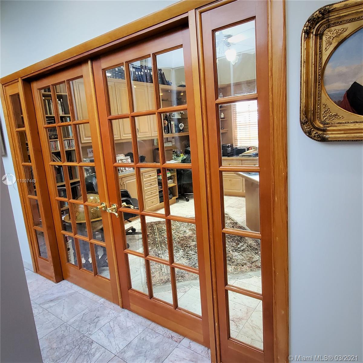 This is a one of a kind home where no expense has been spared and meticulous attention to detail, for a buyer with decerning taste. Airy 9 ft. ceilings, 130 Sq. Ft. enclosed Atrium with waterfall and greenery pool, Brick fireplace, Sub-Zero Fridge and Freezer, Custom built office with two work stations and filing cabinets and plenty of storage, Huricane windows and doors including garage door, 1900 Sq. Ft. screen enclosed Lania, custom built-in closets thoughout, Plantation shutters throughout, Custom kitchen with slide-out drawers all dressed in beautiful Azure/Black granite. Sub-Zero Side by Side Two Kitchen Aid dishwashers.Fantastic gardens with mango, avacado, and banana trees. Marble floors, solid wood doors, and many other features too numerous for this space.