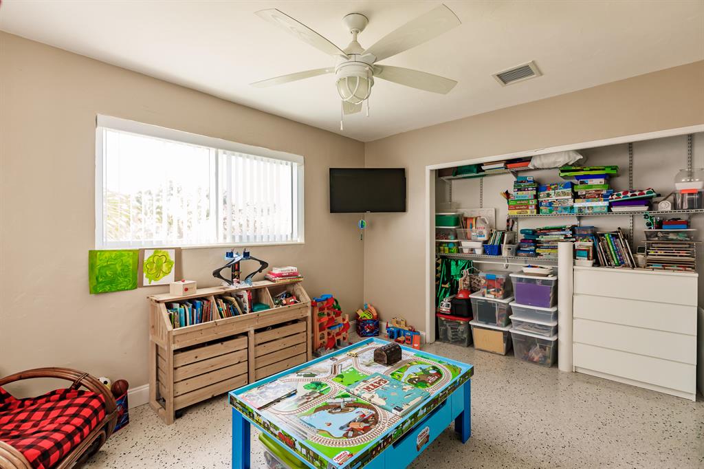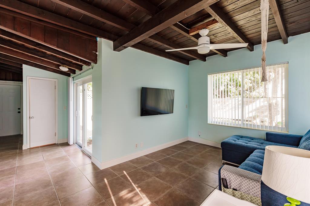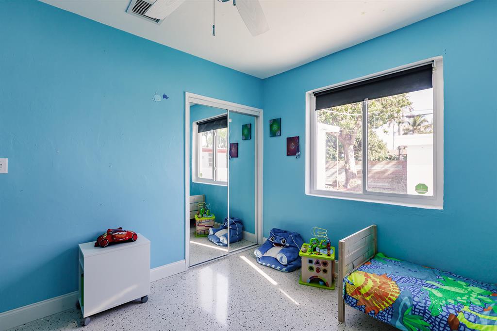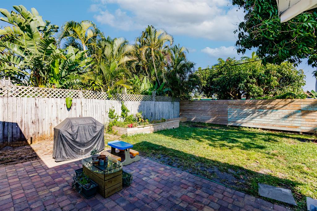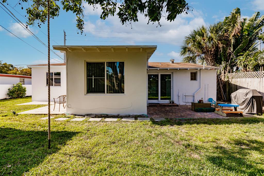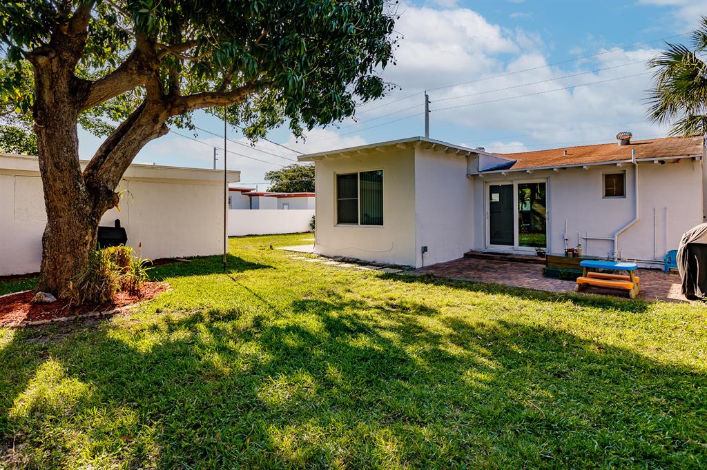 Very Nice 3 bedroom in sought after SoSo neighborhood. Only 3 Blocks to the intra-coastal. Bike to beaches! Very well maintained home features 3 bedrooms and 2 bathrooms PLUS a very large 420 sqft storage building that can be turned into cabana house, office, gym or left as a garage. Inside this beautiful home is recently updated bathroom and kitchen area. Floor is restored terrazzo in living areas. Home also has a nice bonus area that is great for additional family room. Full hurricane protection with hurricane impact windows! Big Beautiful yard! Room for a pool! Fully fenced! Park close by and walking distance to South Olive Elem school.