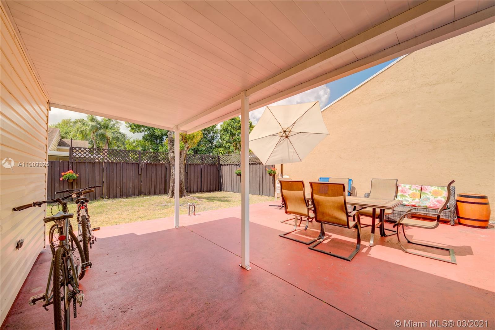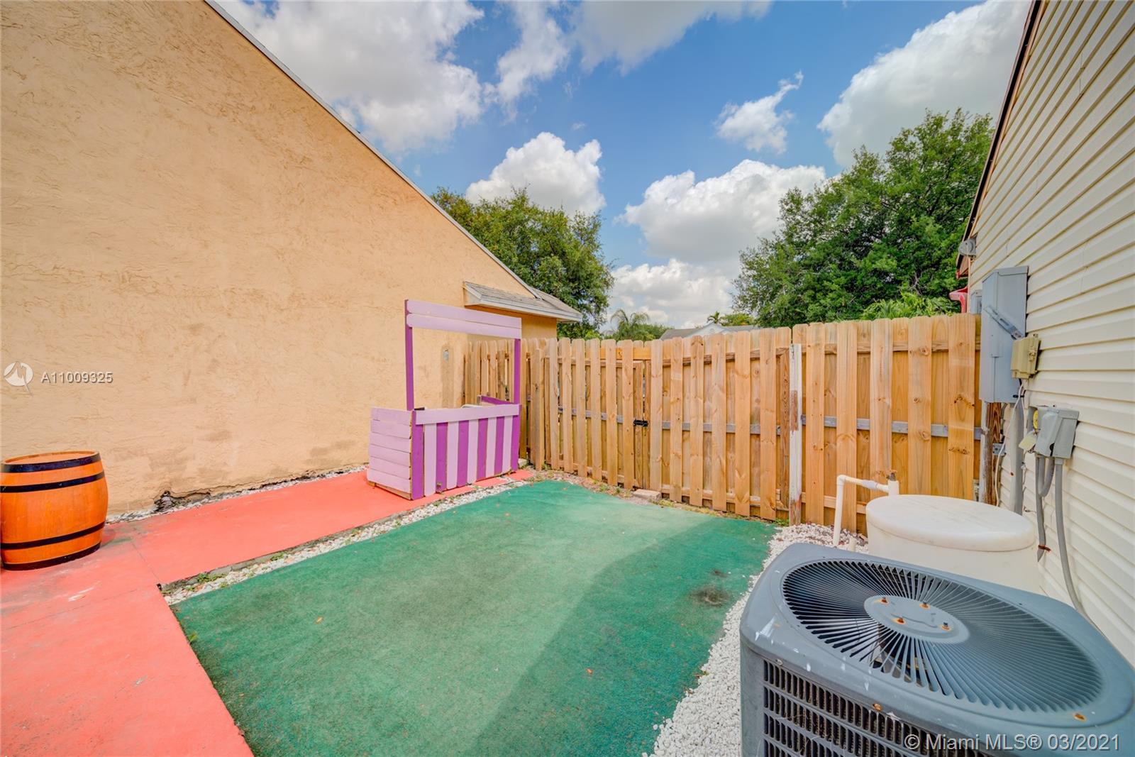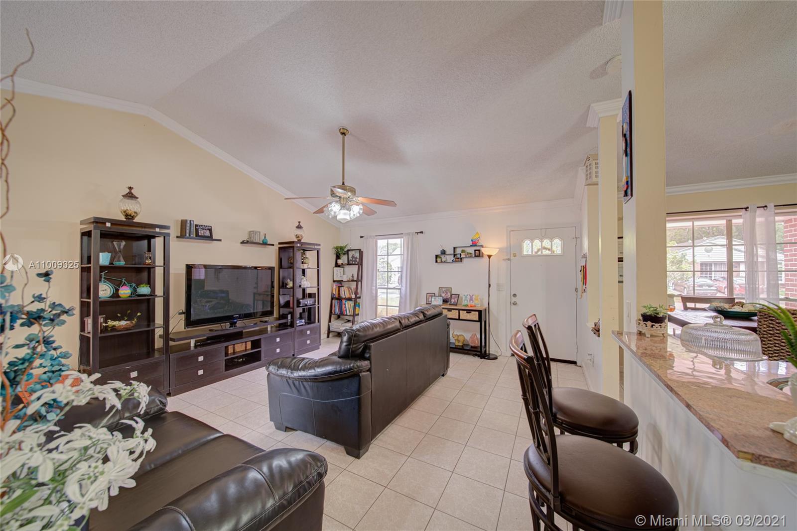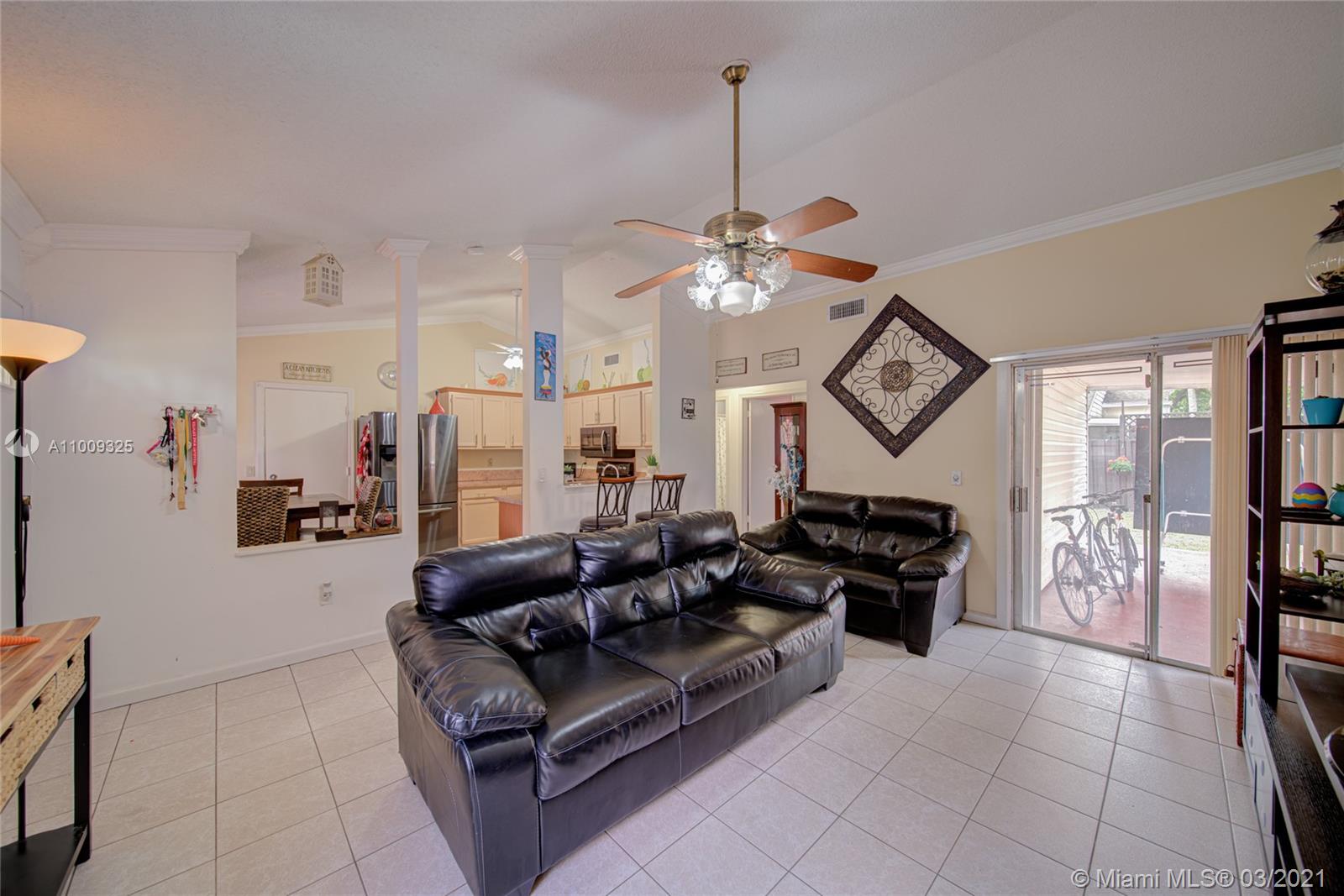 Very nice house with 2 bedrooms and two full bathrooms. Excellent atmosphere, family neighborhood oriented. Nice open patio. The garage has being converted in an office/bedroom, but can be converted back as a garage. Laundry room Washer/Dryer. Hurricane shutters in the back windows and accordion shutters at front and sliding door. Tile all throughout, no carpet. Excellent neighborhood to live, close to major highways, important avenues and streets. Very low HOA. Tennis Course, Community Pool, Play Ground. Very good location. Please come and bring your fussiest Buyers, they will love it.