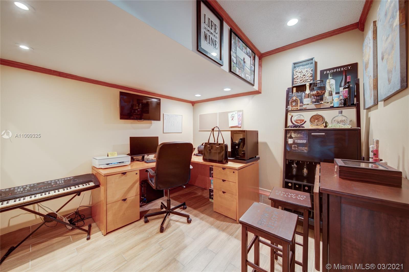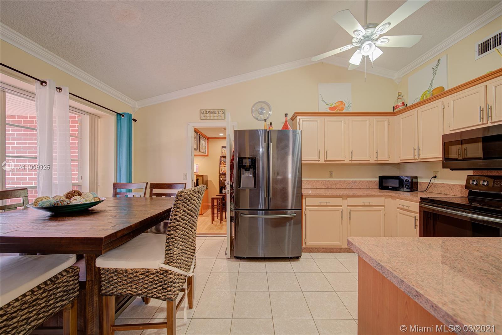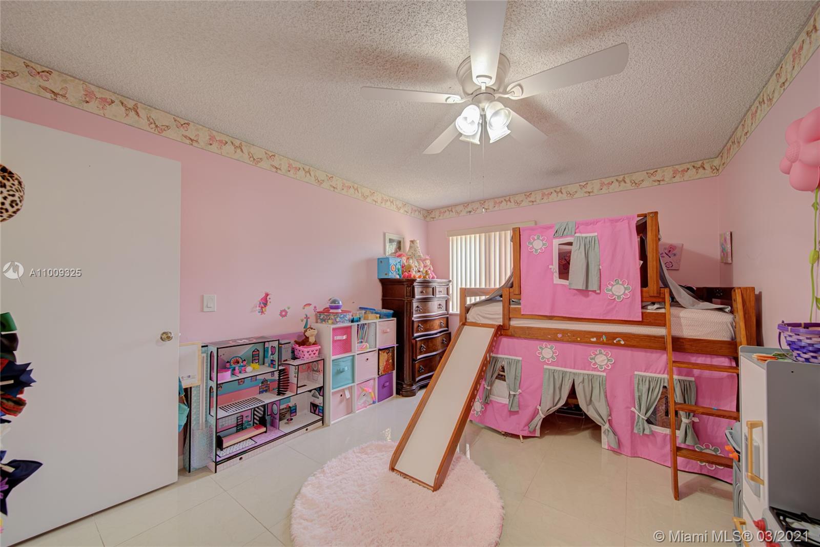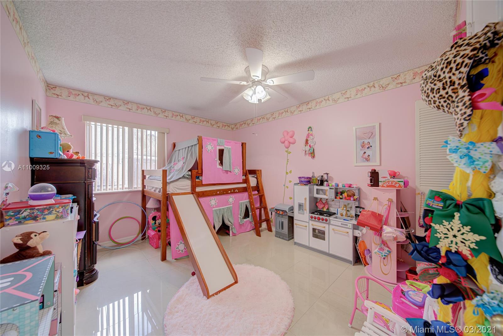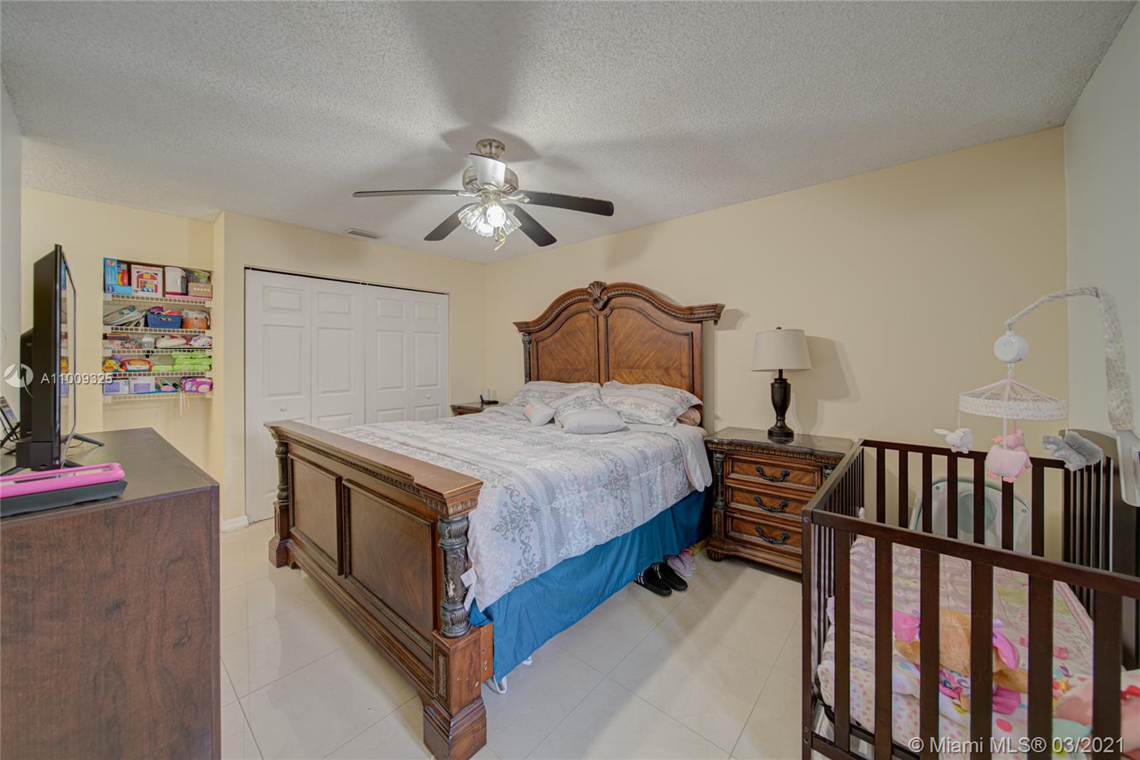 Very nice house with 2 bedrooms and two full bathrooms. Excellent atmosphere, family neighborhood oriented. Nice open patio. The garage has being converted in an office/bedroom, but can be converted back as a garage. Laundry room Washer/Dryer. Hurricane shutters in the back windows and accordion shutters at front and sliding door. Tile all throughout, no carpet. Excellent neighborhood to live, close to major highways, important avenues and streets. Very low HOA. Tennis Course, Community Pool, Play Ground. Very good location. Please come and bring your fussiest Buyers, they will love it.