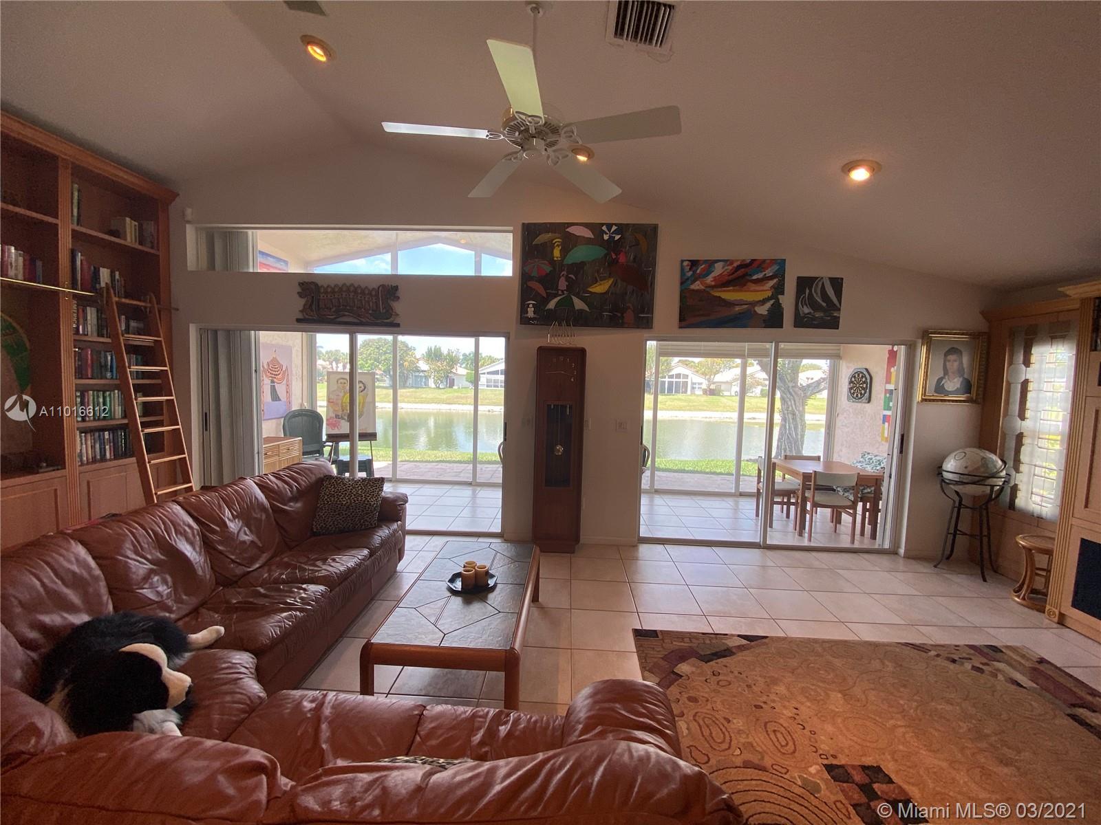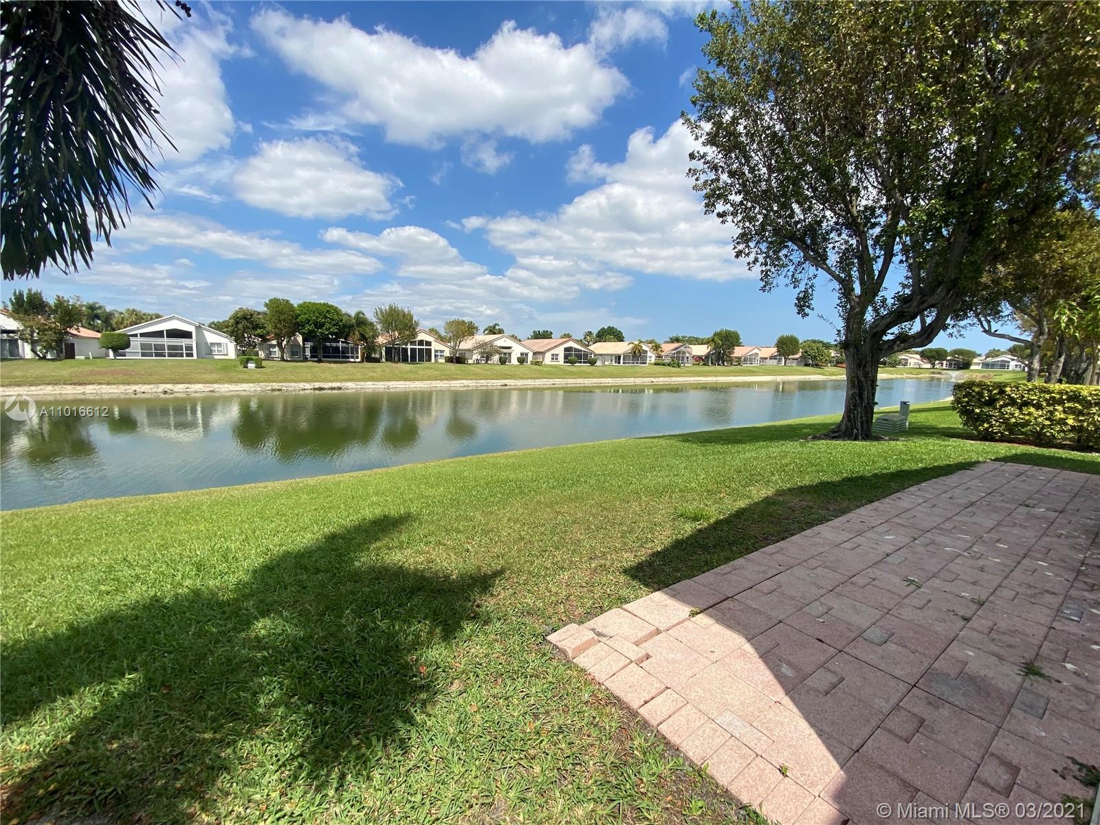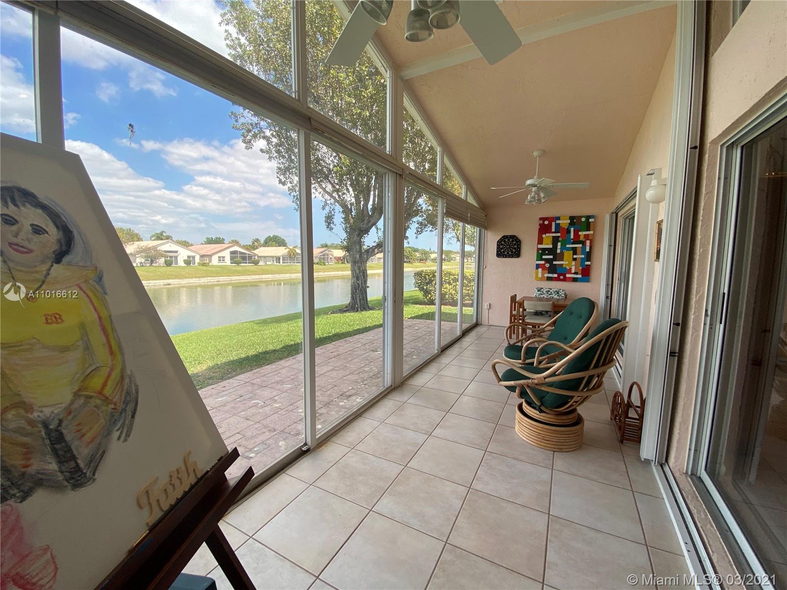 Beautiful waterfront home in the heart of Boca Raton! Spacious 3/2 with one bedroom converted to office with built in all wood desk. All ages & pet-friendly gated community. Spacious living room, kitchen with lots of counter & cabinet space overlooks the family room. HOA includes landscaping, cable, pool, accordion shutters, gym, clubhouse, tennis courts. Oversized glass enclosed Florida room for relaxing and watching the water. Brick paved driveway and walkway. Please see Rules and Regulations attached.
