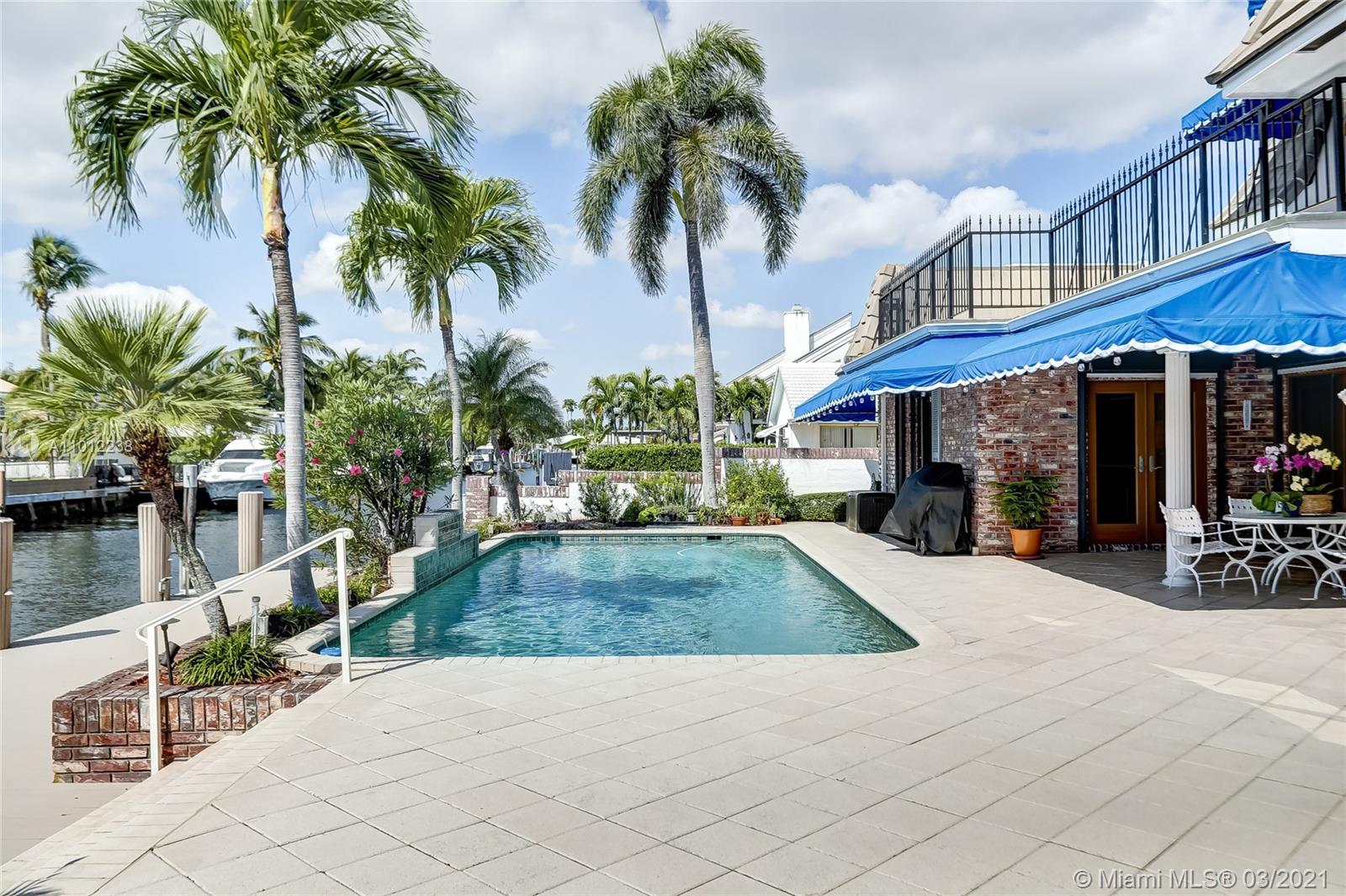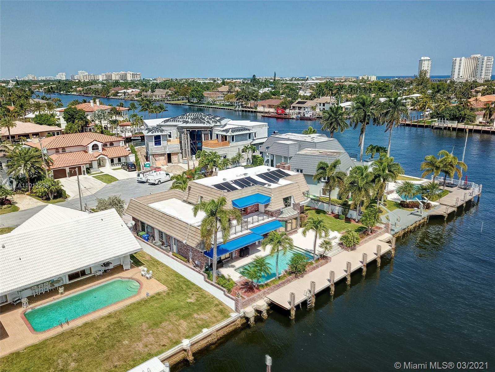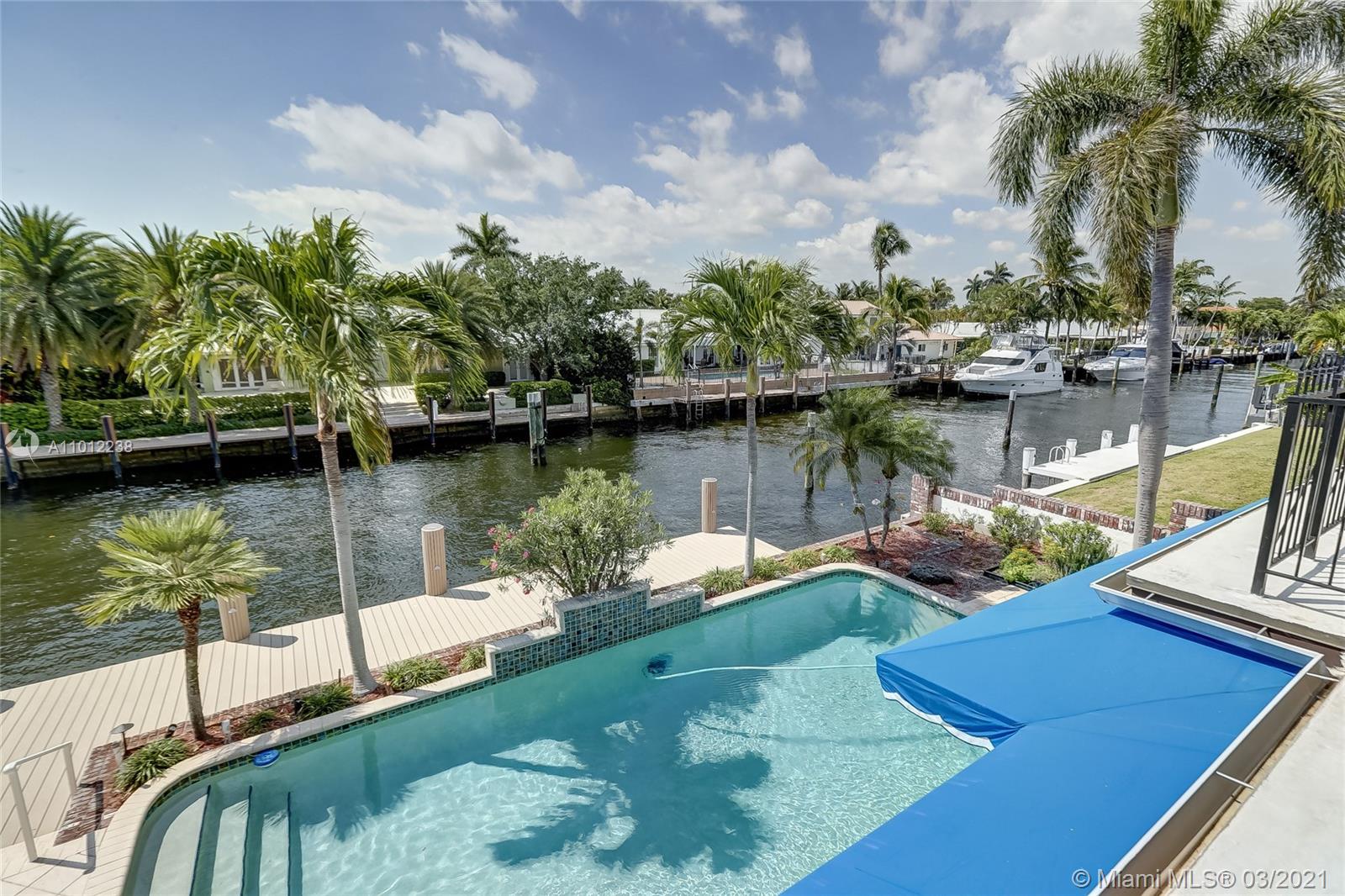 A boater’s dream come true, this elegant oasis in coveted Coral Ridge enjoys the luxury of its very own private dock along with an array of tantalizing bay, canal, and Intracoastal views. Spanning two gracious levels with a versatile layout, the home is idyllically situated on a quiet cul-de-sac just a stone’s throw from the tranquil Intracoastal and mere minutes from the ocean. The perfect vacation home, primary residence, or income property, this supremely serene refuge spares no details and showcases dramatic light-filled living spaces, sumptuous hardwood floors, a chef-inspired kitchen, spa-like baths, an invigorating pool, manicured gardens, and a suite of tasteful finishes throughout.