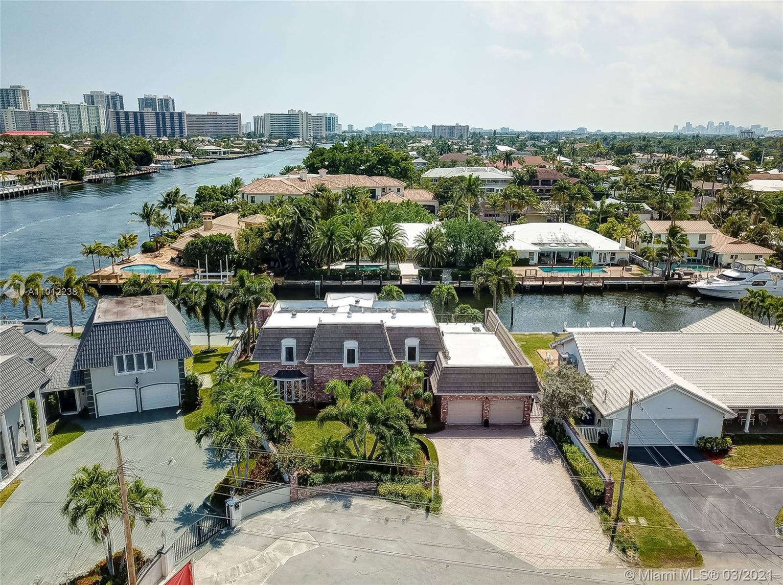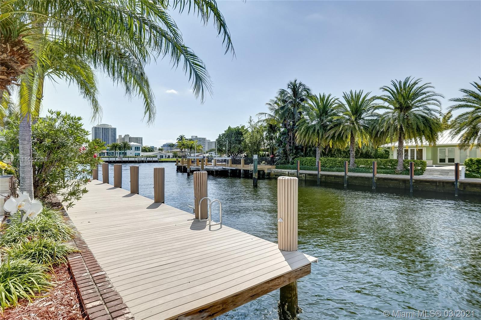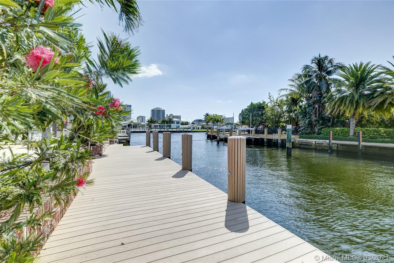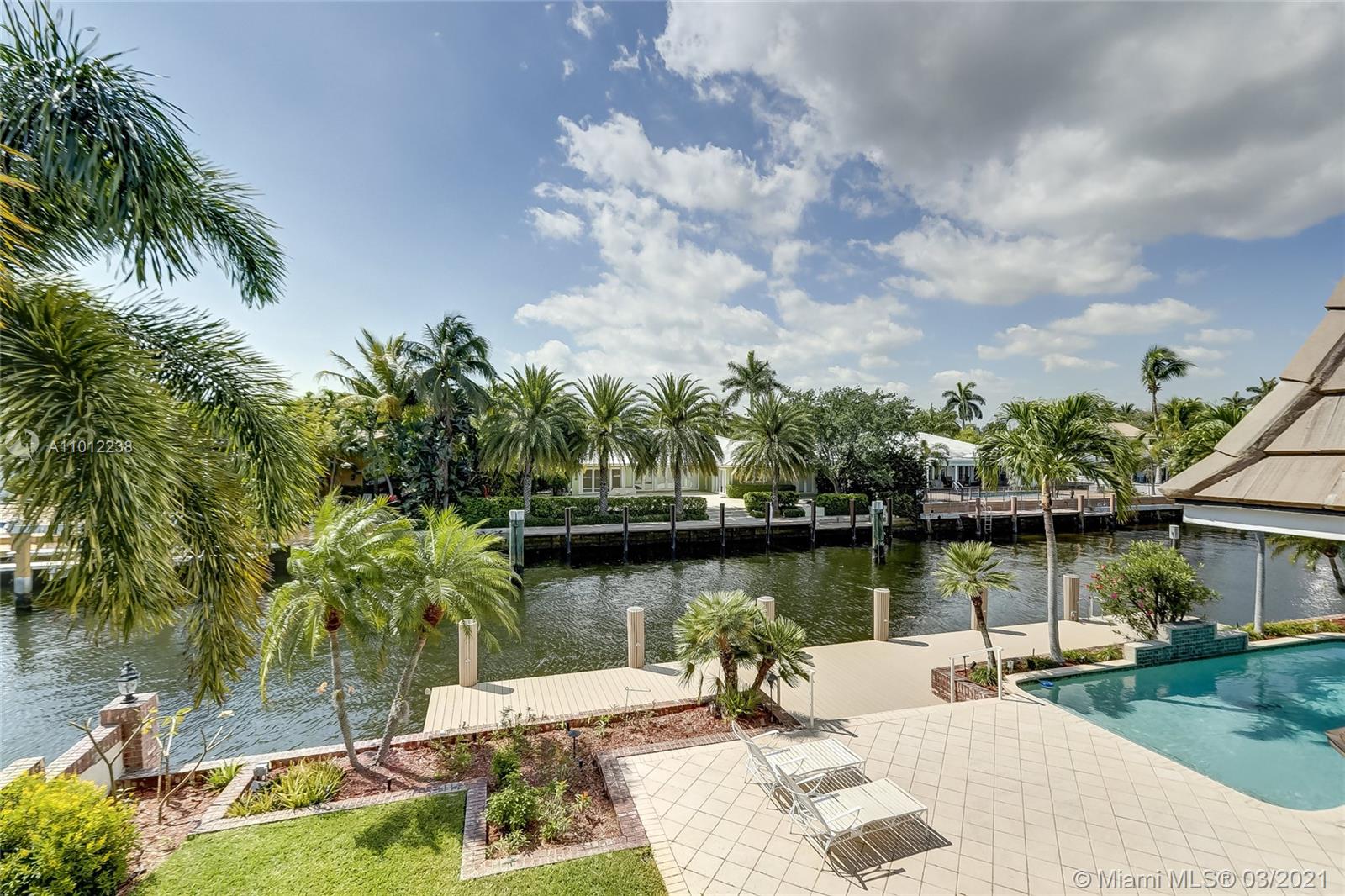 A boater’s dream come true, this elegant oasis in coveted Coral Ridge enjoys the luxury of its very own private dock along with an array of tantalizing bay, canal, and Intracoastal views. Spanning two gracious levels with a versatile layout, the home is idyllically situated on a quiet cul-de-sac just a stone’s throw from the tranquil Intracoastal and mere minutes from the ocean. The perfect vacation home, primary residence, or income property, this supremely serene refuge spares no details and showcases dramatic light-filled living spaces, sumptuous hardwood floors, a chef-inspired kitchen, spa-like baths, an invigorating pool, manicured gardens, and a suite of tasteful finishes throughout.
