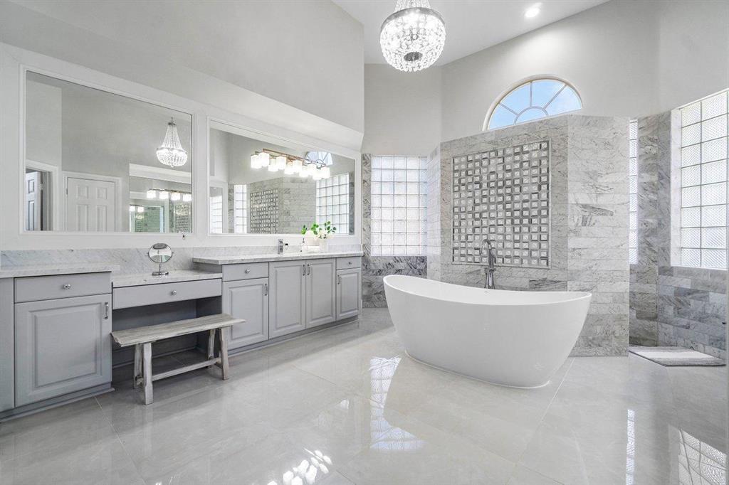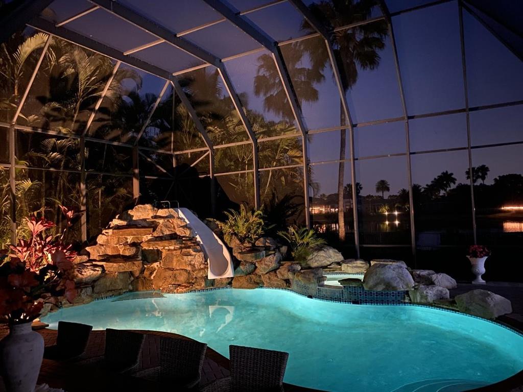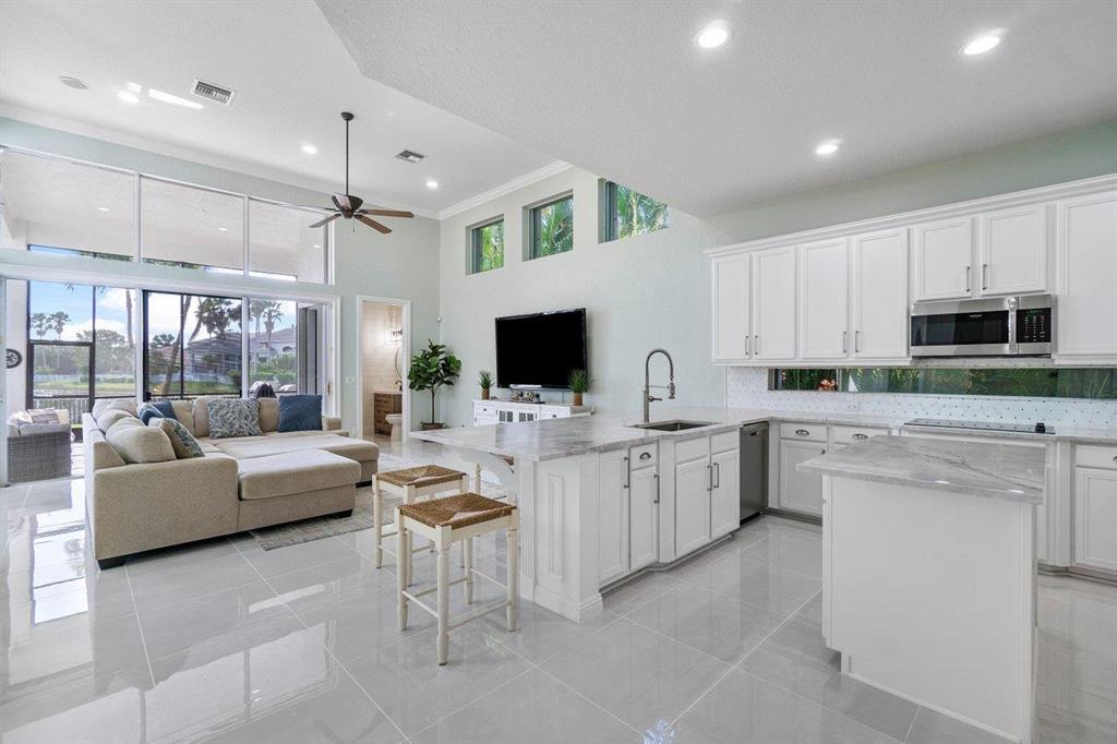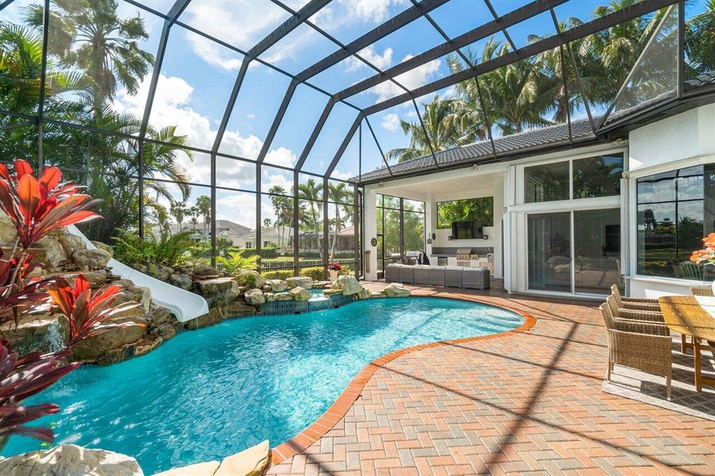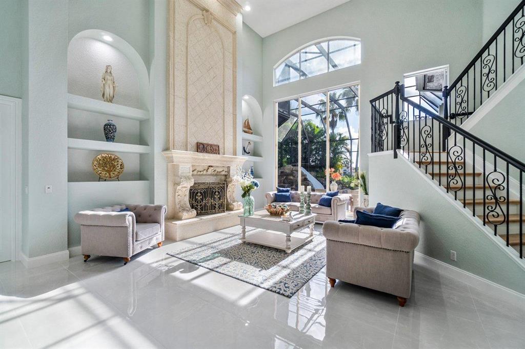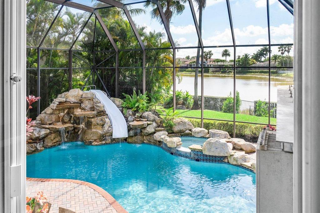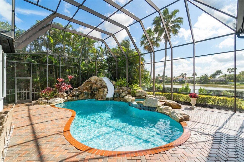 Wow! Quite possibly the nicest house in highly desirable, gated Heron Bay! If quality is what you are looking for, you found it! Oversized waterfront lot on a lake with soaring 25 foot ceilings and ceiling to floor coral fireplace. Italian porcelain floors on first level and gorgeous quartzite chef dream kitchen. Shiplap cabana bath. Wood beam formal dining. Separate master wing of the house nearly 1000sqft has view of the heated waterfall pool with slide, a workout area and a massive master bath with marble everywhere and soaking tub and crystal chandelier. Upstairs bar area. Step outside to almost 3000 sqft of screened in outdoor living overlooking the lake. Outdoor kitchen with TV and saltwater pool. Waterfall pool feels like Hawaii! Fenced in yard perfect for pets. Hurry won't last!