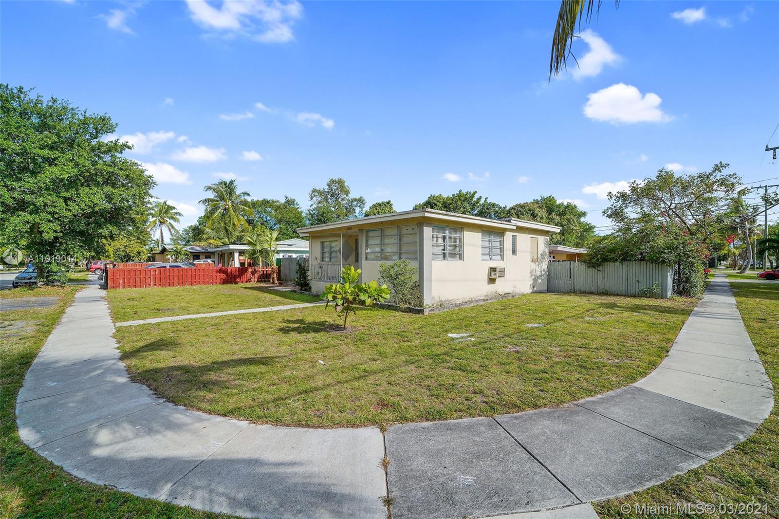 Spacious and bright 3-bed, 2-bath home situated on a large corner lot in the heart of North Miami Beach! Schedule a showing today. Sold as-is. Buyer responsible to verify code compliance and must take subject and municipal requirements (if any exist).