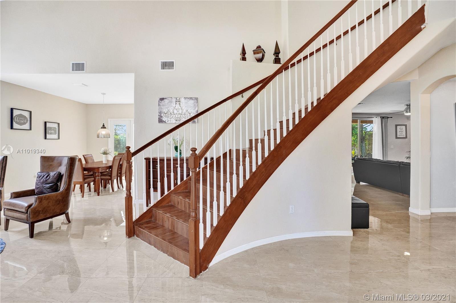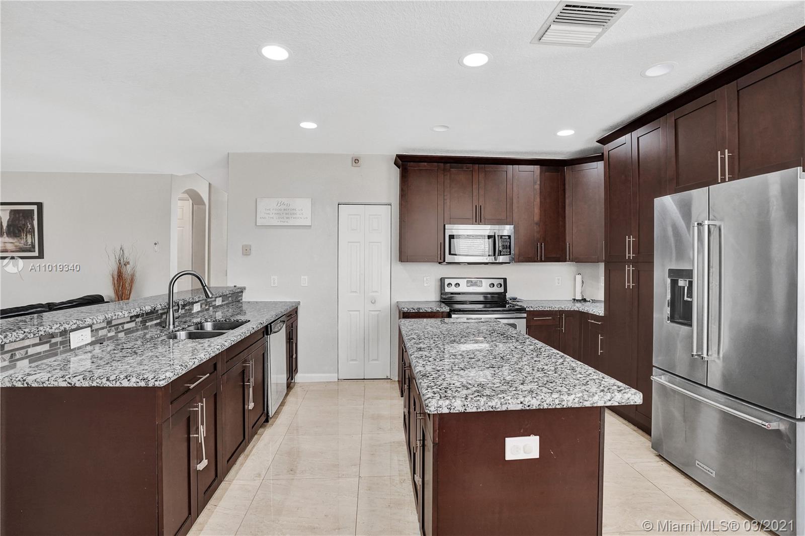 Beautiful home in Exclusive Estates of Pembroke Shores. This home has been upgraded with beautiful flooring , stainless steel appliances, granite kitchen counter tops, bathrooms have been upgraded and tastefully designed. This home includes one bedroom on the first floor, volume ceilings and breakfast nook. The oversized master bedroom can easily fit a California king bed and includes his/her walk-in closets and a cozy sitting area. The master bath features two sinks and plenty of counter space for everyone. The children will enjoy the Jack and Jill bathroom and spacious rooms. The 2nd floor office/bedroom features an upgraded private bathroom for guest or in-laws. The property includes a pool and a beautiful garden area. Great area for outdoor private gatherings.