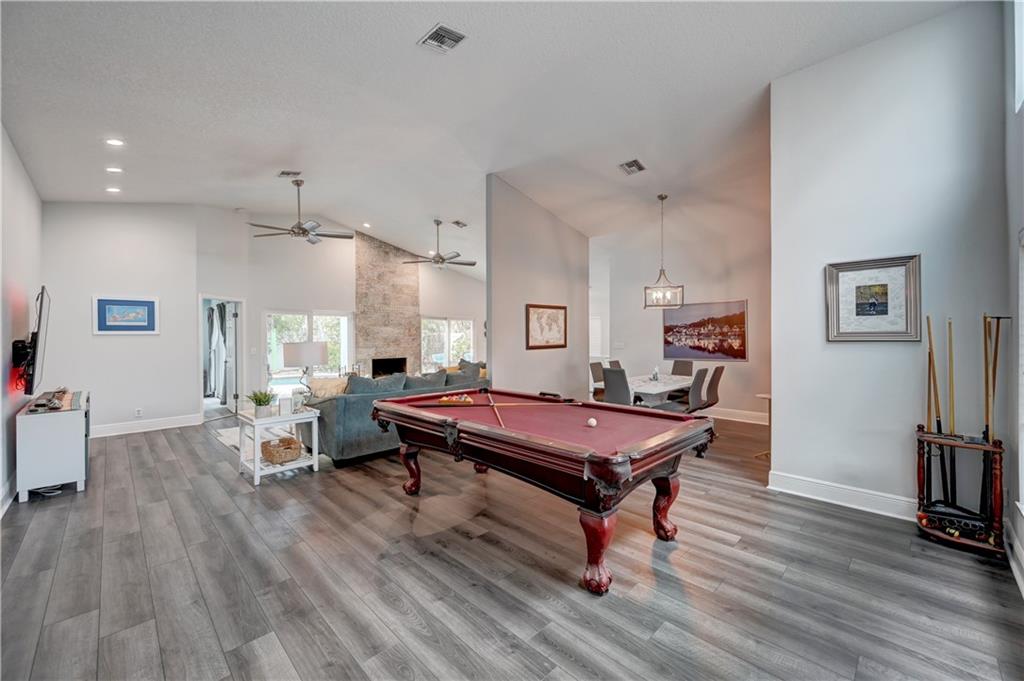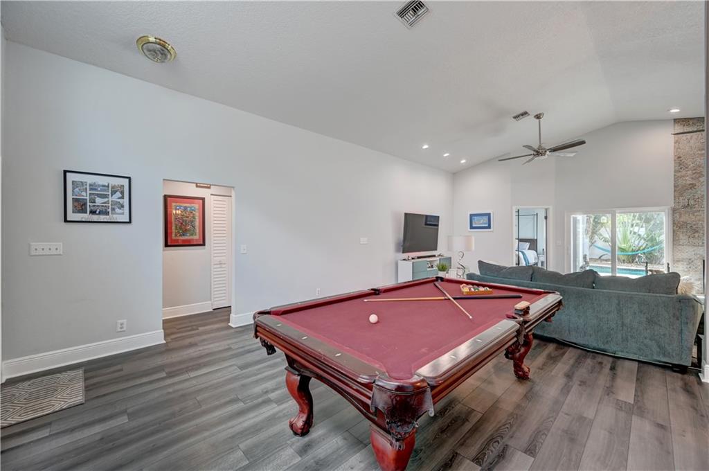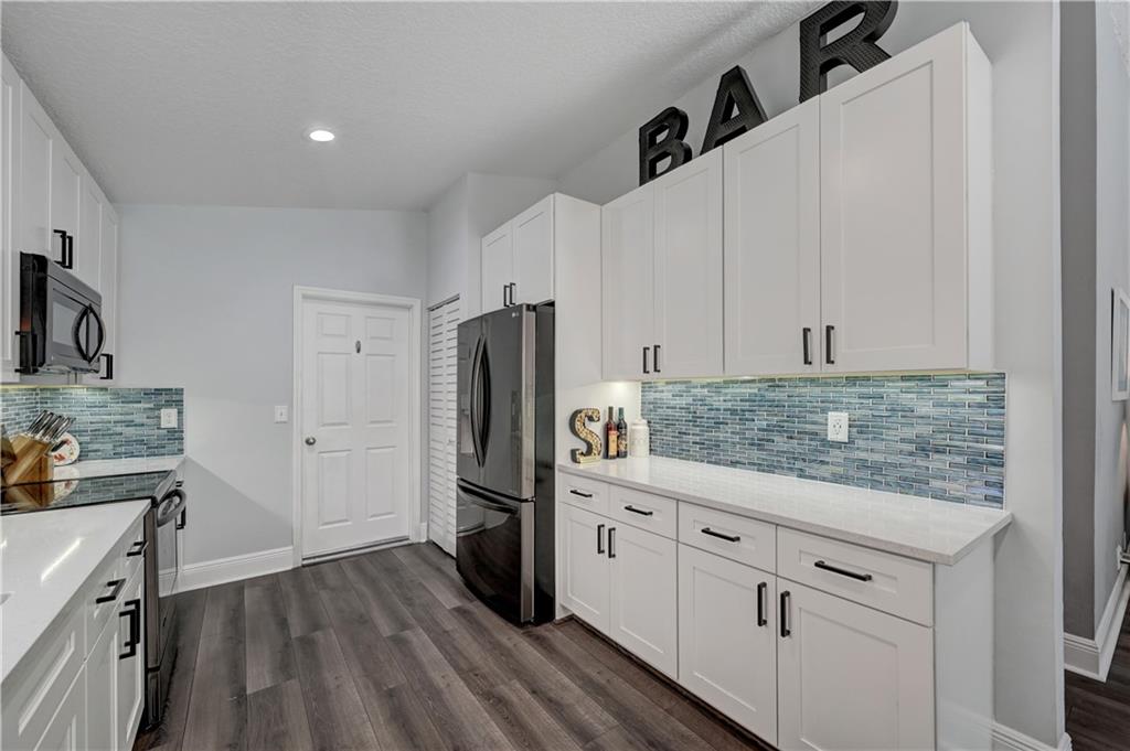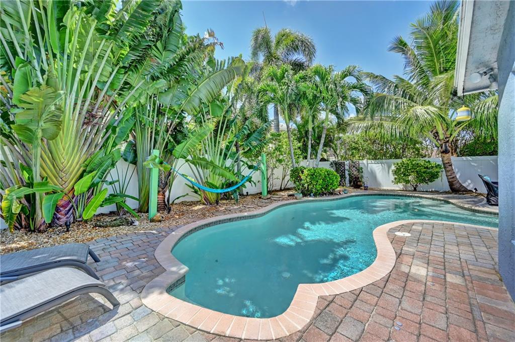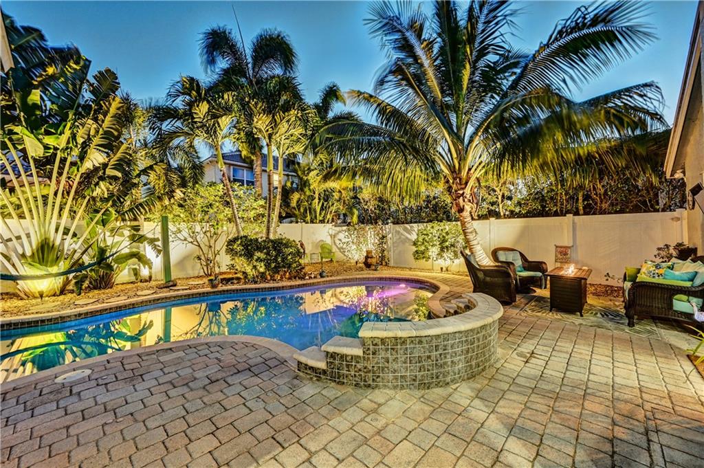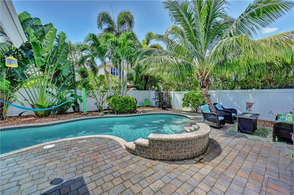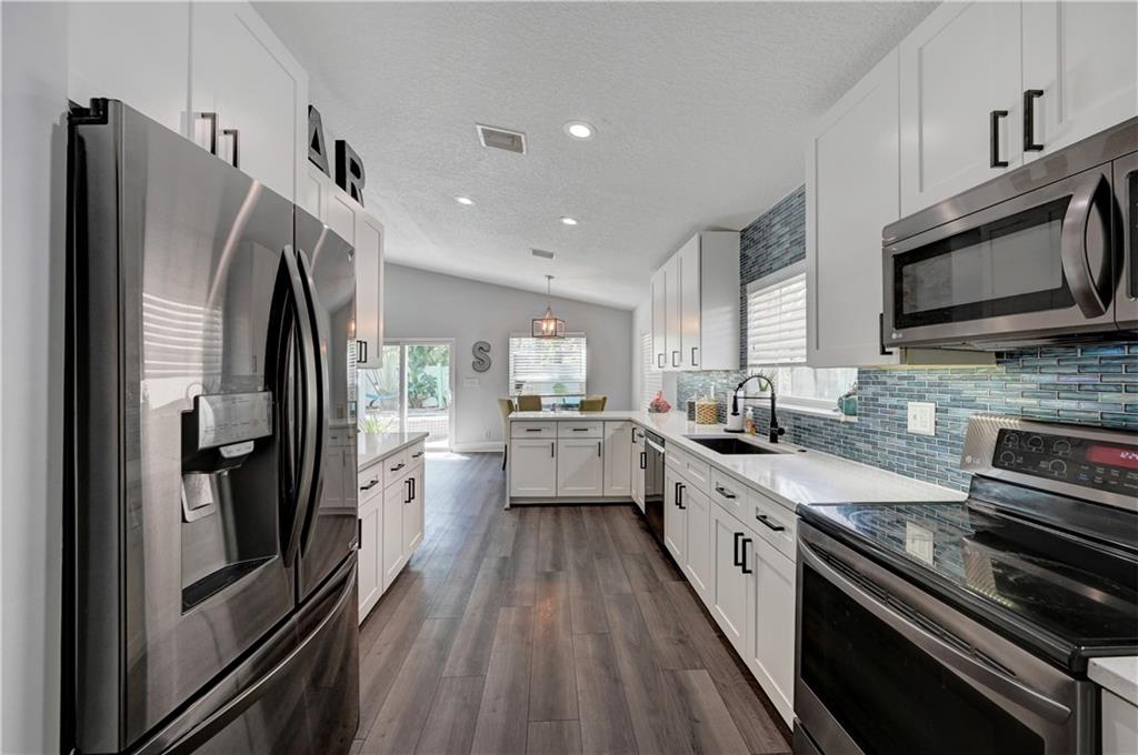 The pride of ownership is evident in this maticulously maintained, and completely renovated home. Featuring 3 bedooms, 2 bathrooms, a 2 car garage, and a stunning tropical salt water pool area with outdoor lighting, and a fully fenced, private backyard. Vaulted ceilings throught the main living areas and primary bedroom. Relax in front of the wood burning fireplace on those chilly winter nights. Over $90K in recent renovations. Including a new kitchen with quartz countertops, new cabinetry, backsplash and stainless steel appliances. Two completely renovated bathrooms with new cabinetry, vanities, mirrors, light fixtures and more. New flooring throughout the entire home. IMPACT windows and doors. Walking distance to all zoned schools. Low HOA. No expense spared in creating this dream home.